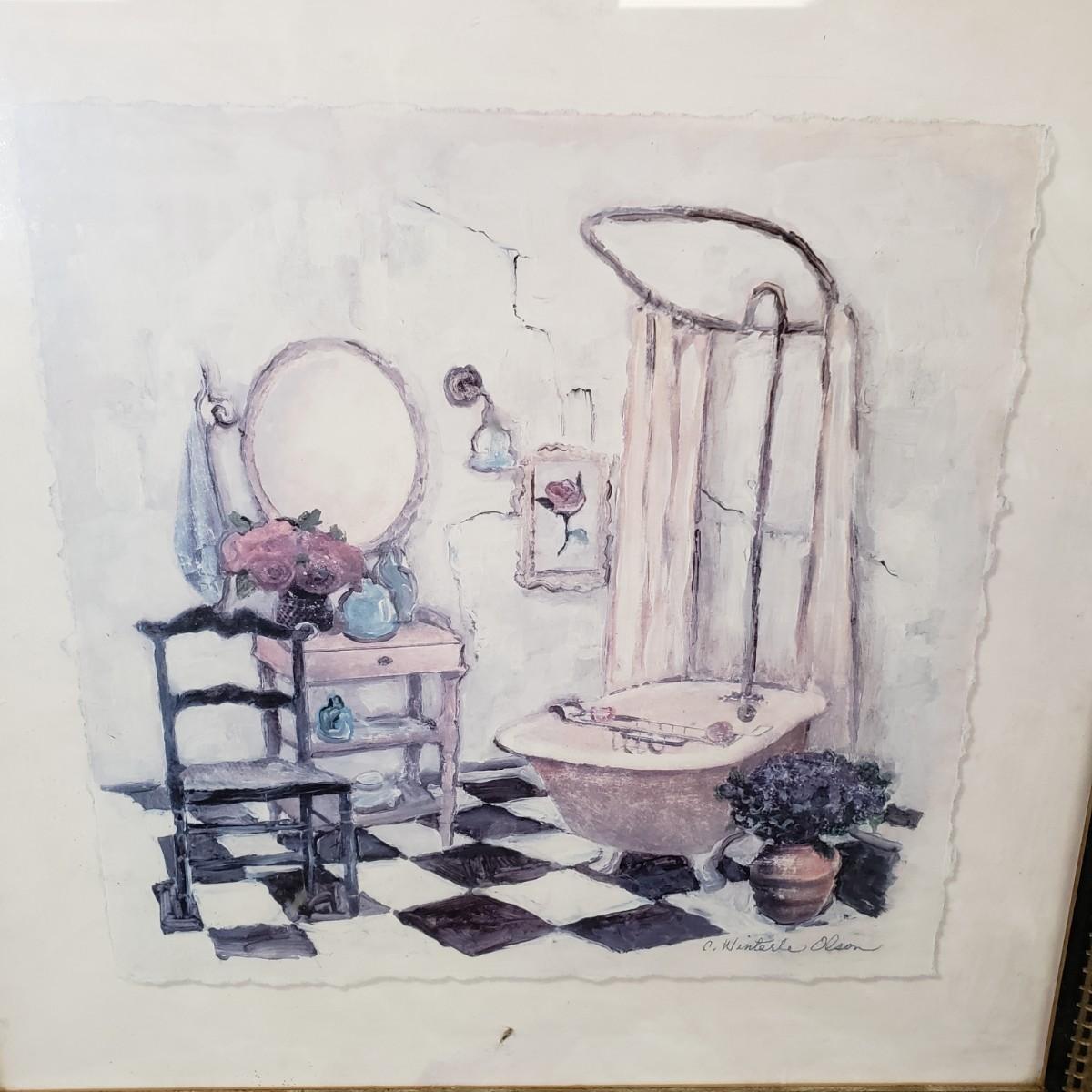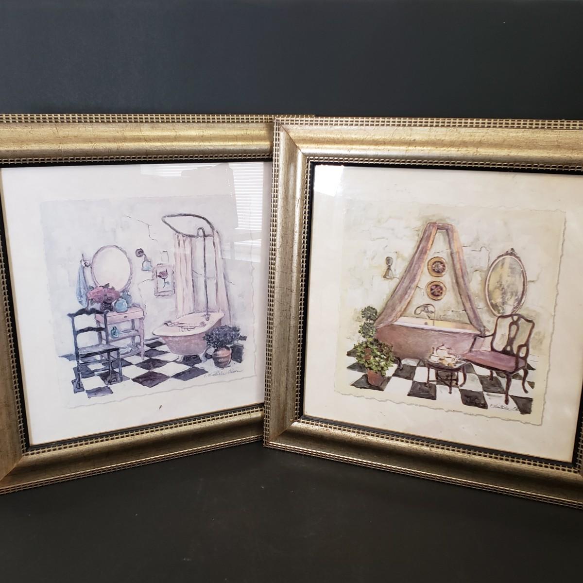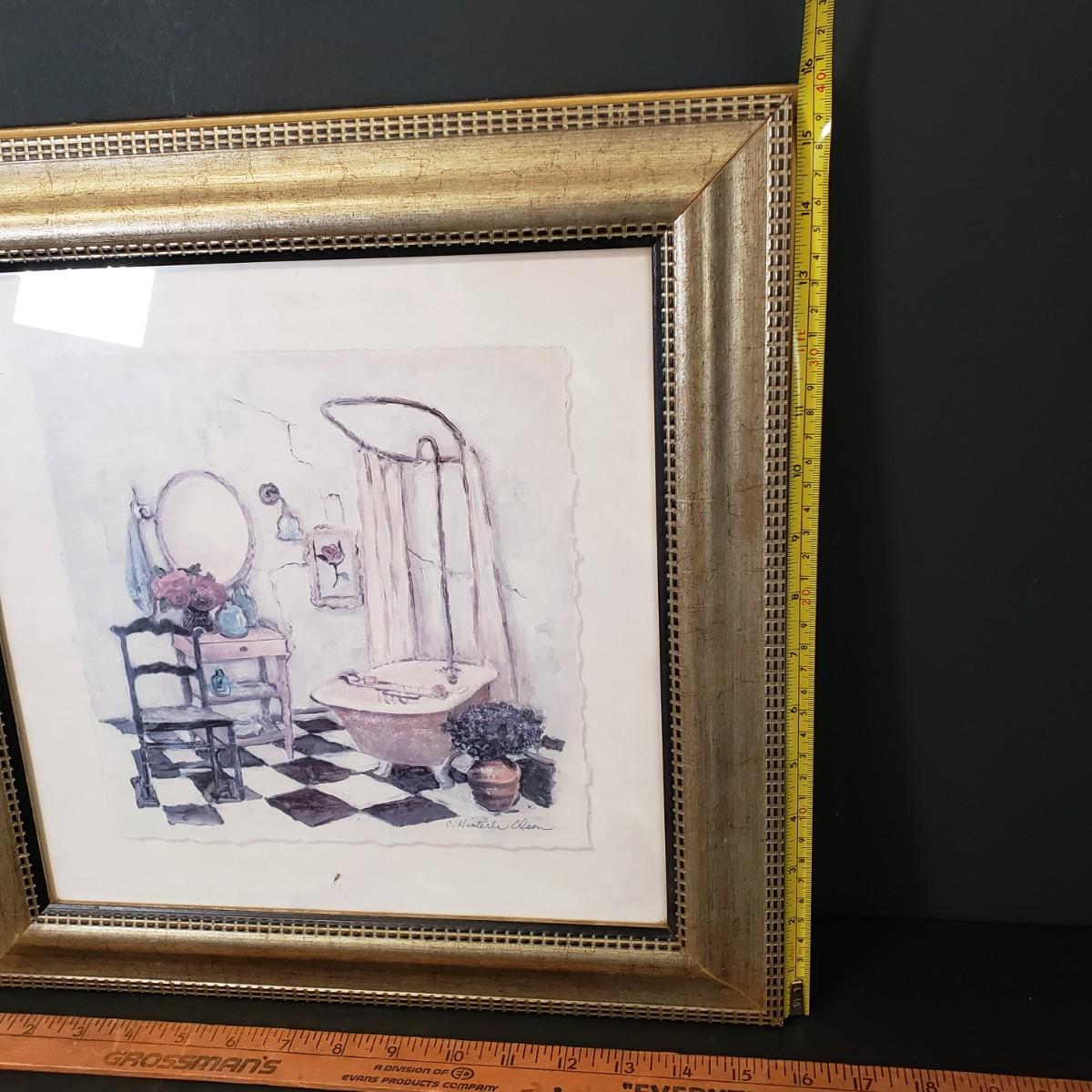LOT 97: Pair of Framed Powder Room Art Pieces Signed C. Winterle Olson
