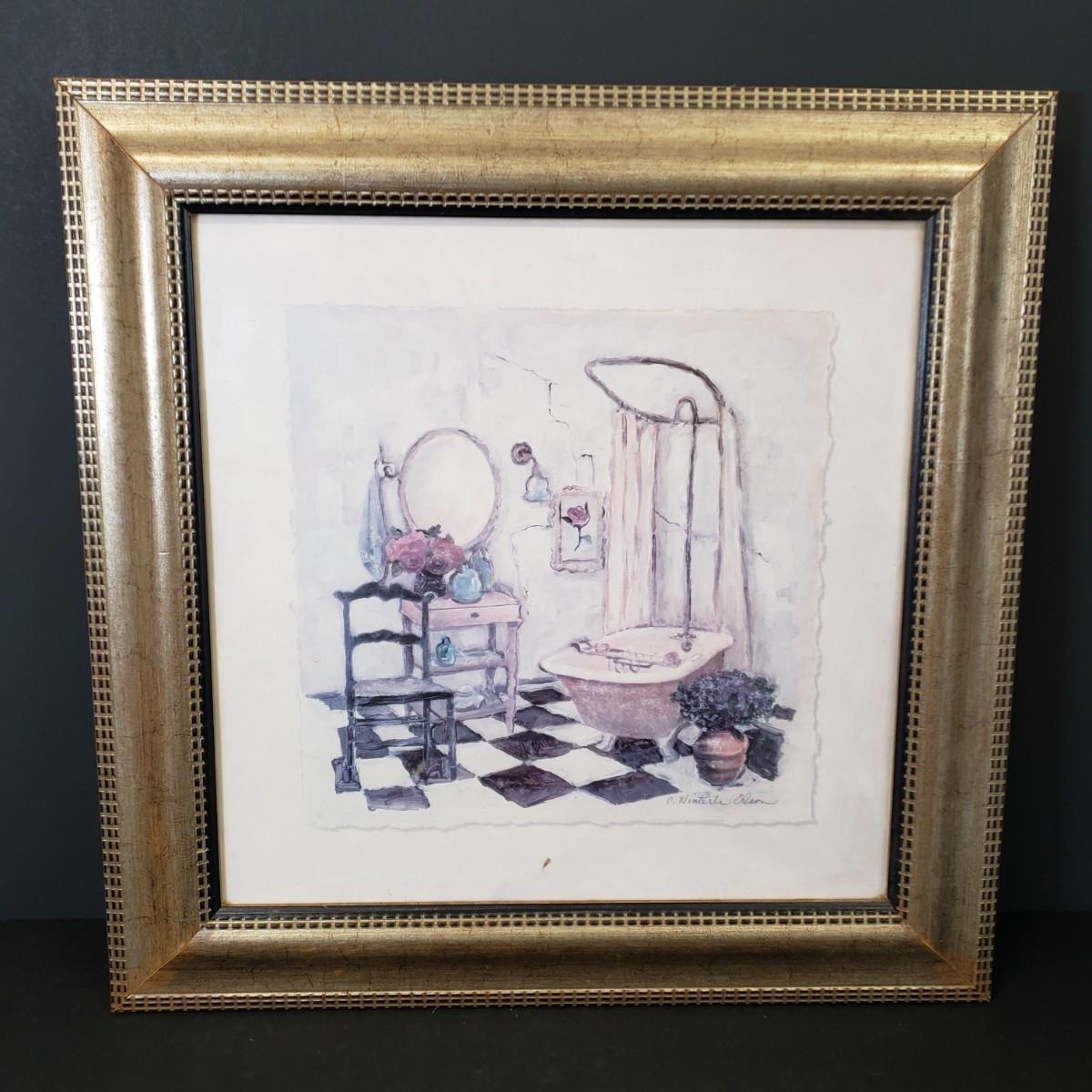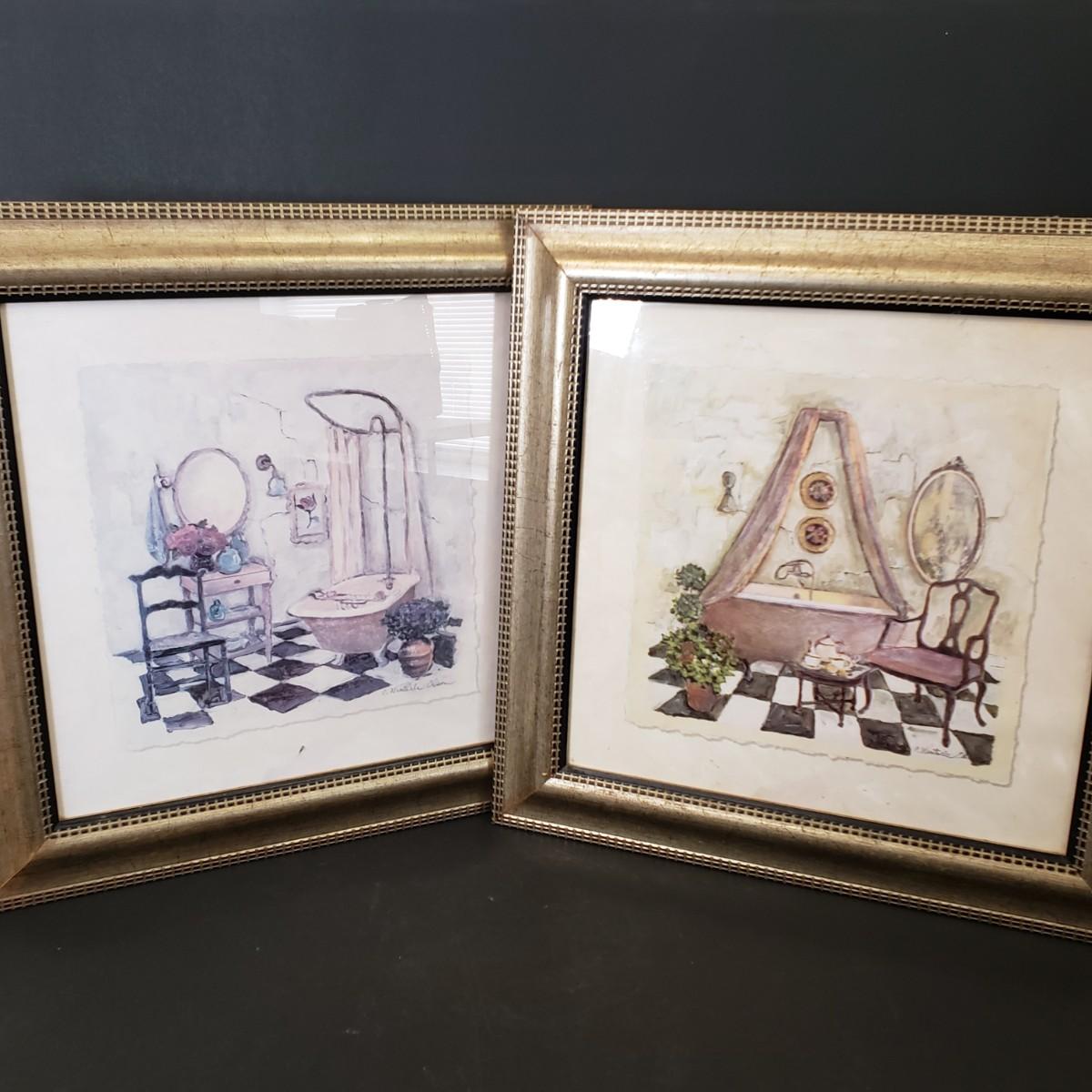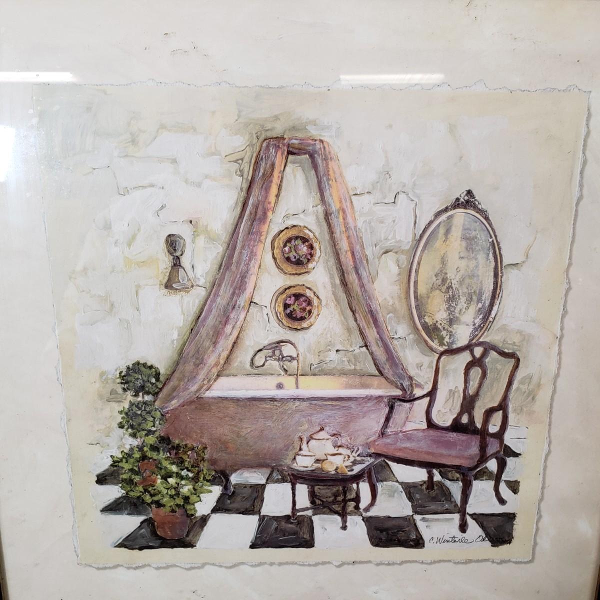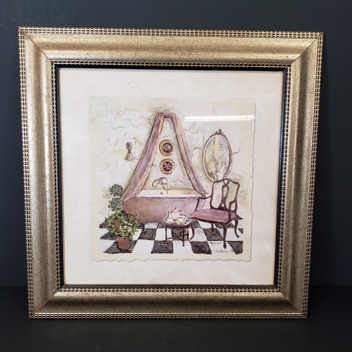 LOT 97: Pair of Framed Powder Room Art Pieces Signed C. Winterle Olson