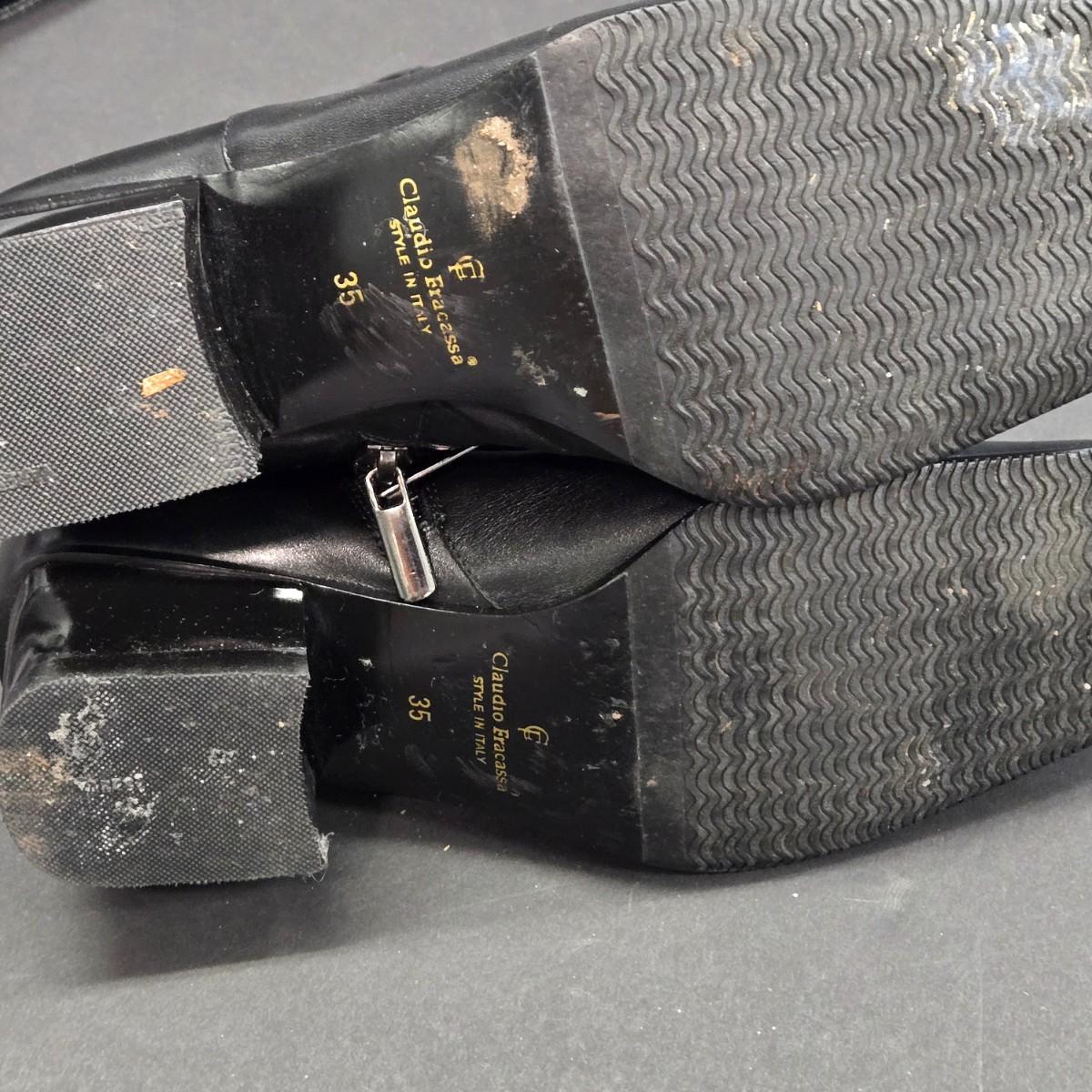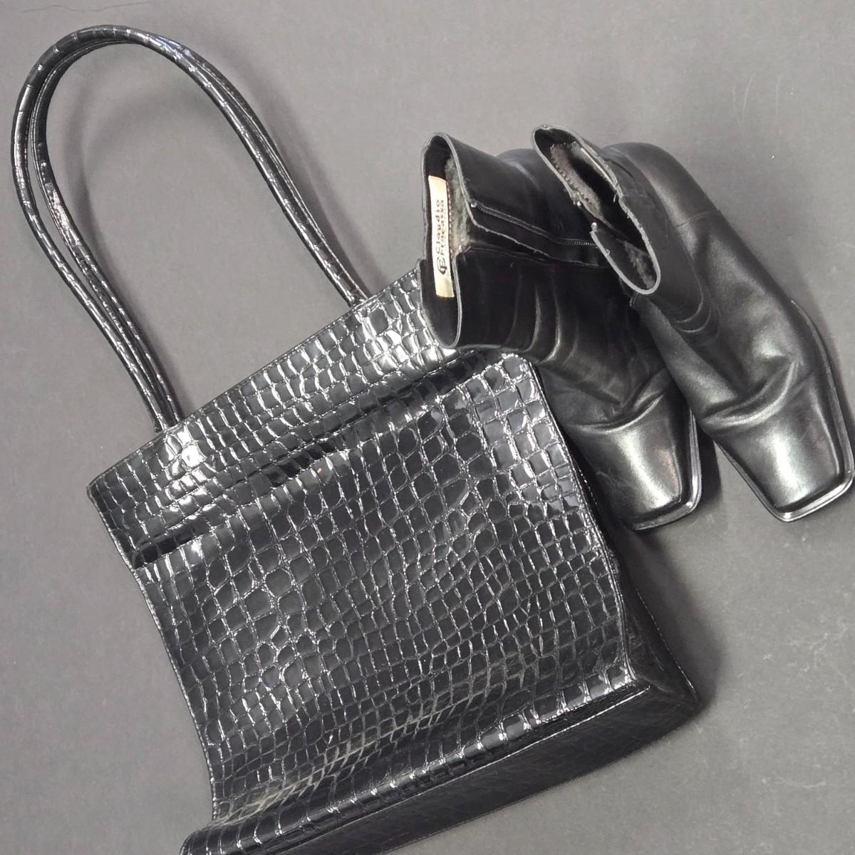 LOT 116: Vintage Black Leather Claudio Fracassa Boots,- sz. 36 Eur. , 5.5 US and Mountain Ridge Handbag