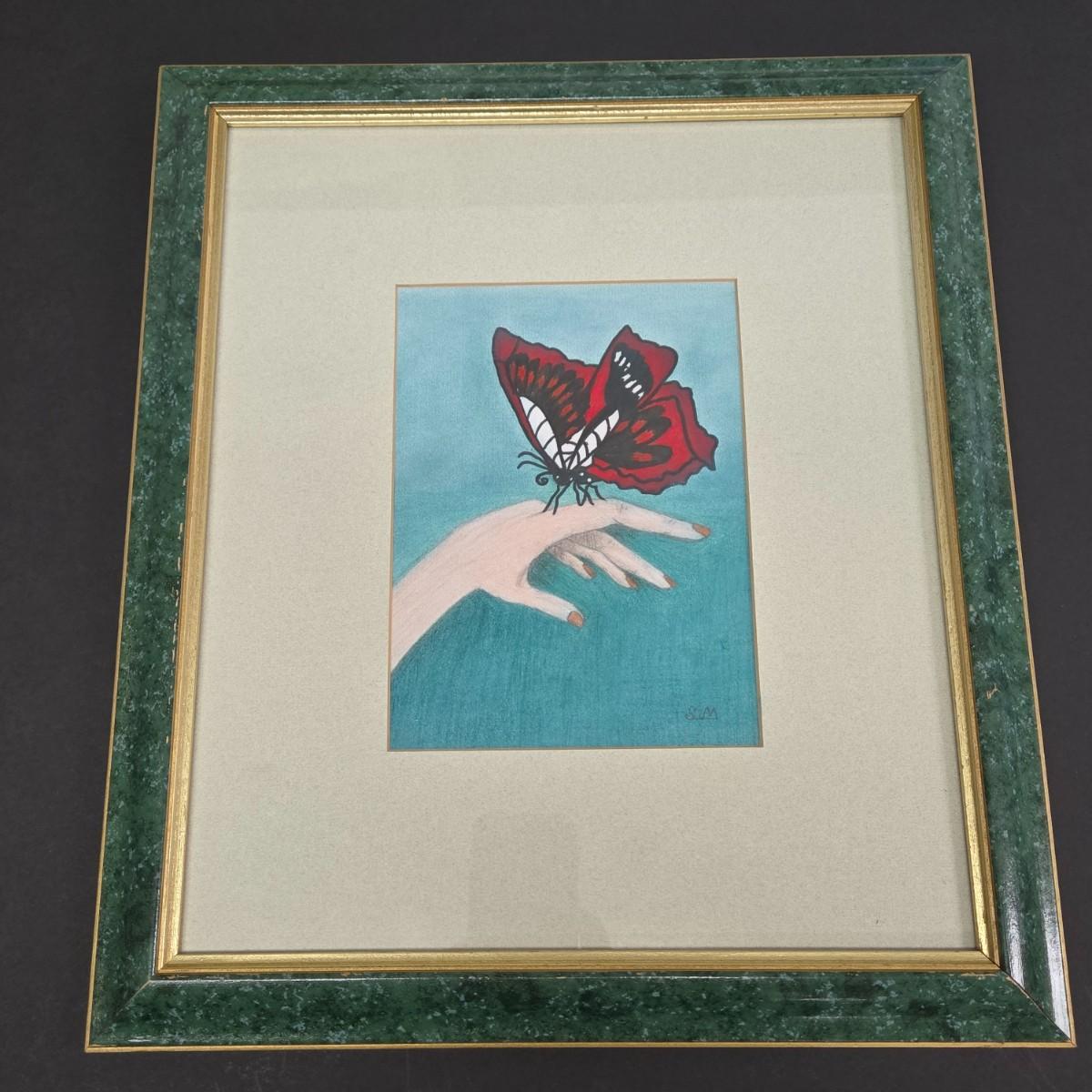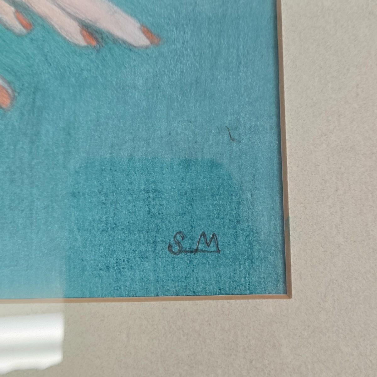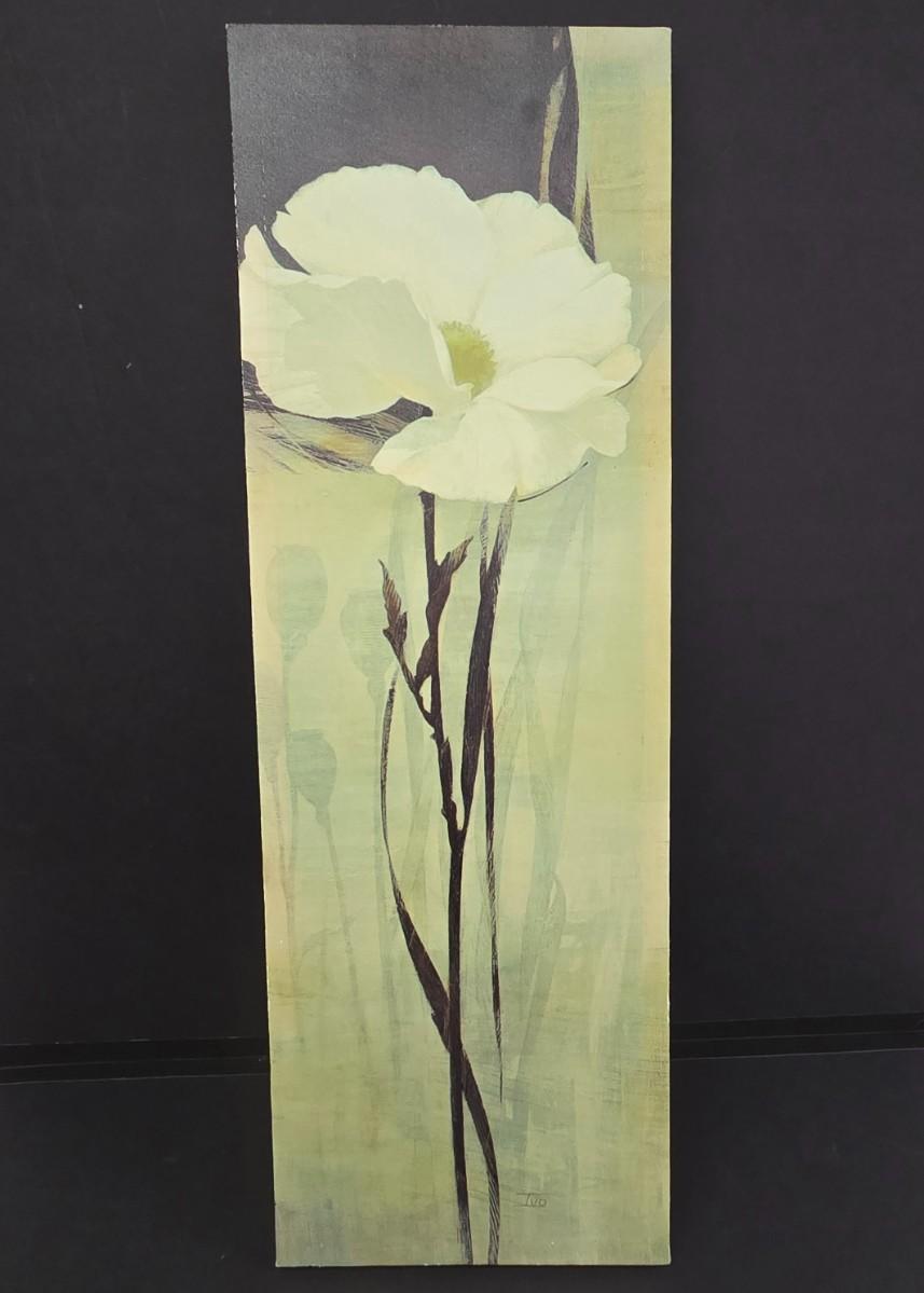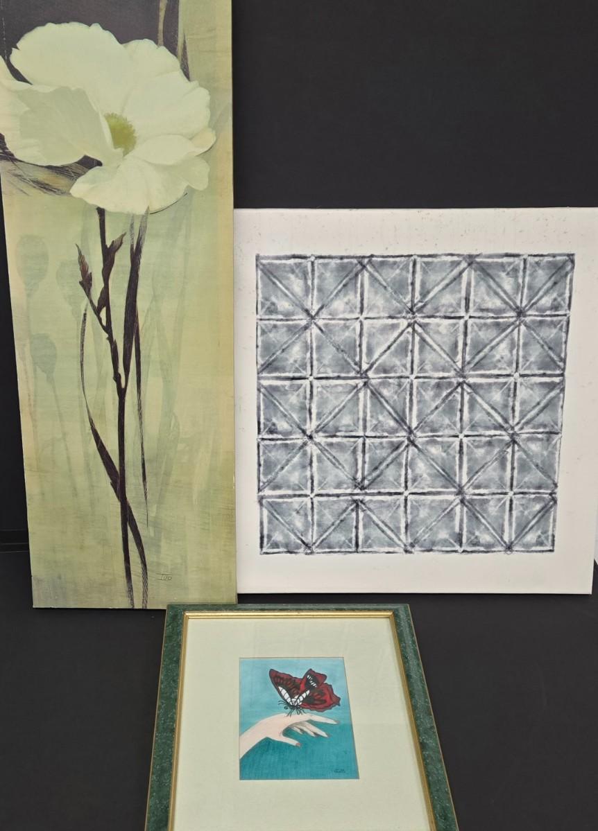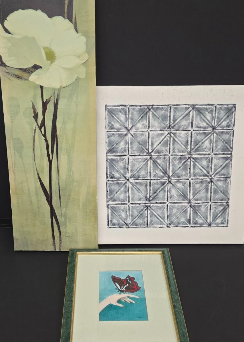 LOT 126: Floral Canvas Wall Hanging, Tile Print Canvas Wall Decor and Matted Signed Print