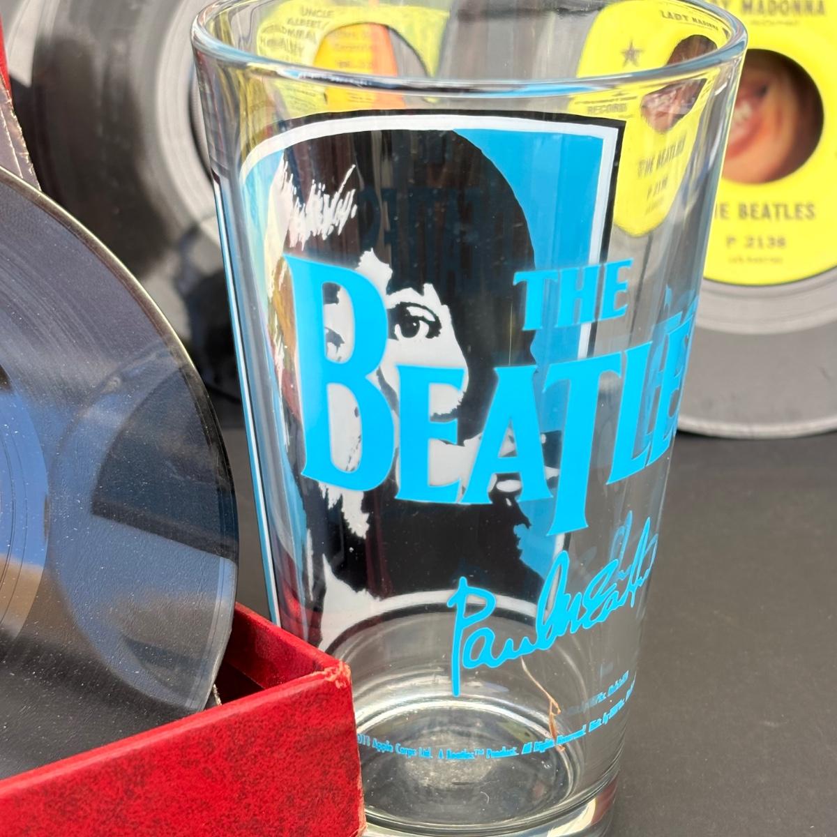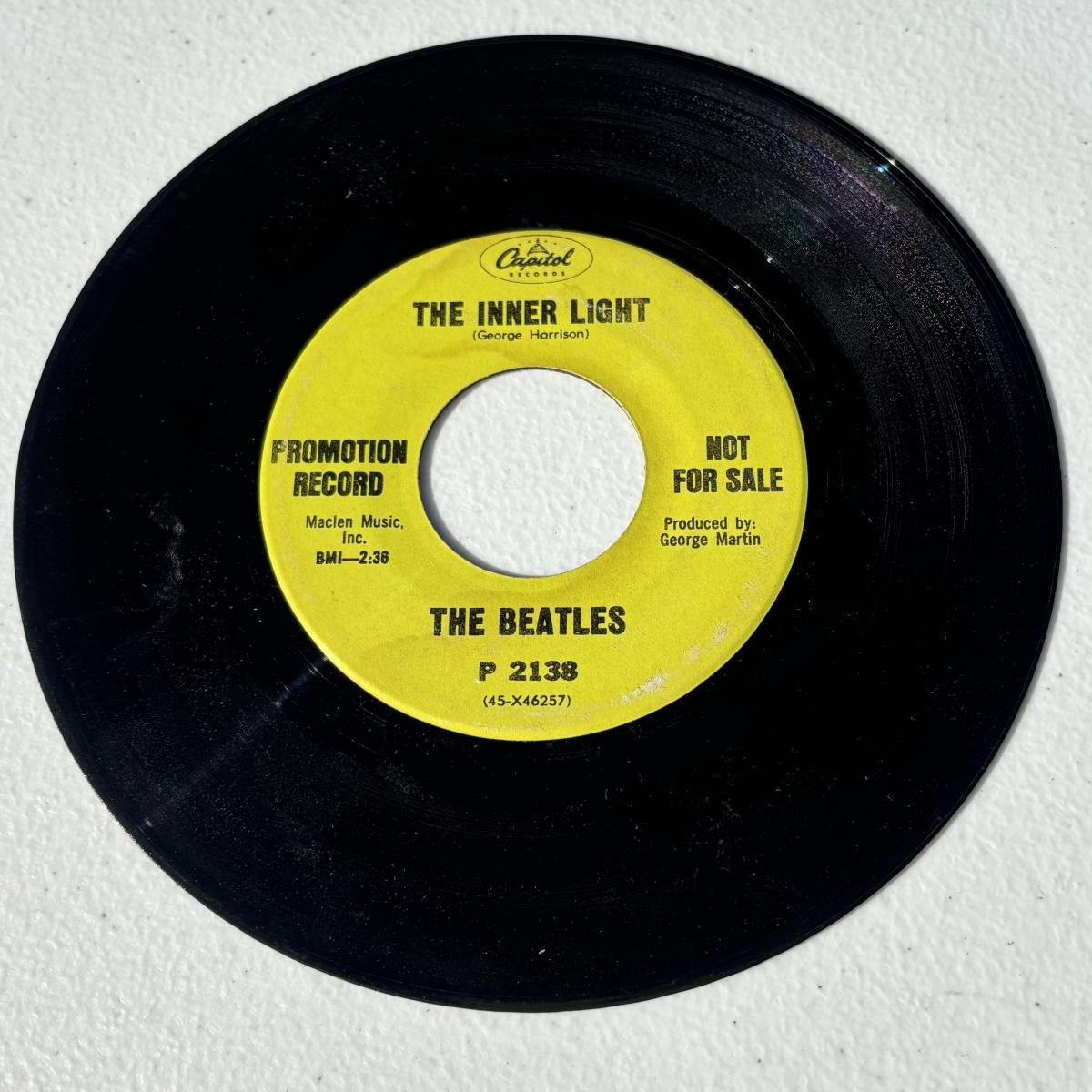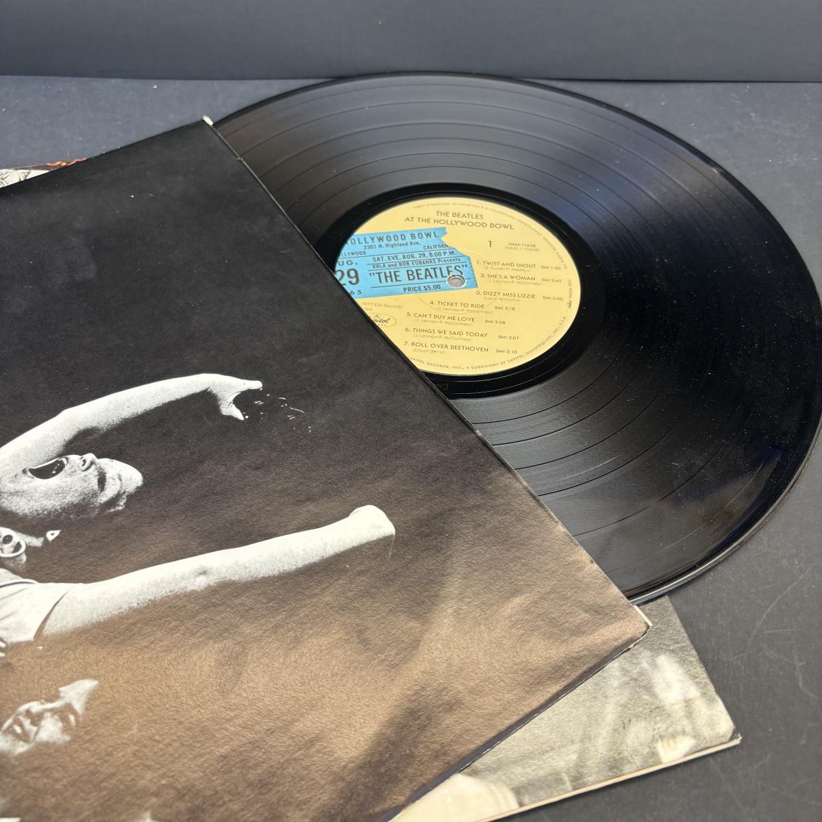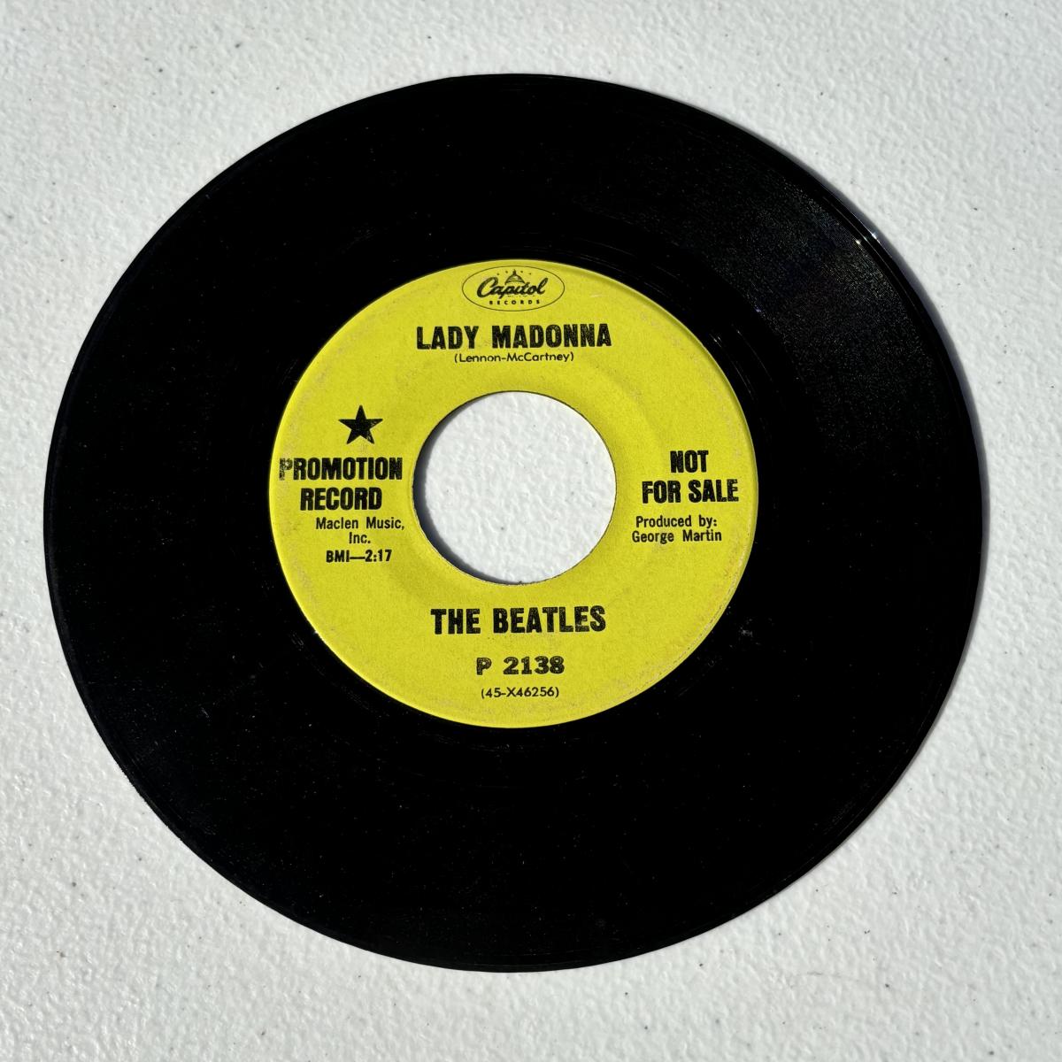 LOT 4: Vintage Beatles Tray, Live at the Hollywood Bowl LP, Lady Madonna Promotion 45, Wing at the Speed of Sound LP and Various Artists 45s