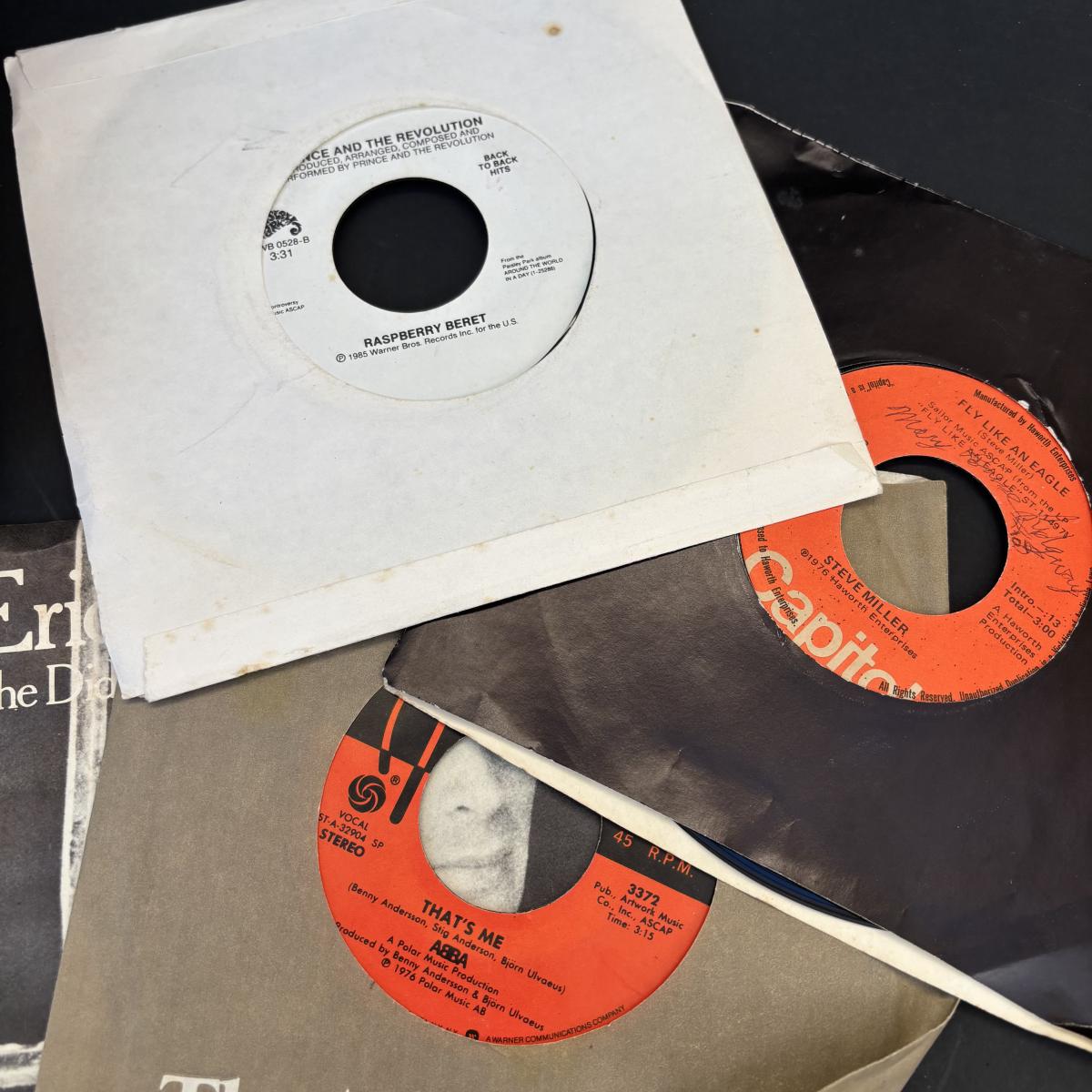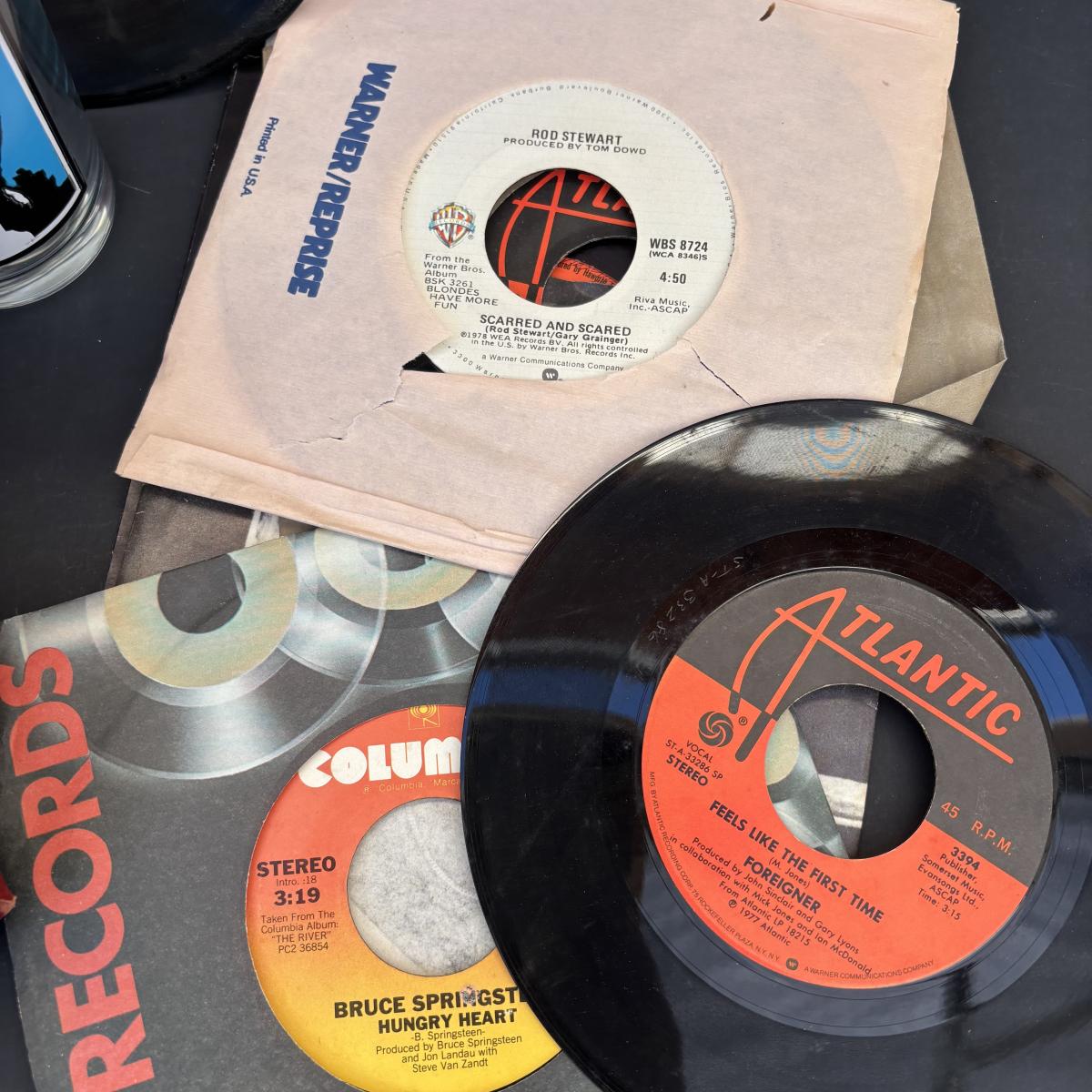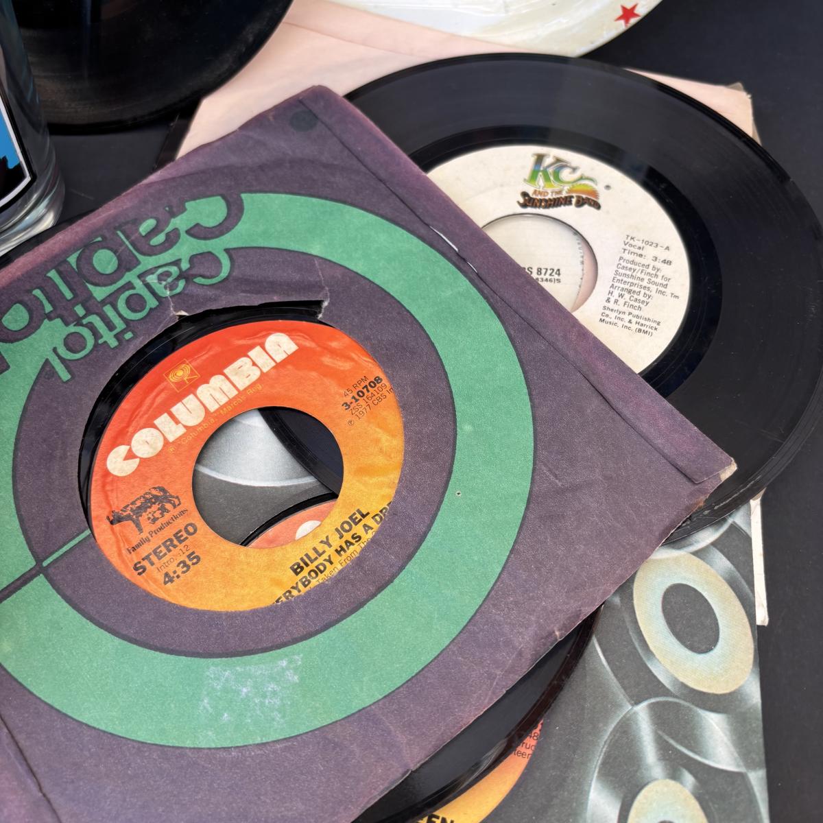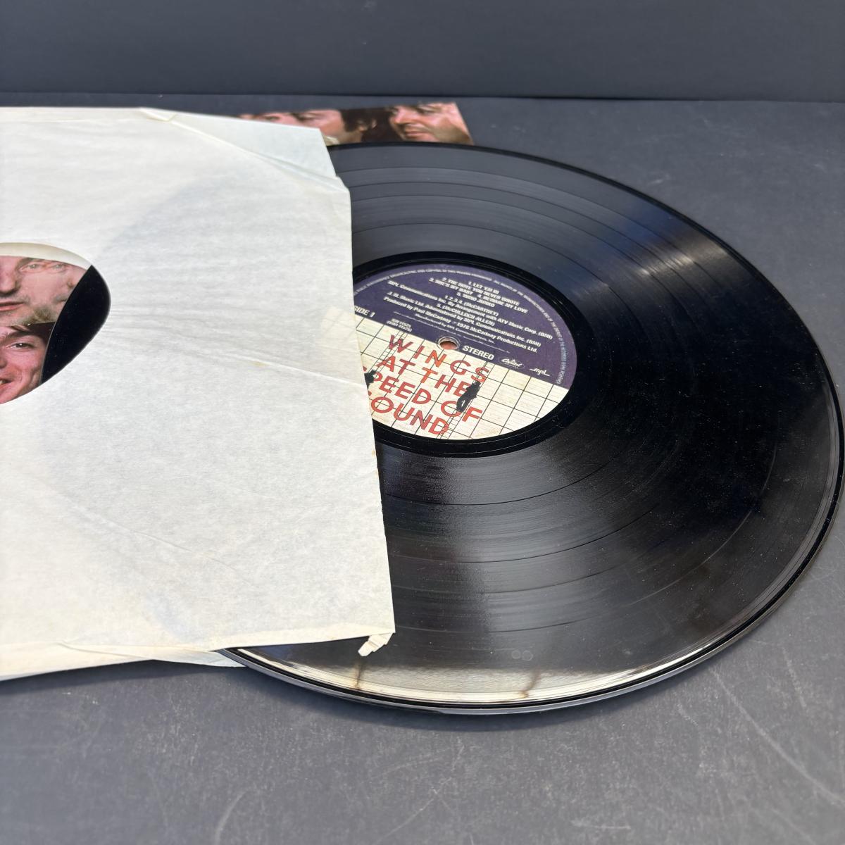 LOT 4: Vintage Beatles Tray, Live at the Hollywood Bowl LP, Lady Madonna Promotion 45, Wing at the Speed of Sound LP and Various Artists 45s