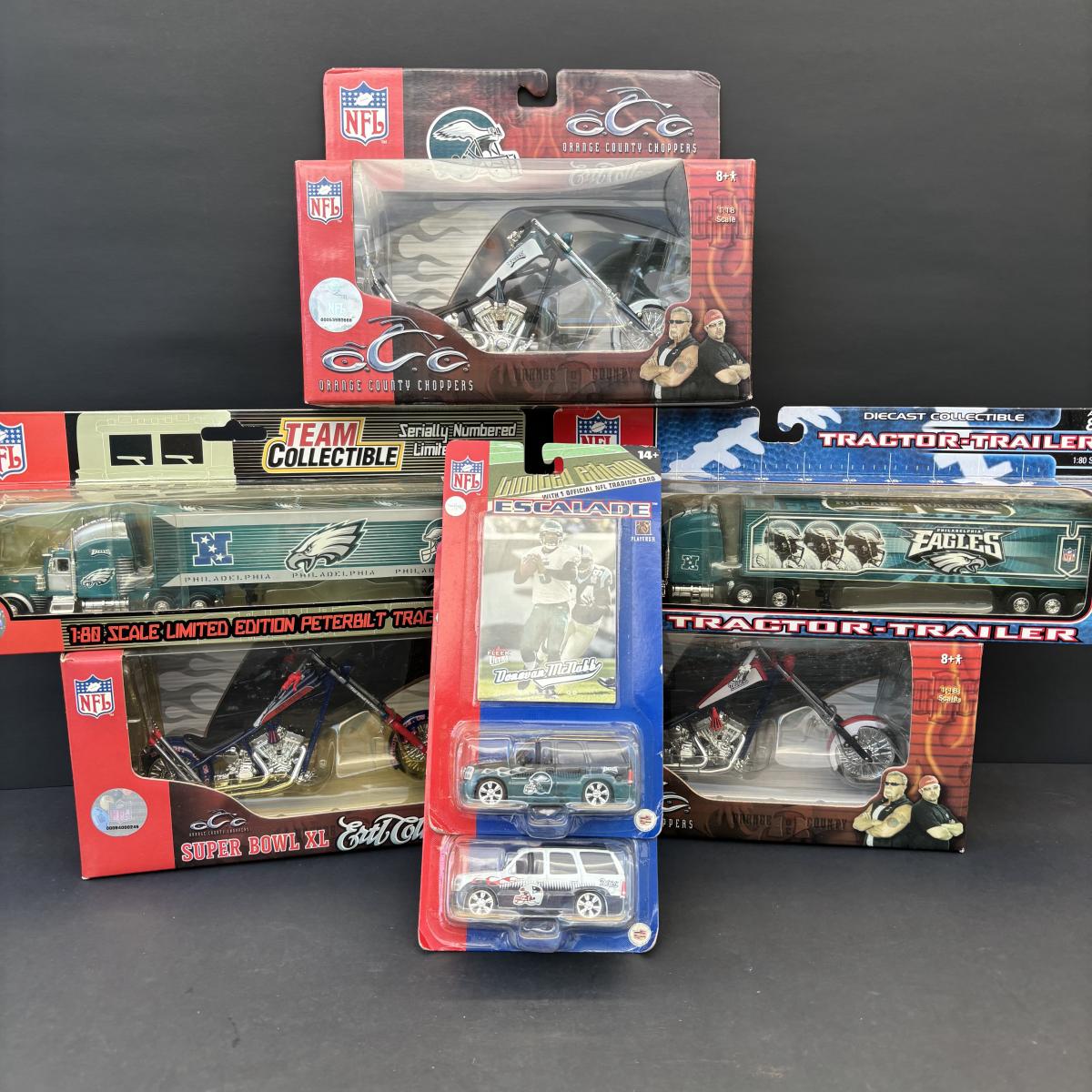 LOT 5: Ertl Collectible Trucks & Choppers: Philadelphia Eagles & New England Patriots