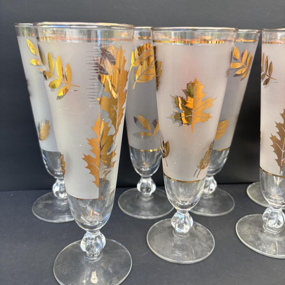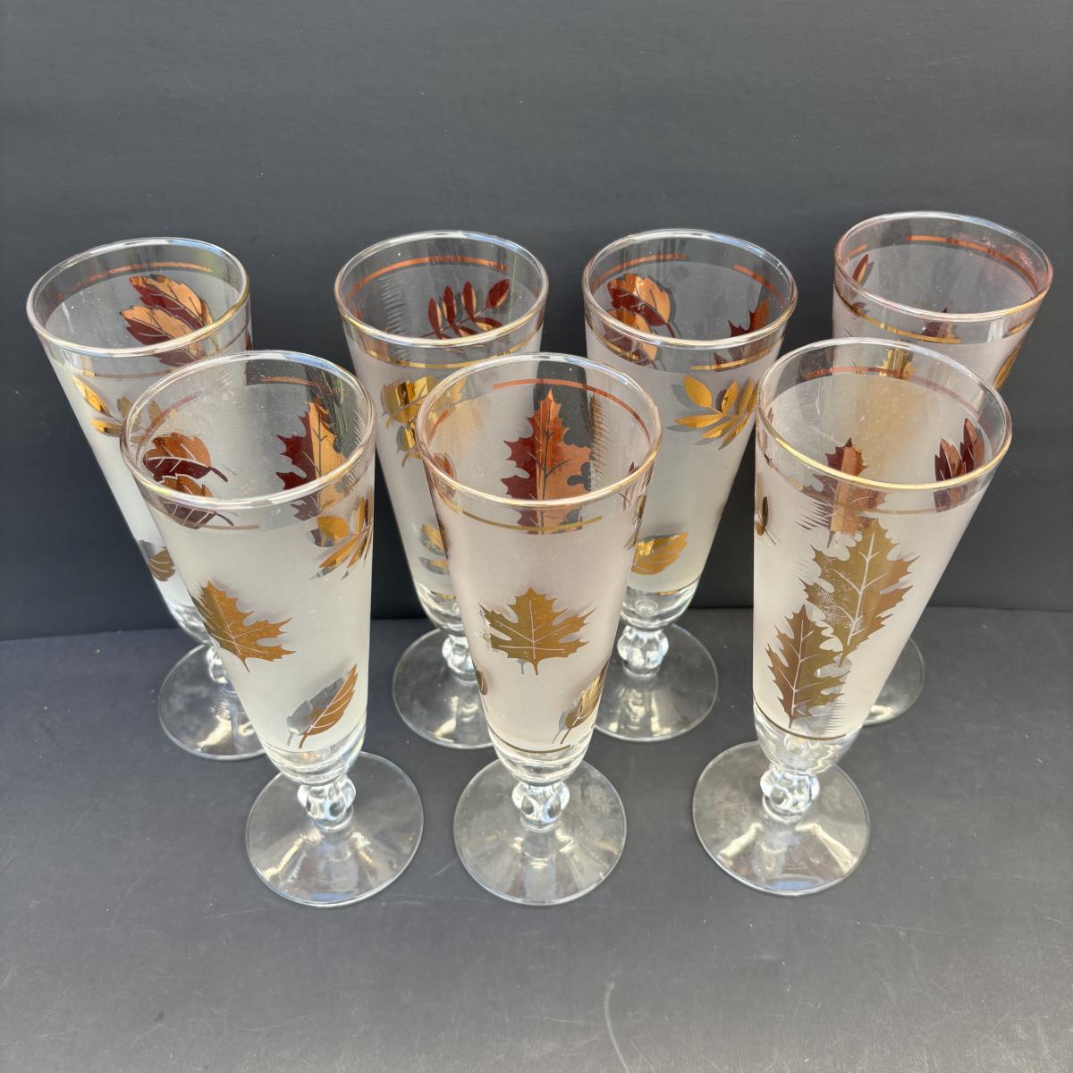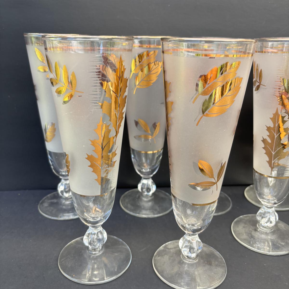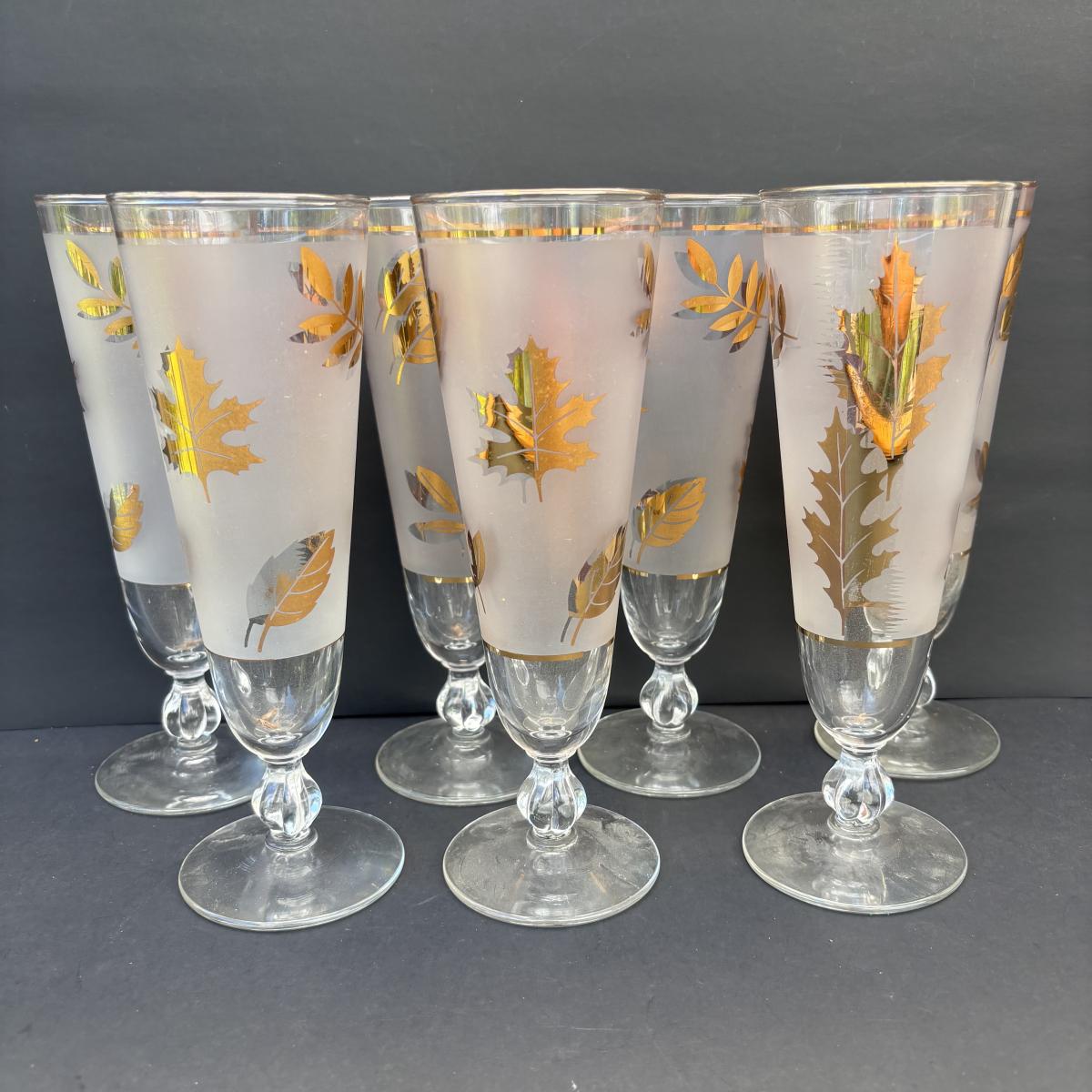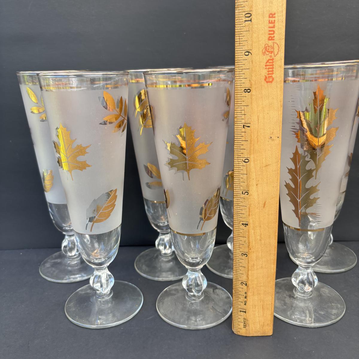 LOT 10: Frosted Gold Leaf Pilsner Glasses (6)