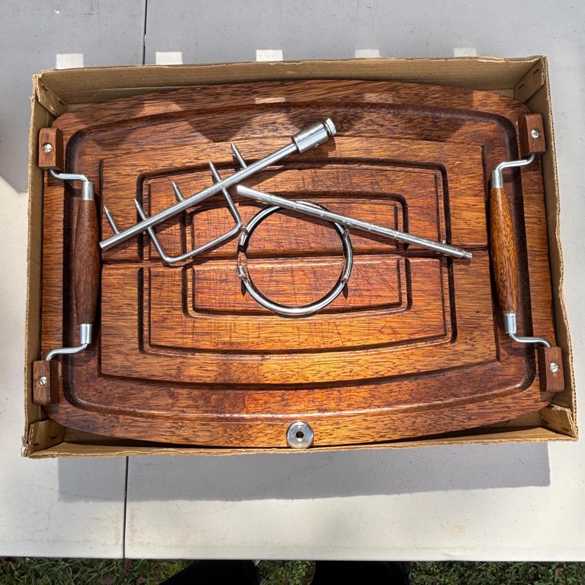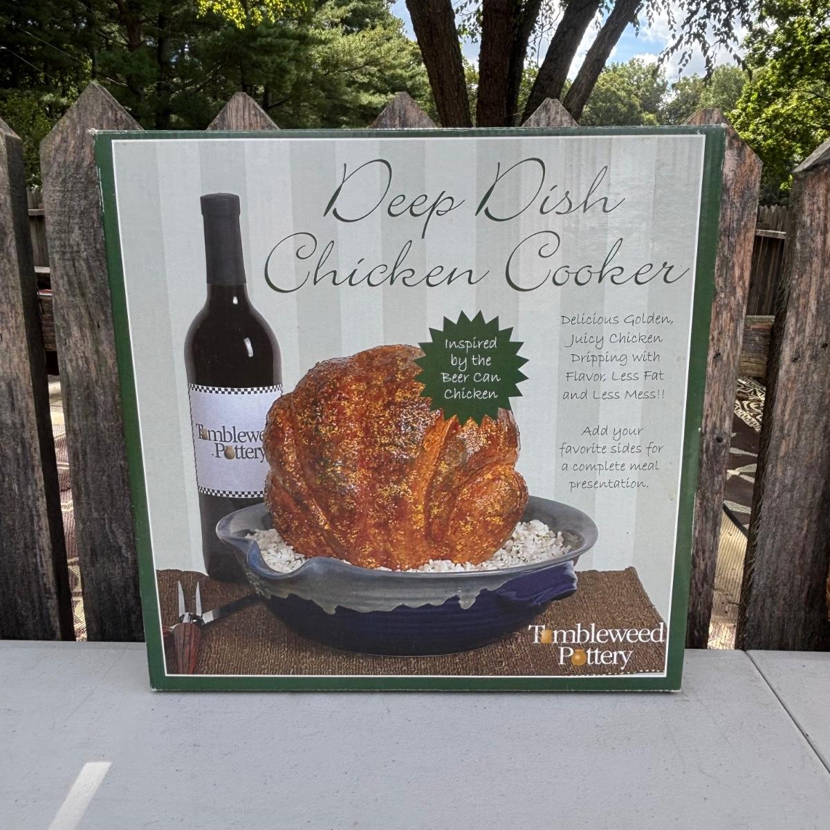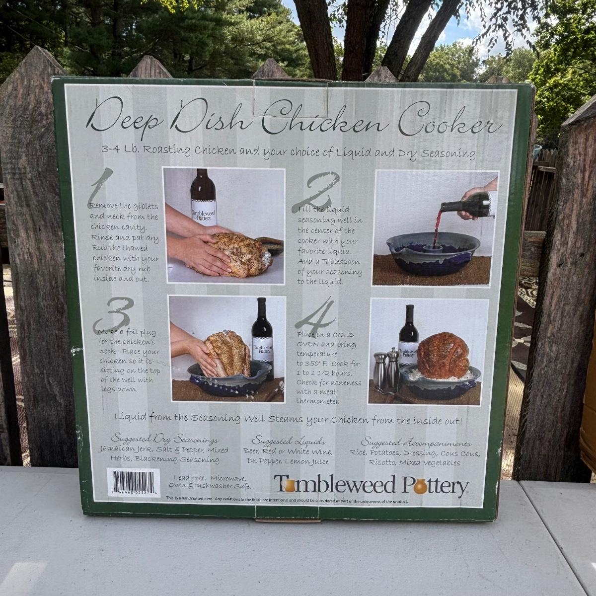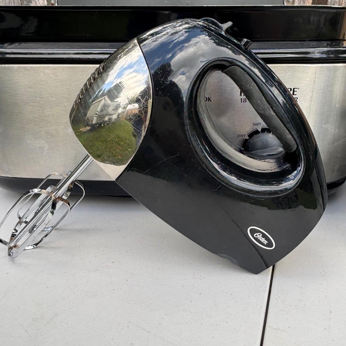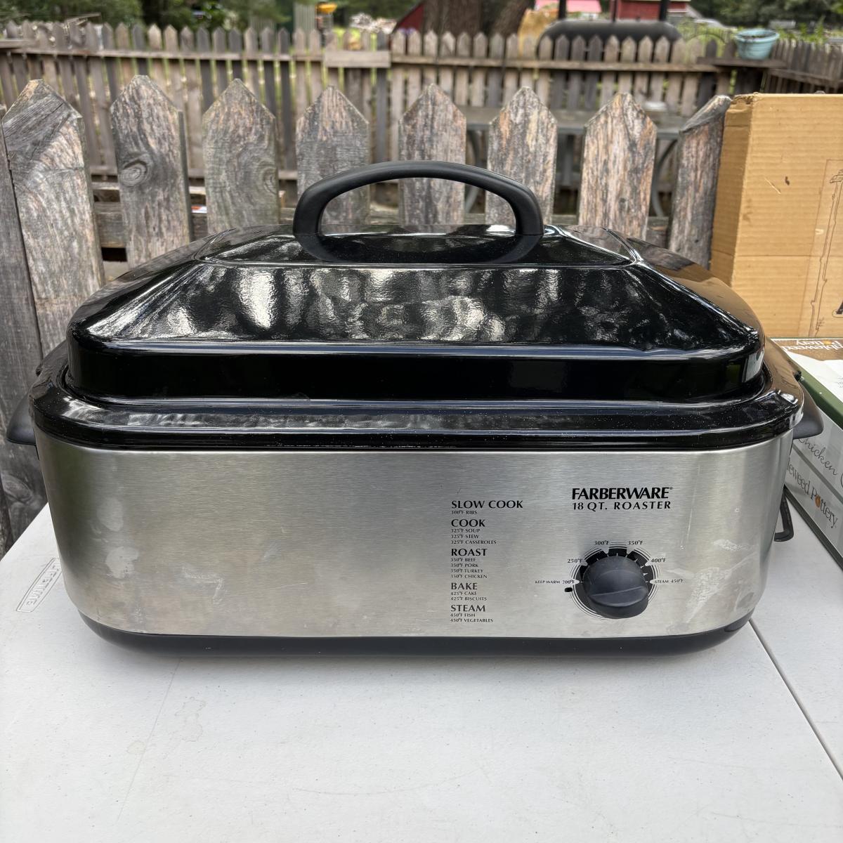 LOT 29: Farberware Roaster FSR180, Tumbleweed Pottery Chicken Cooker, Carving Board, Oster Mixer & More