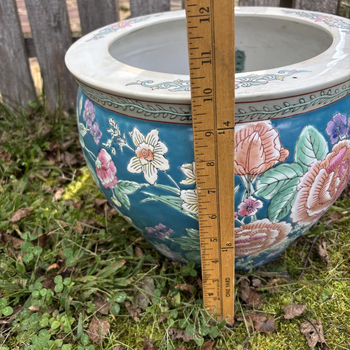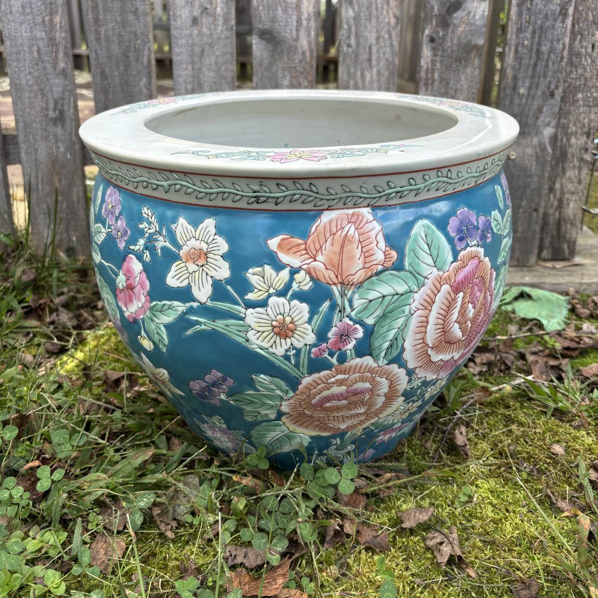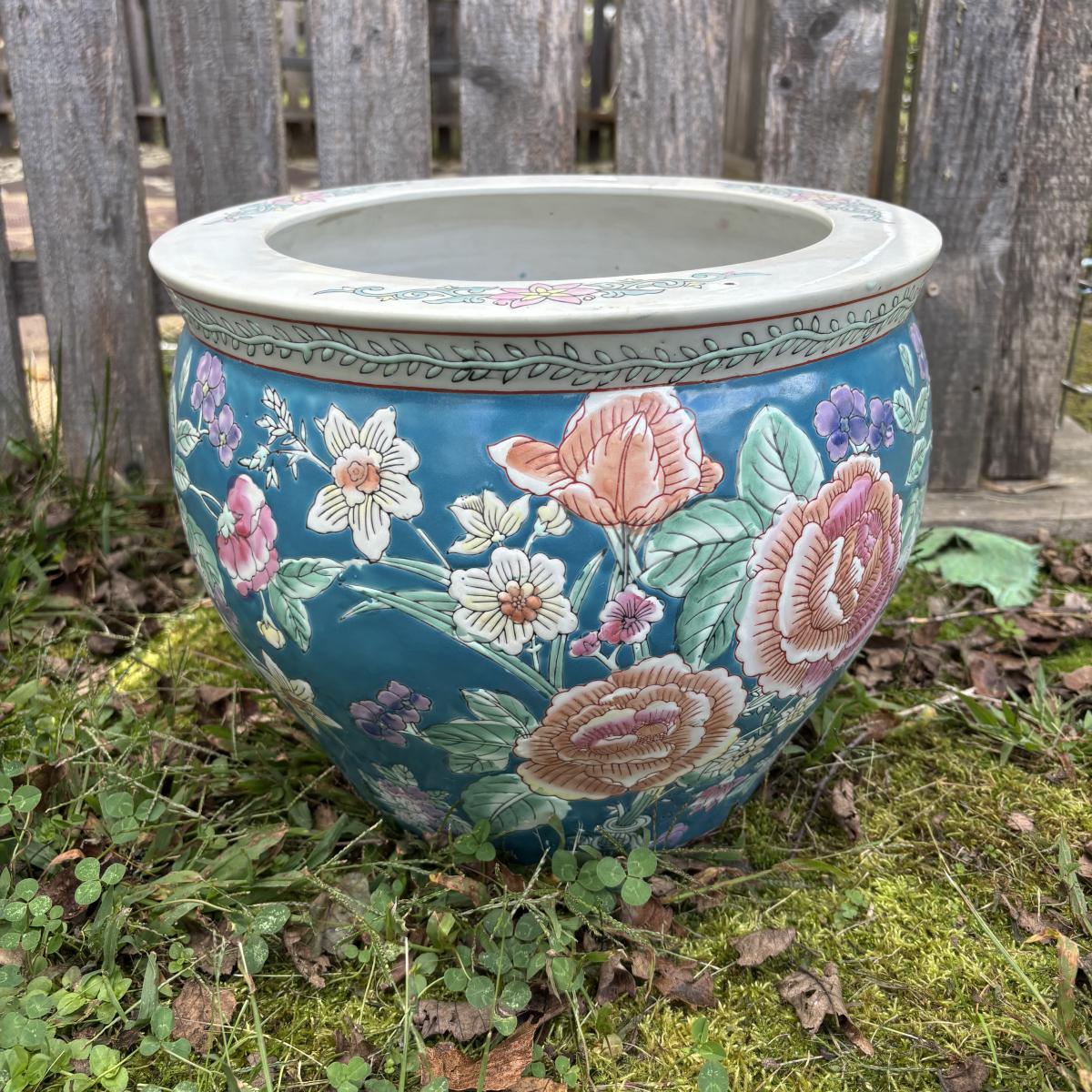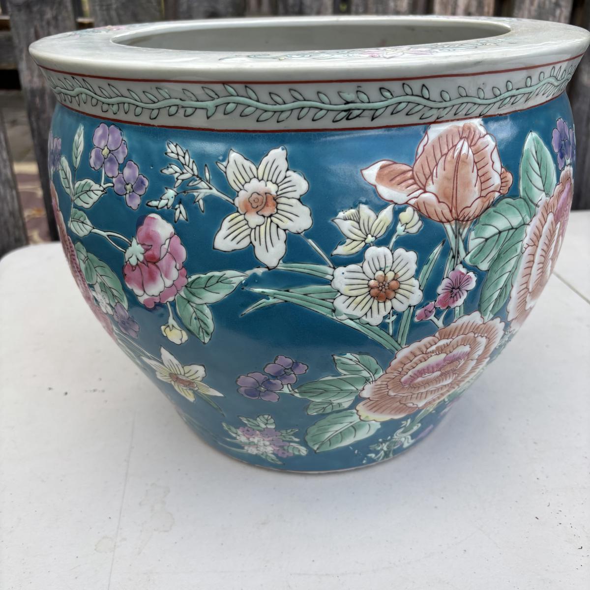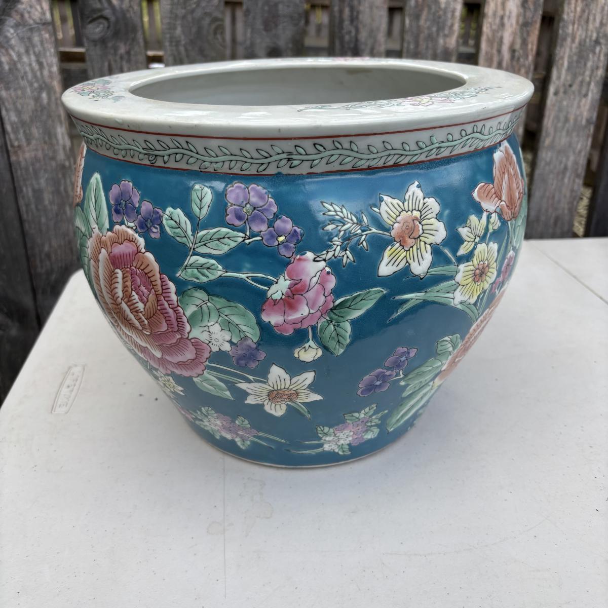 LOT 34: Porcelain Blue Floral Koi Fisher Planter/Bowl