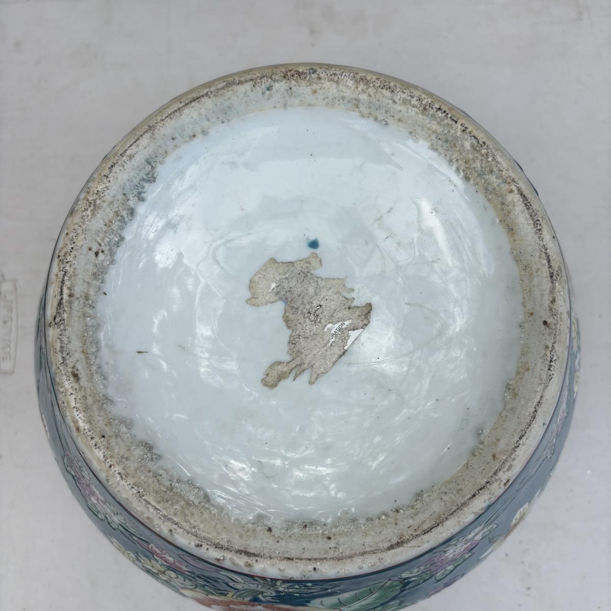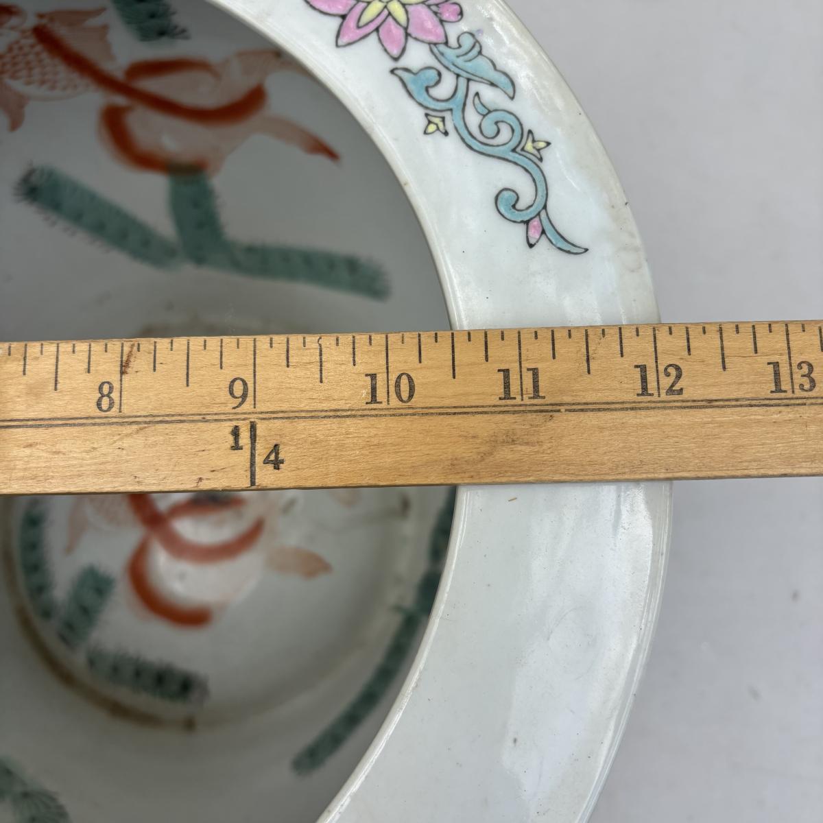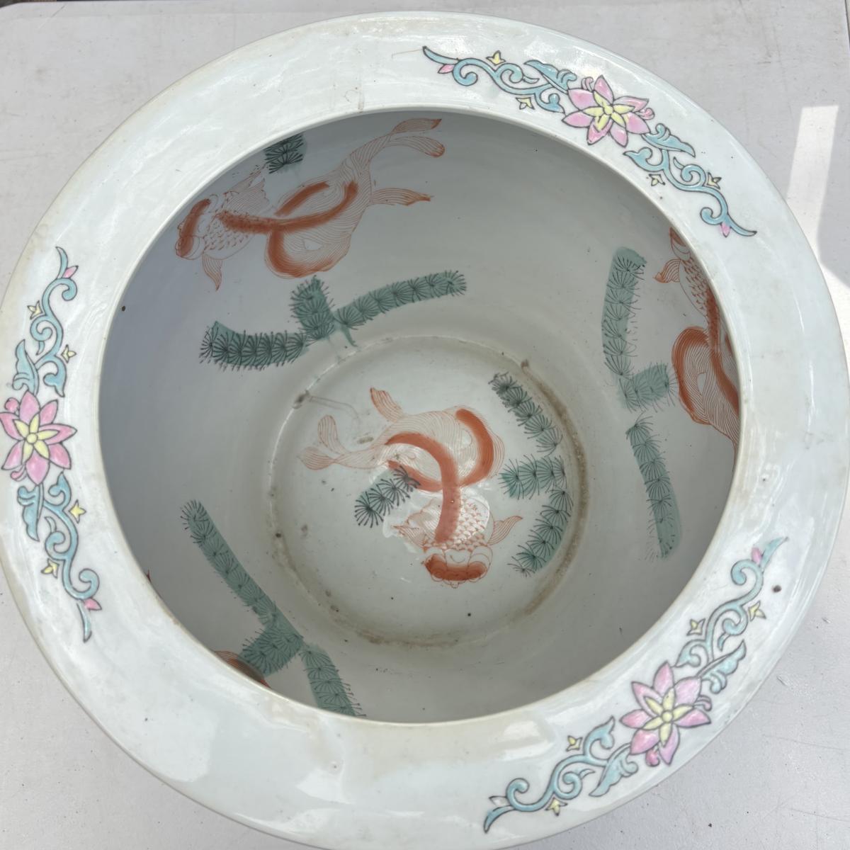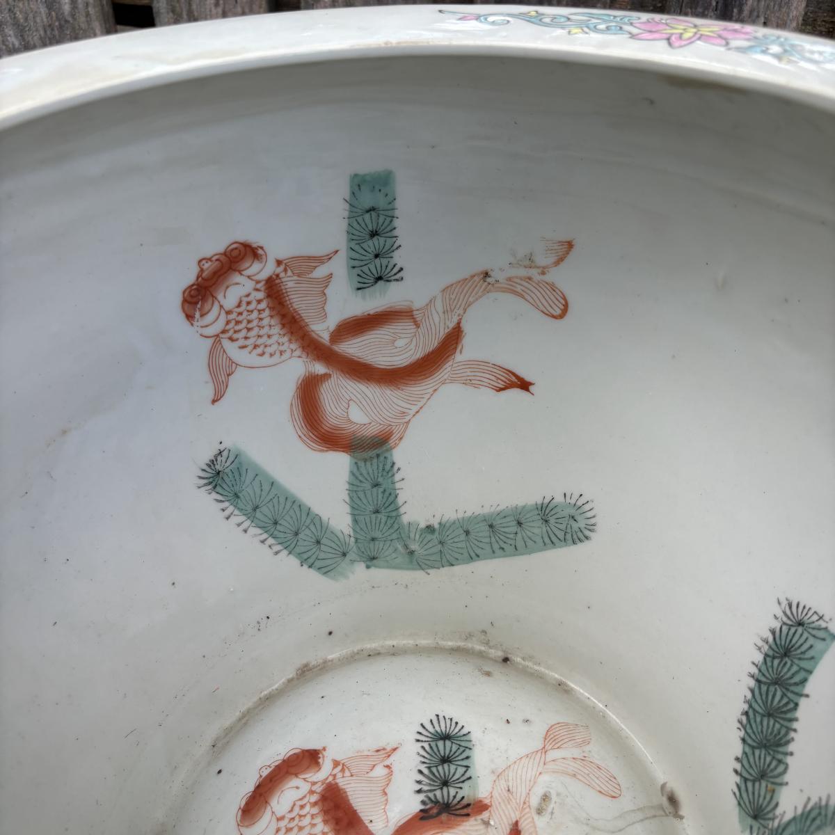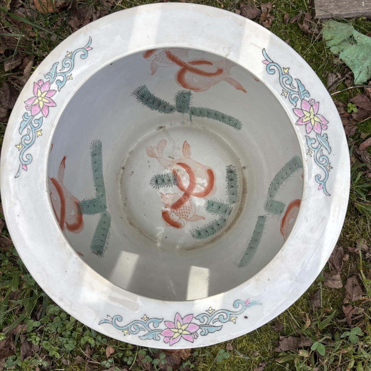 LOT 34: Porcelain Blue Floral Koi Fisher Planter/Bowl