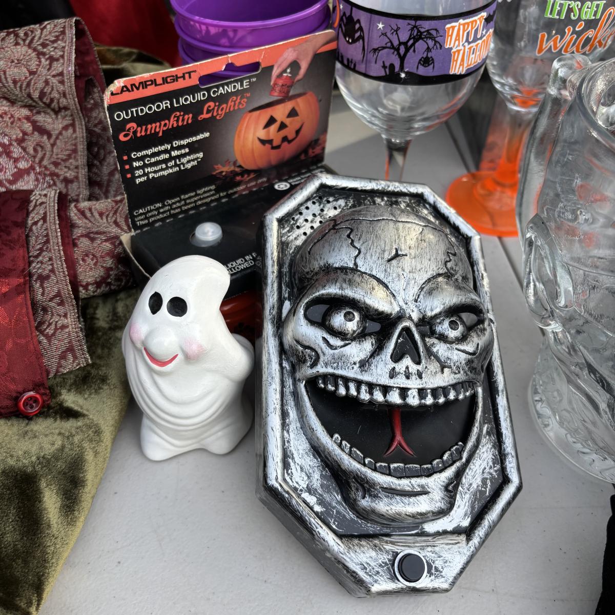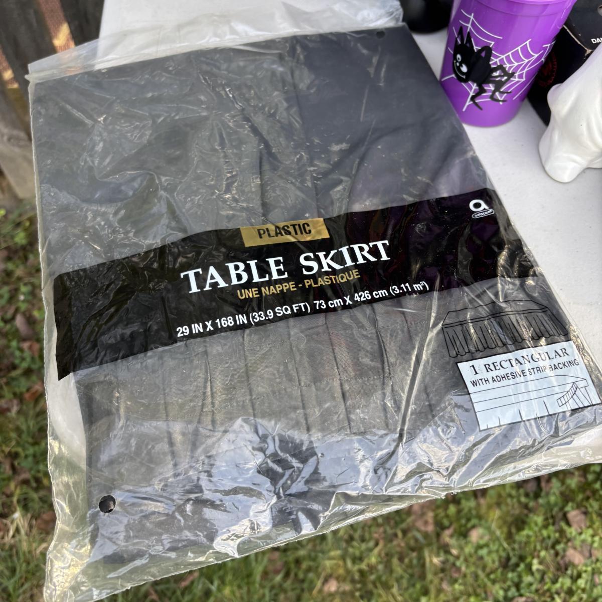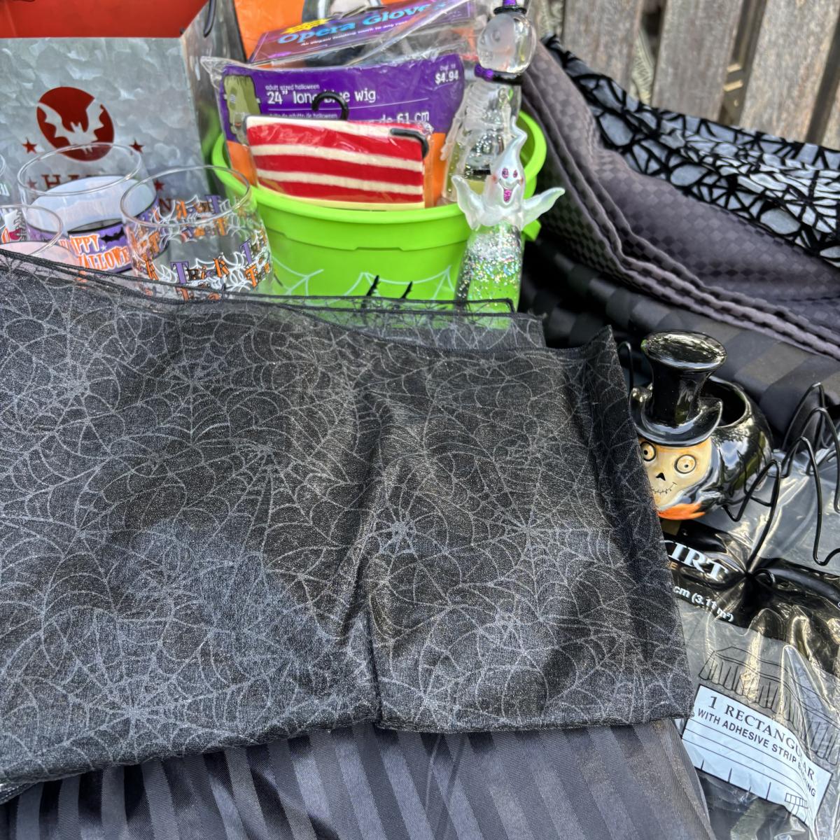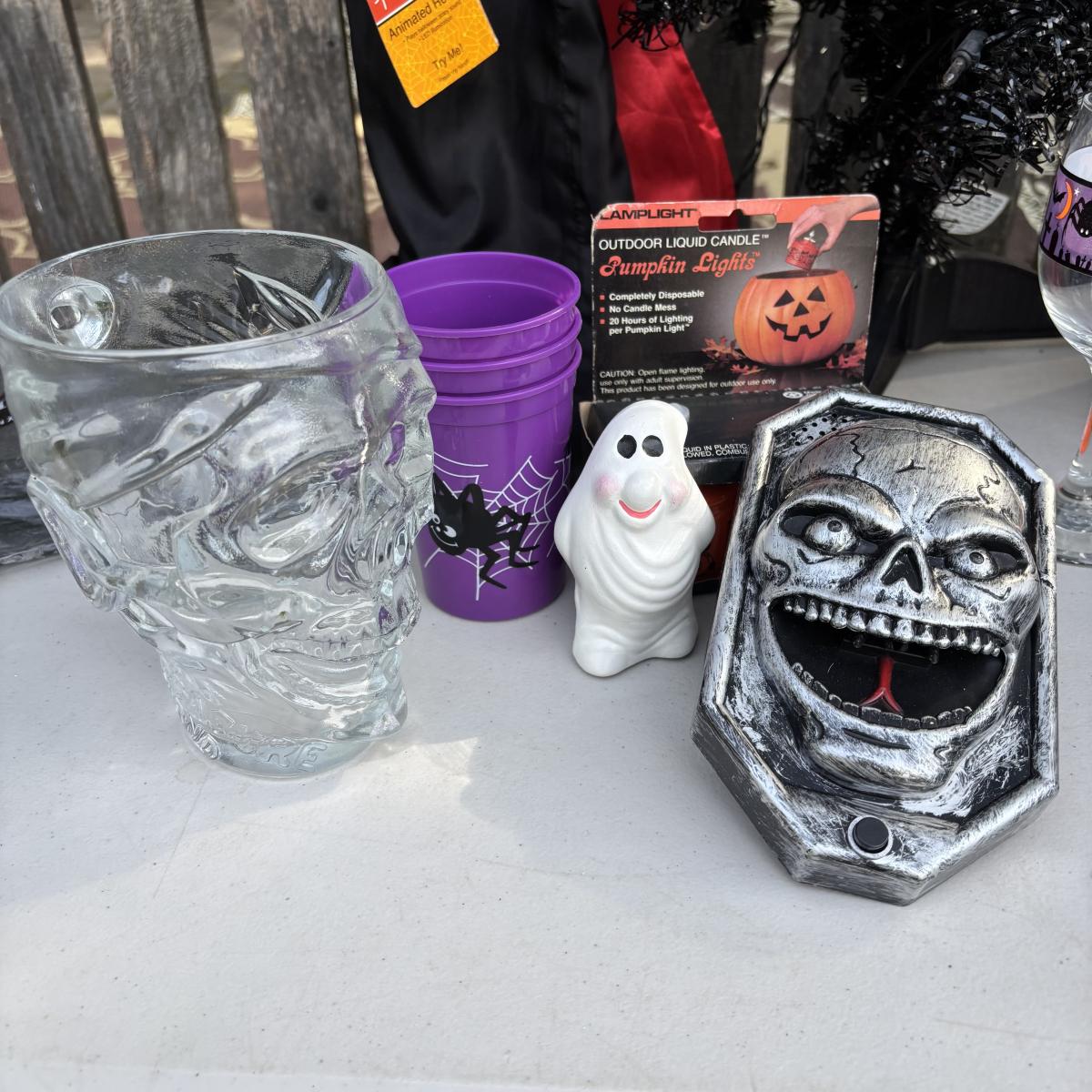 LOT 43: Halloween Decor & More: Tablecloths, Black Christmas Tree, Wine Glasses, Grim Reaper and More