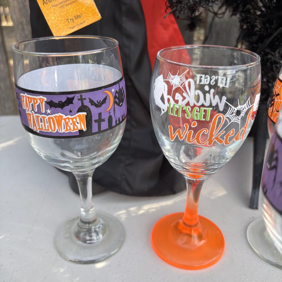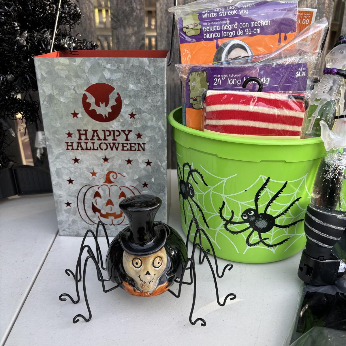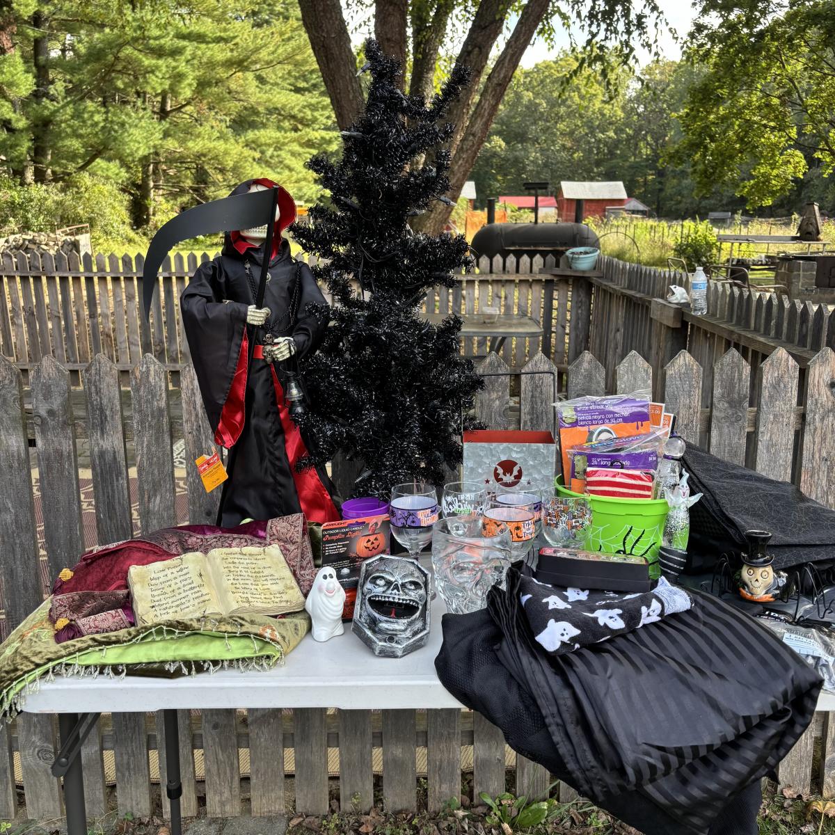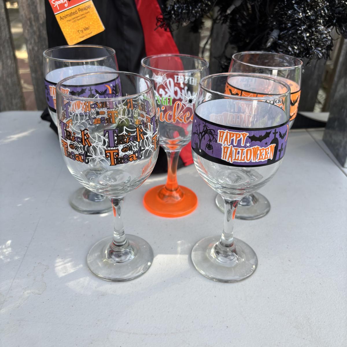 LOT 43: Halloween Decor & More: Tablecloths, Black Christmas Tree, Wine Glasses, Grim Reaper and More