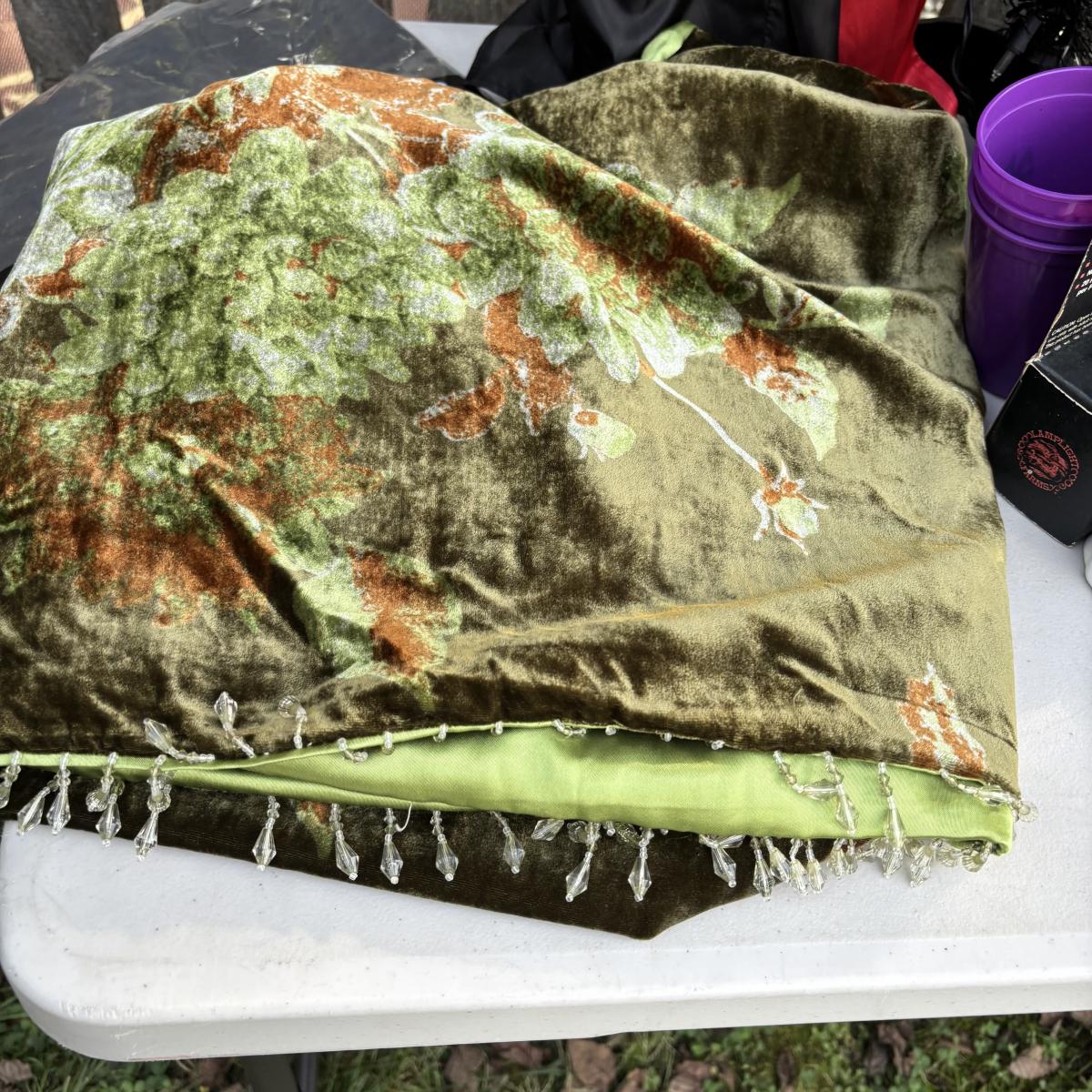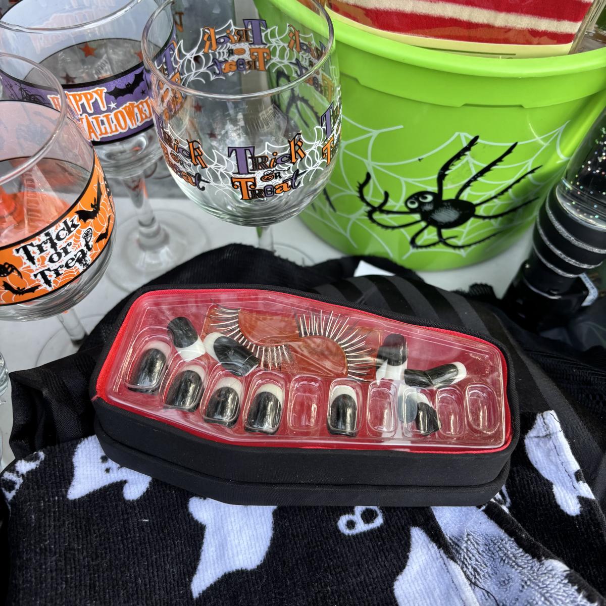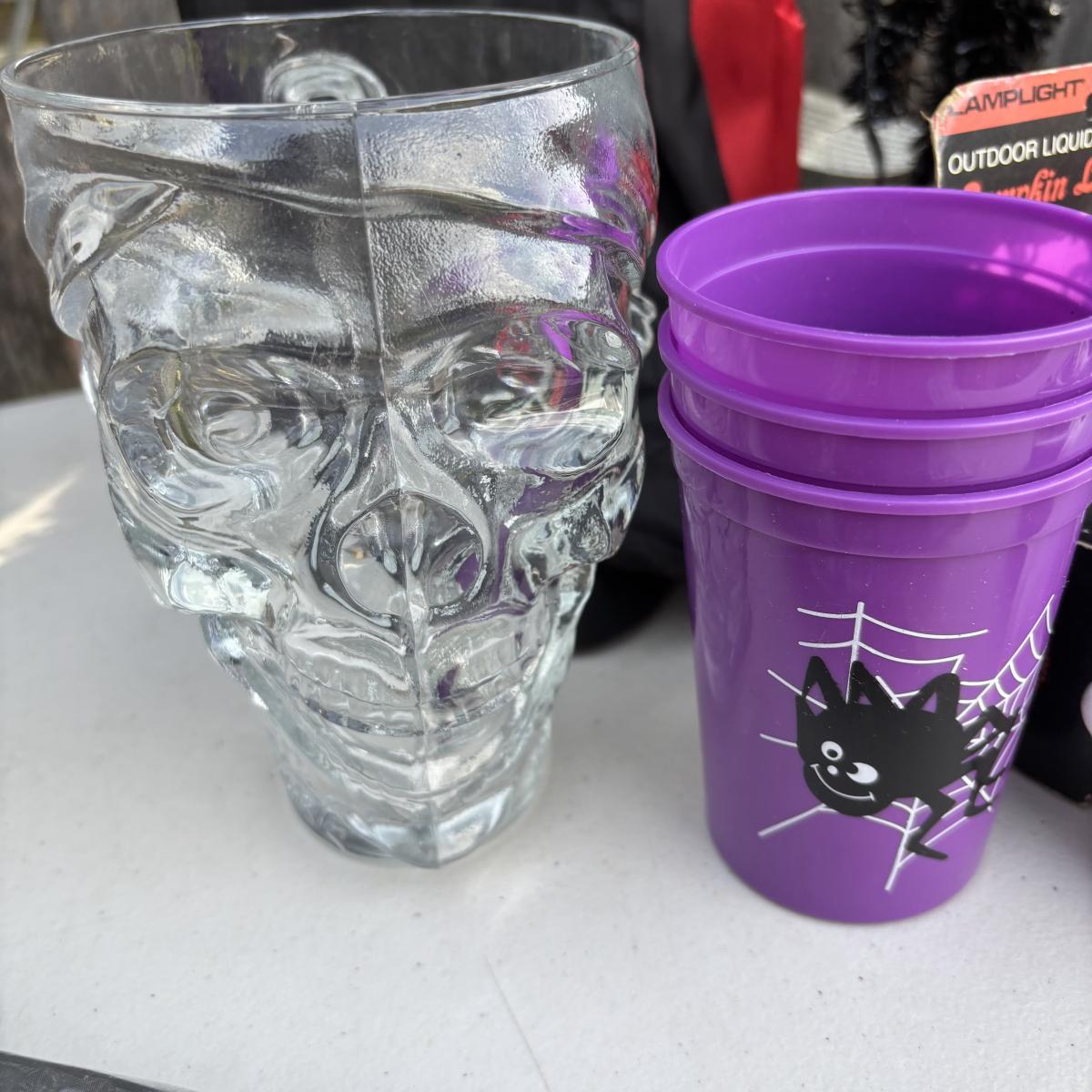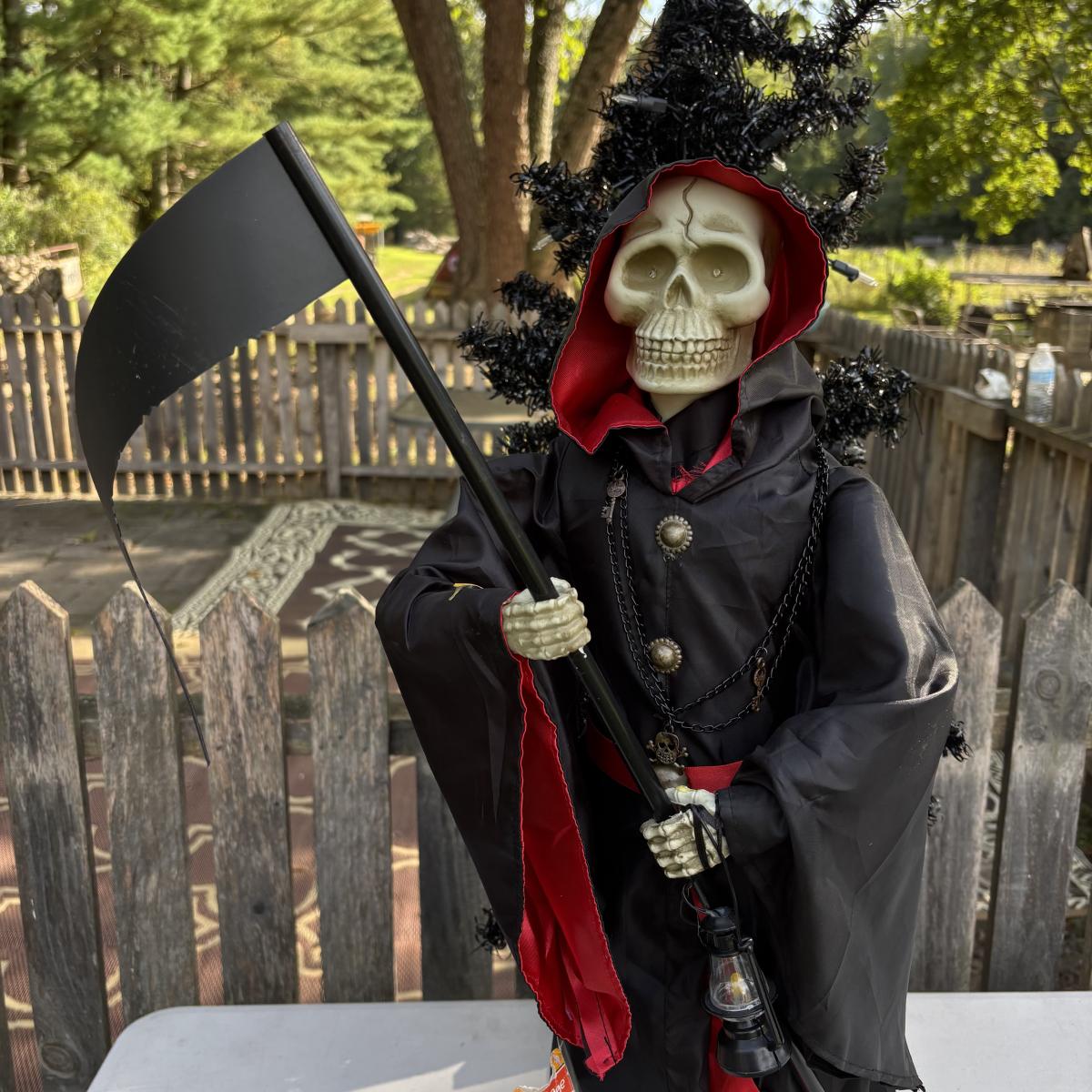 LOT 43: Halloween Decor & More: Tablecloths, Black Christmas Tree, Wine Glasses, Grim Reaper and More