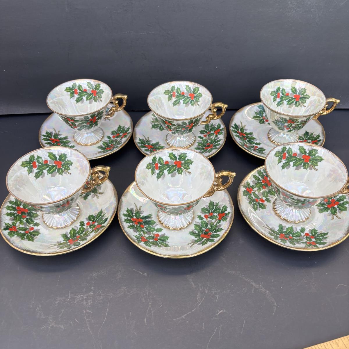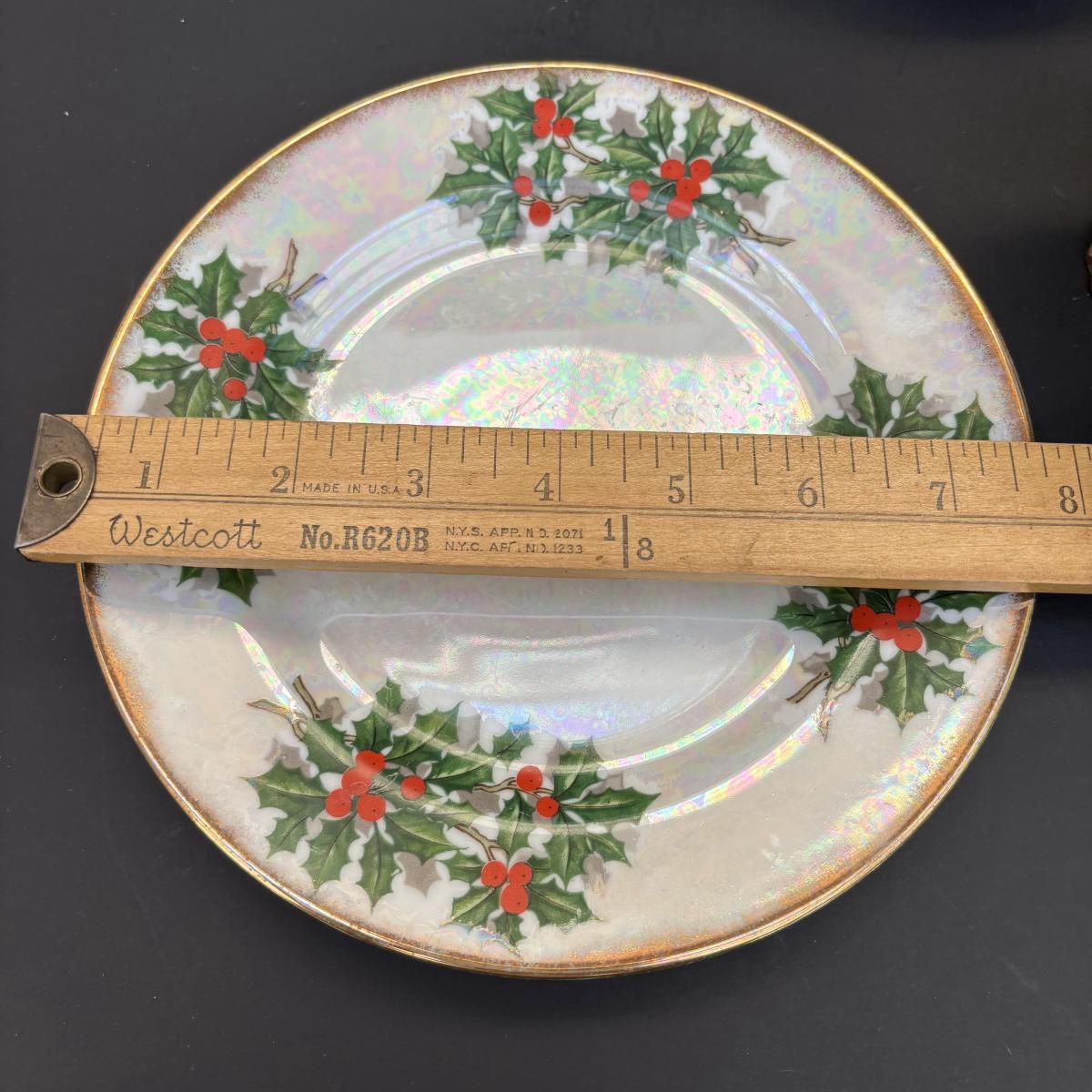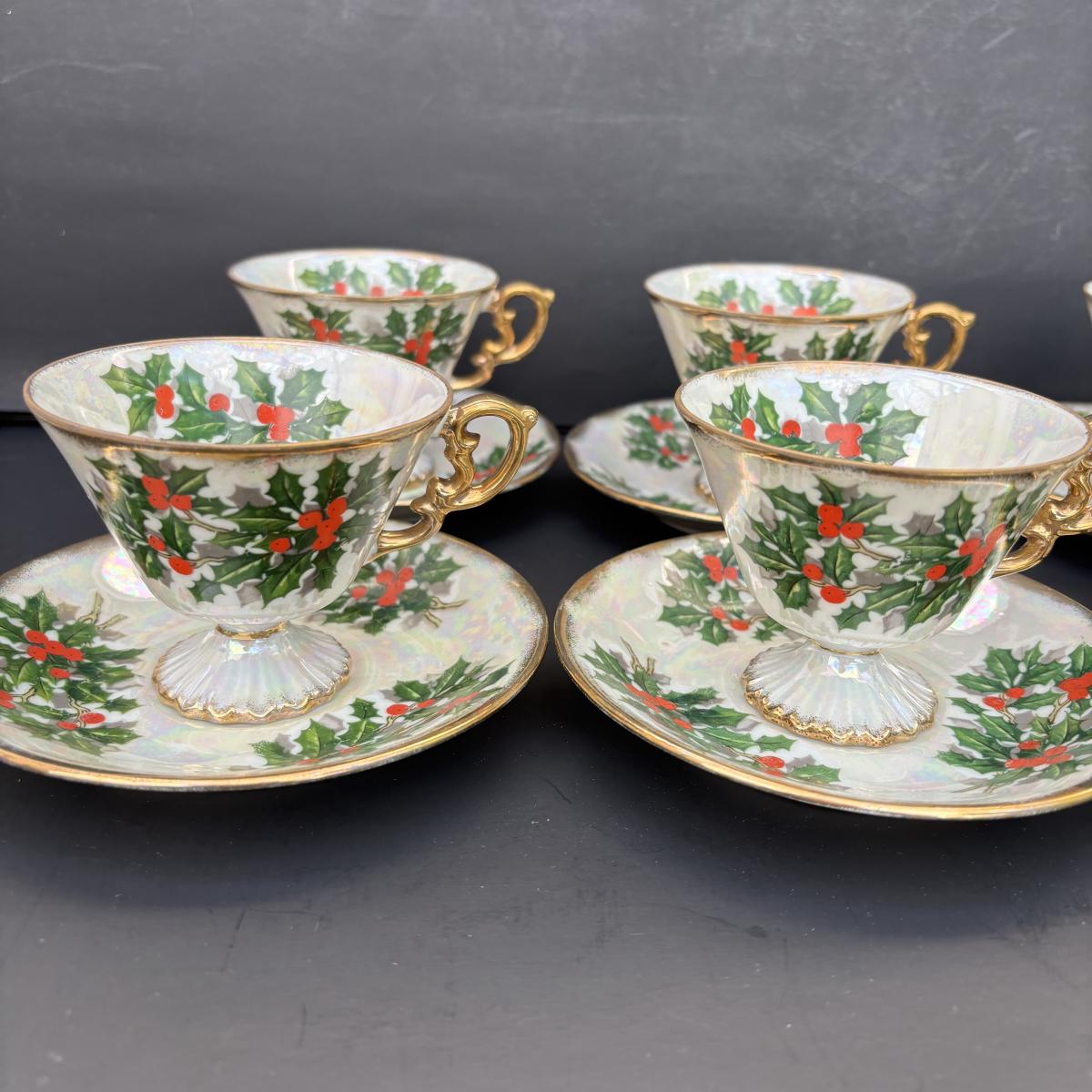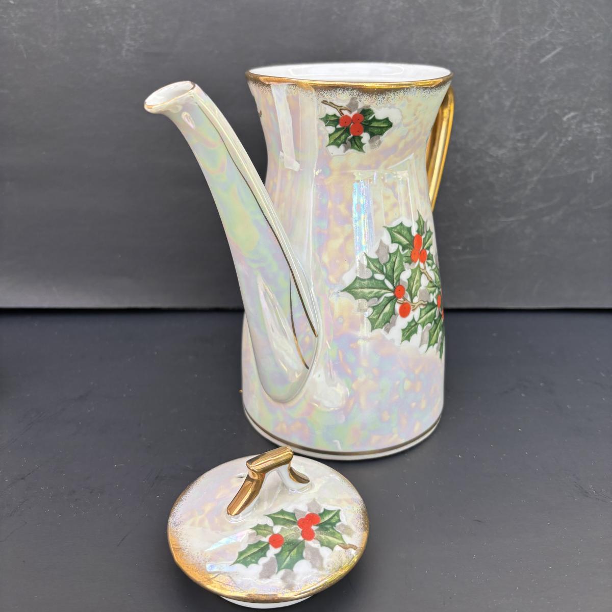 LOT 45: Vintage Ucagco Japan Holly and Berries Lusterware Christmas: Tea Pot, Teacups & More