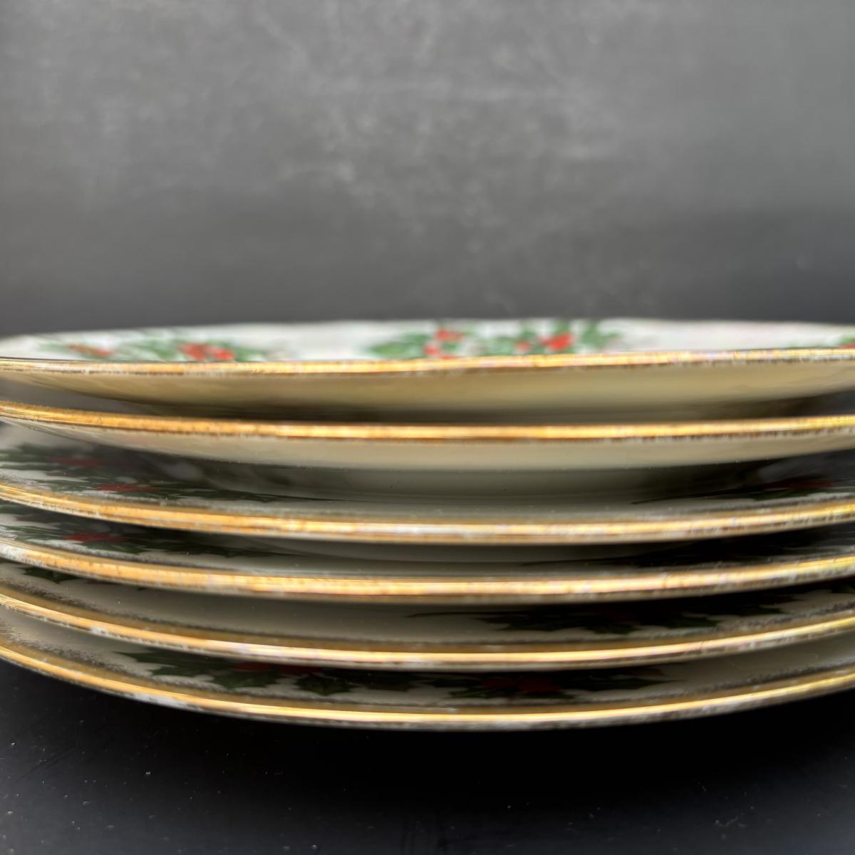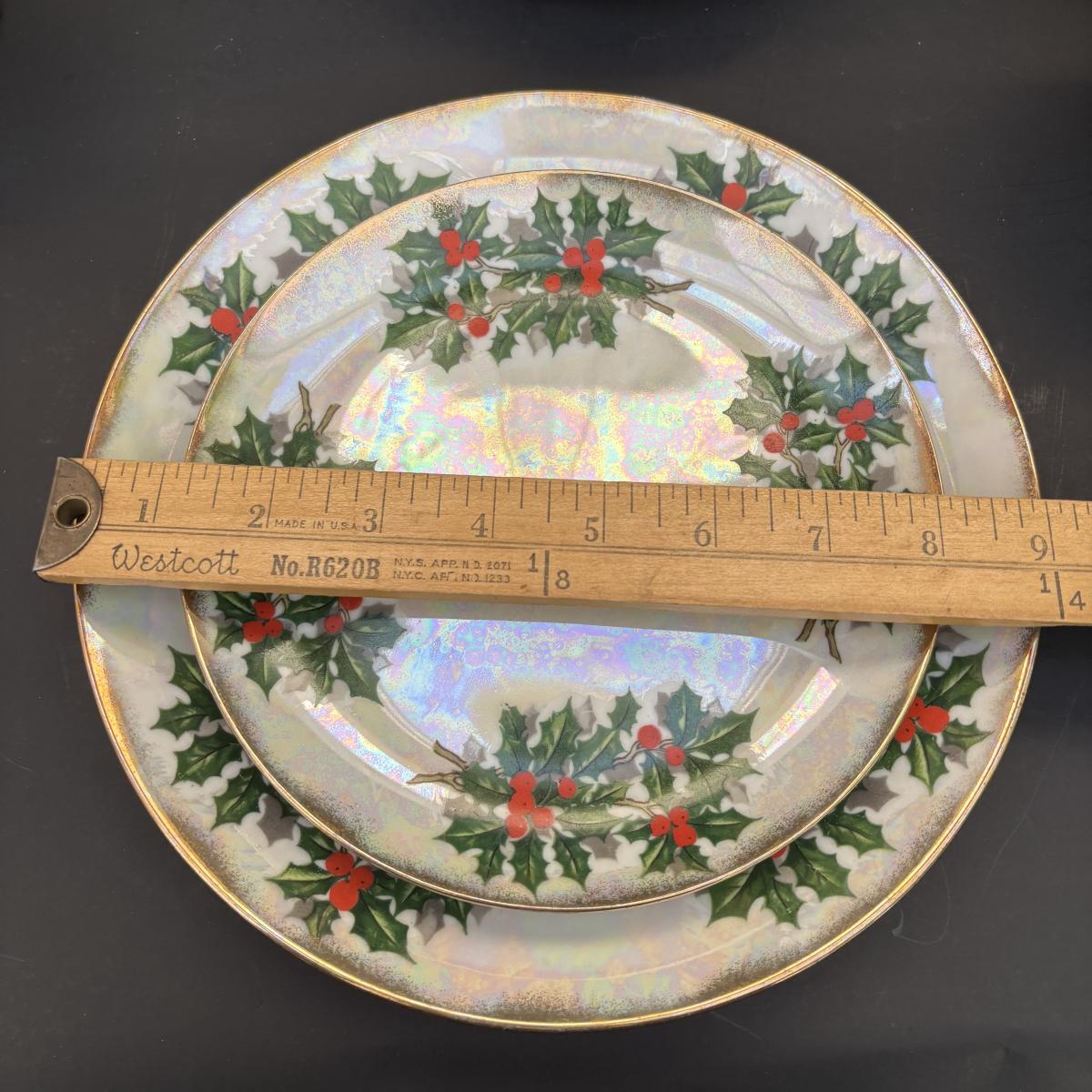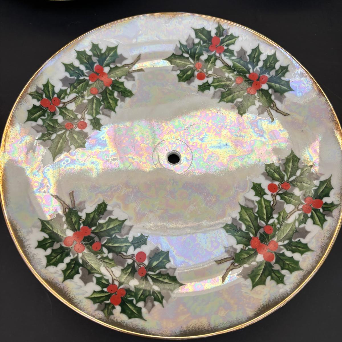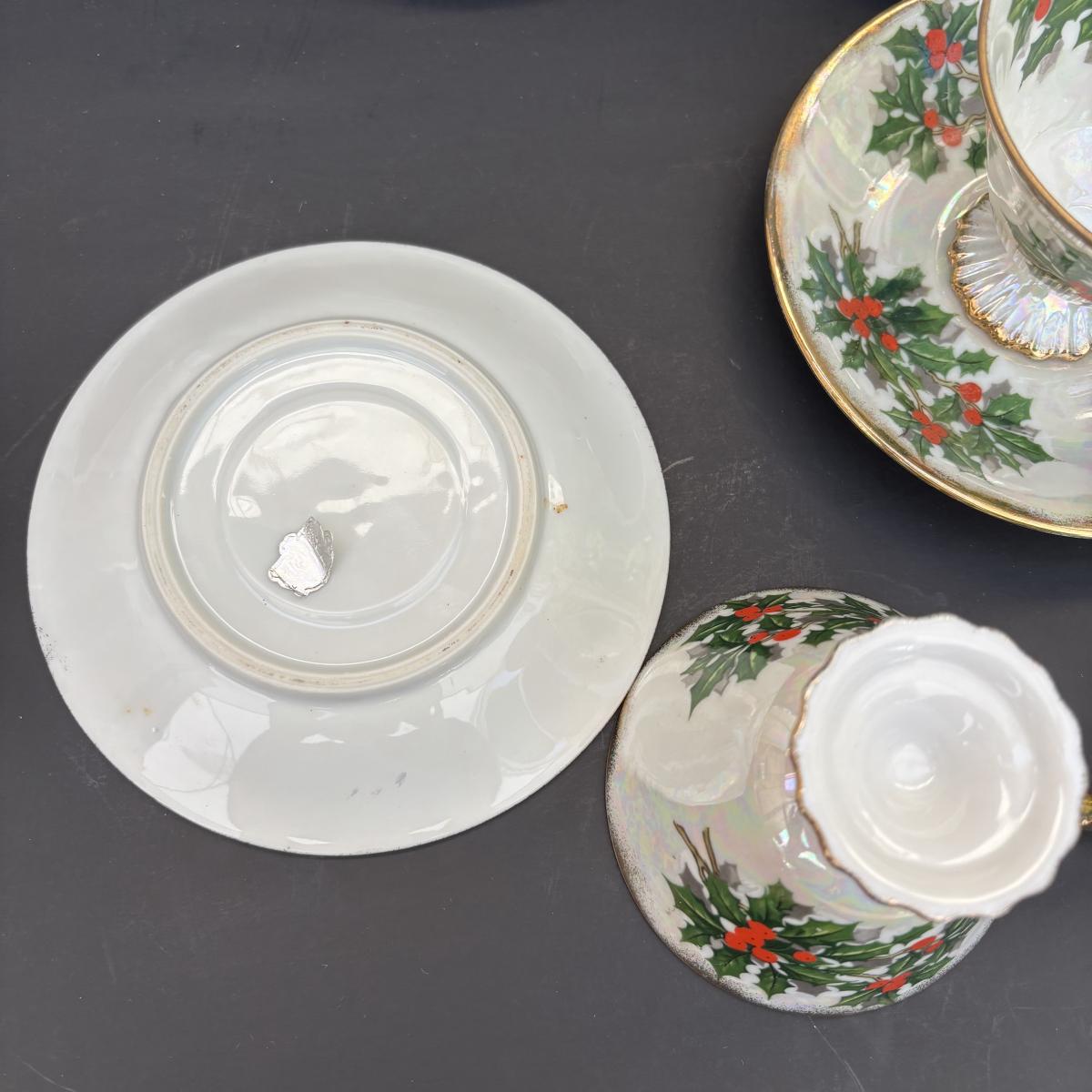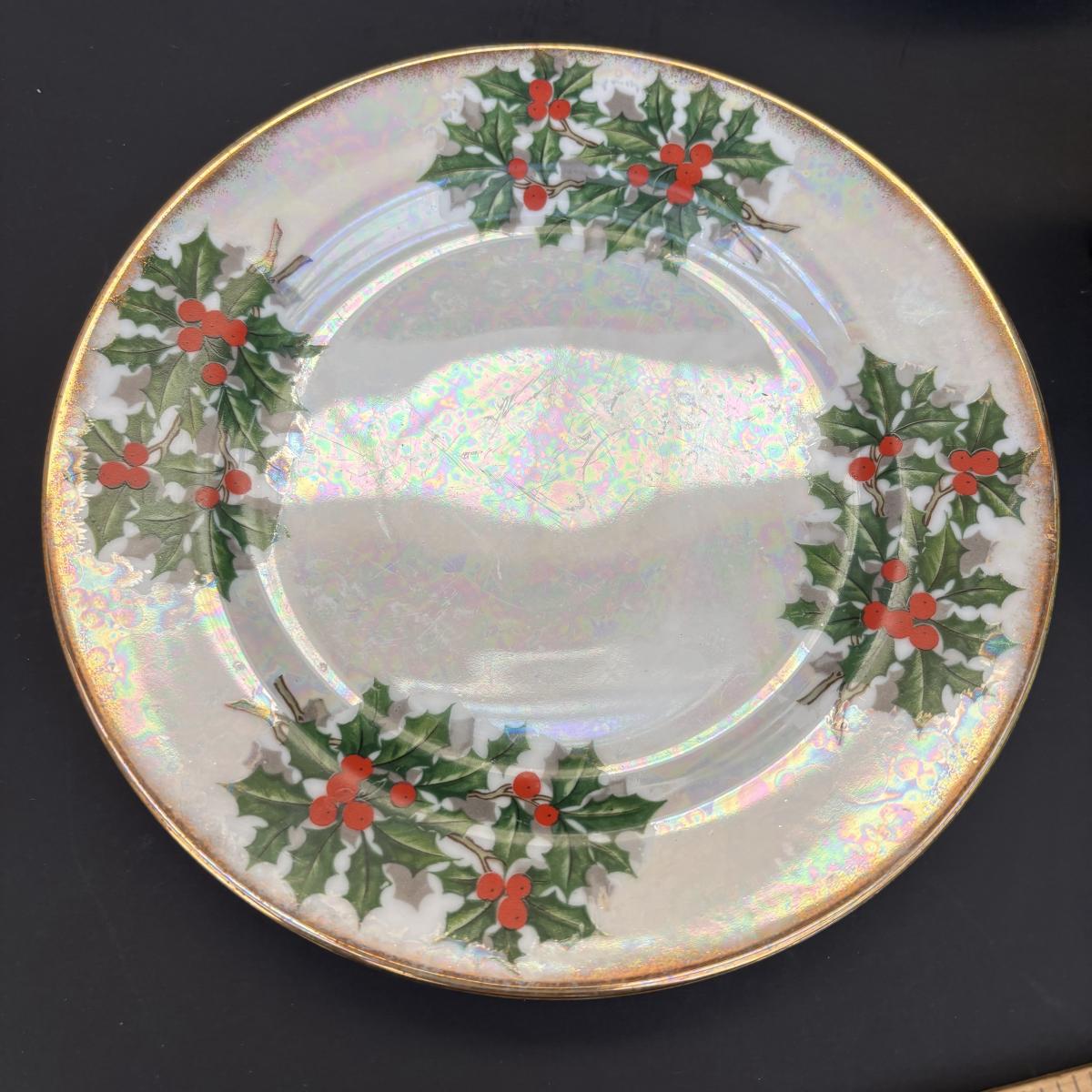 LOT 45: Vintage Ucagco Japan Holly and Berries Lusterware Christmas: Tea Pot, Teacups & More