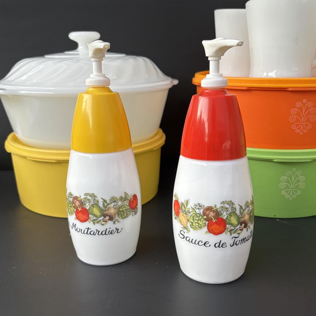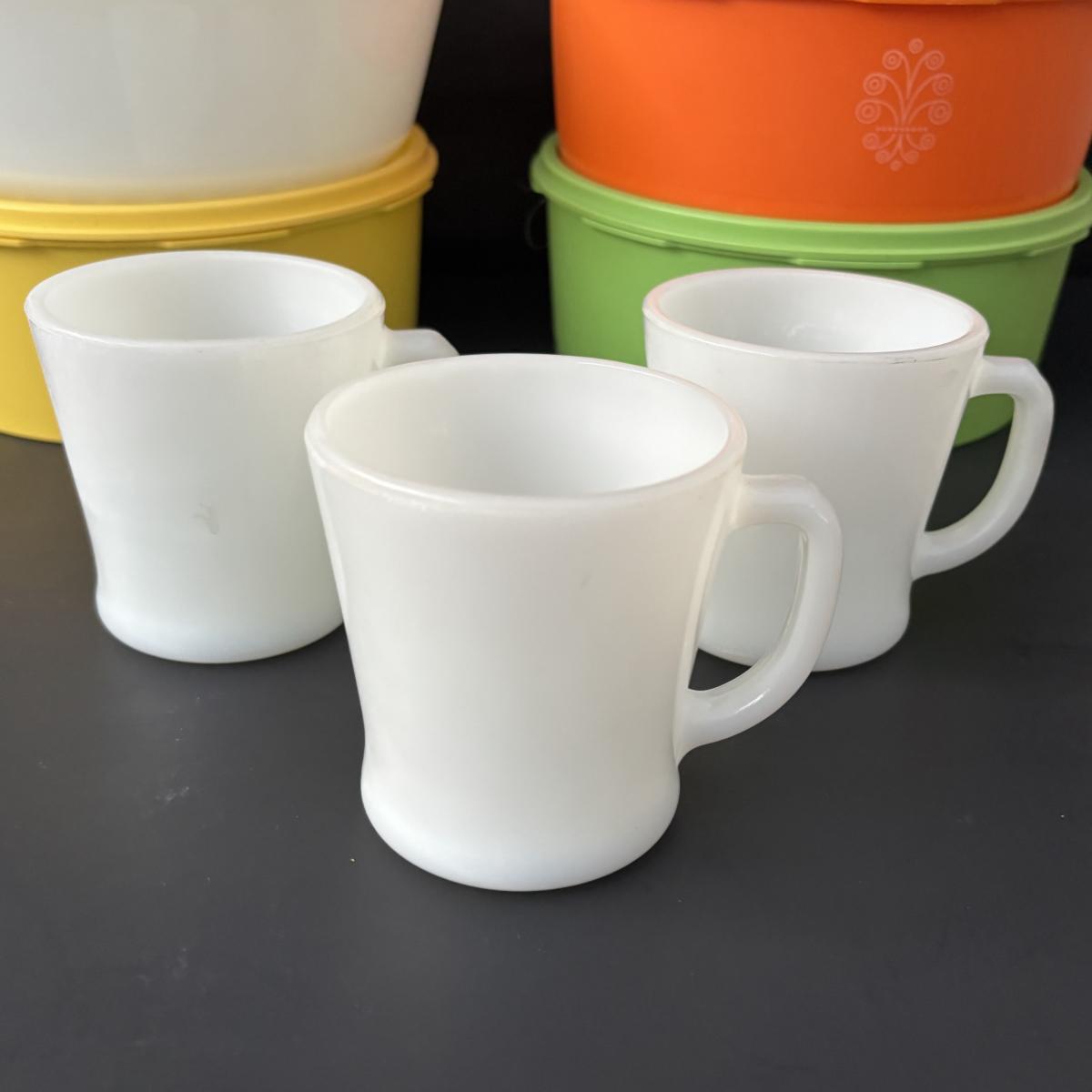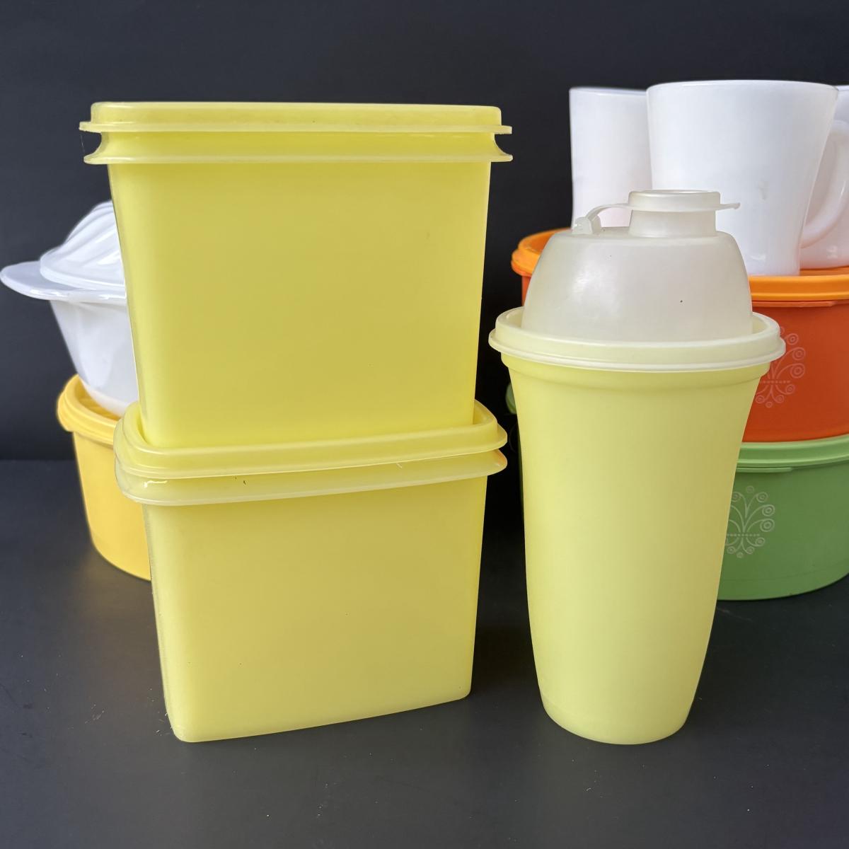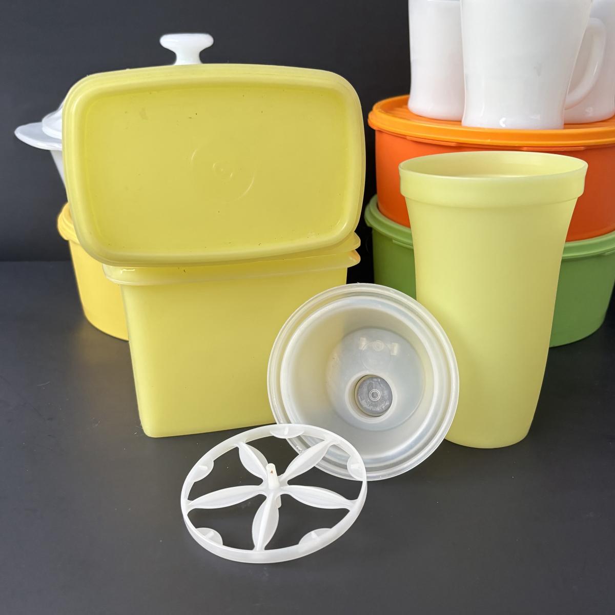LOT 50: Vintage Kitchen: Pyrex, Anchor Hocking Fire King, Corning Ware Spice of Life, Tupperware, Juice Glasses