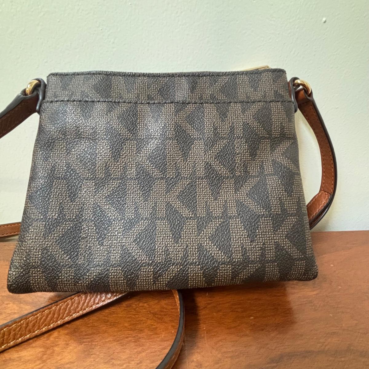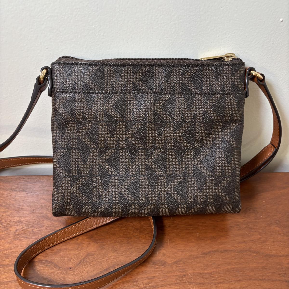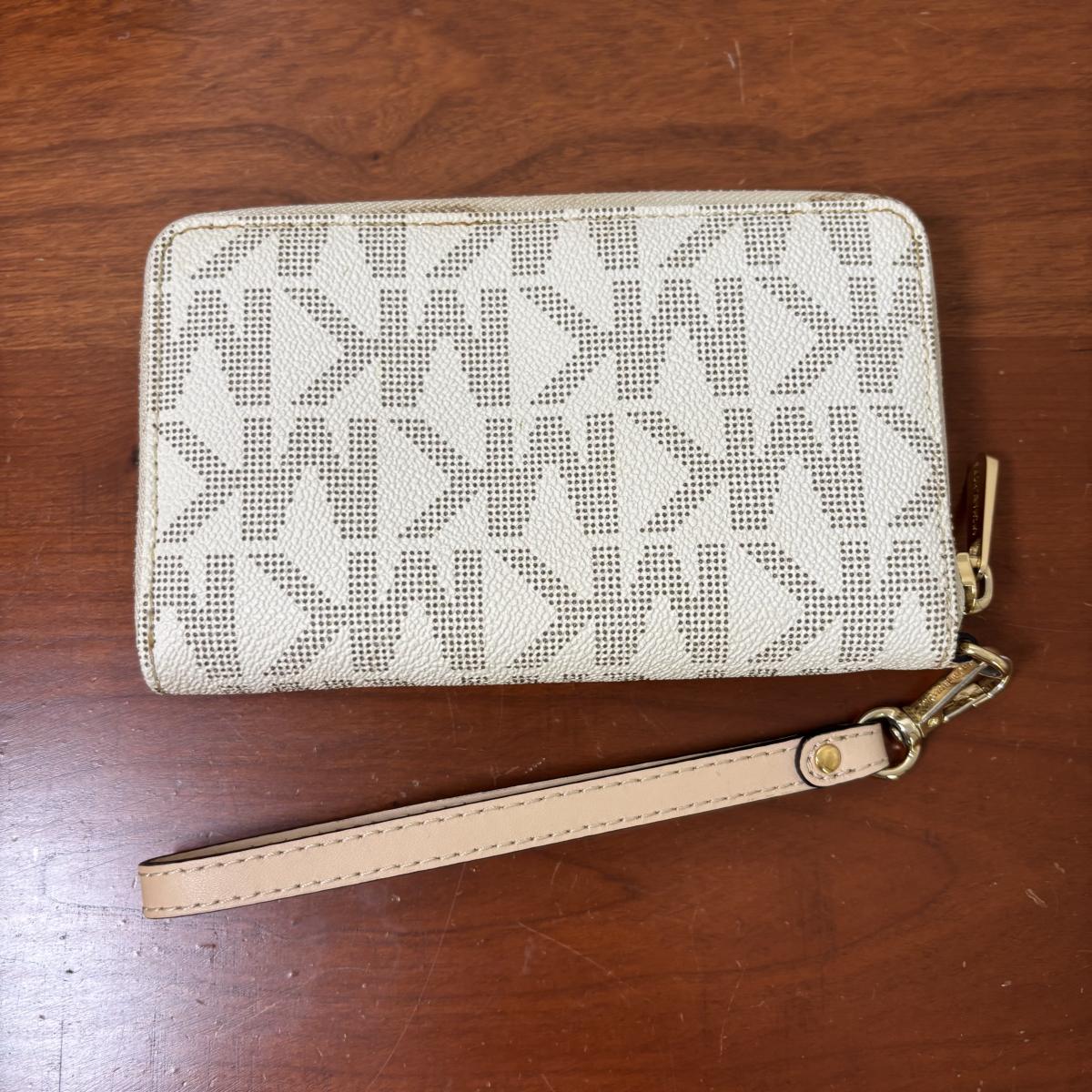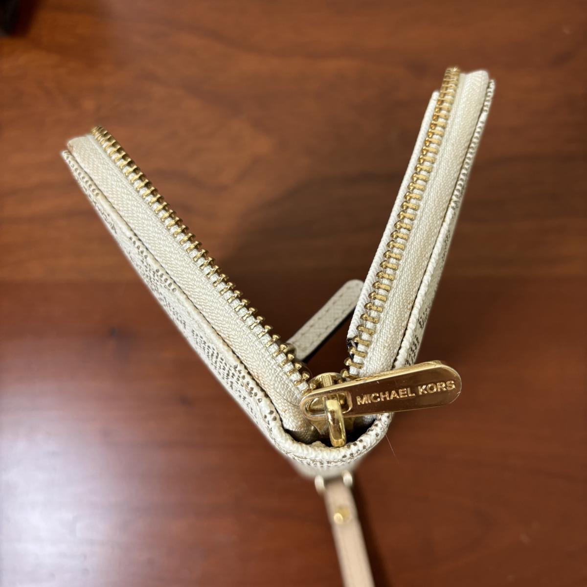 LOT 61: Michael Kors Jet Set Travel Medium Logo Crossbody Bag & Jet Set Continental Wallet in Vanilla Signature Print