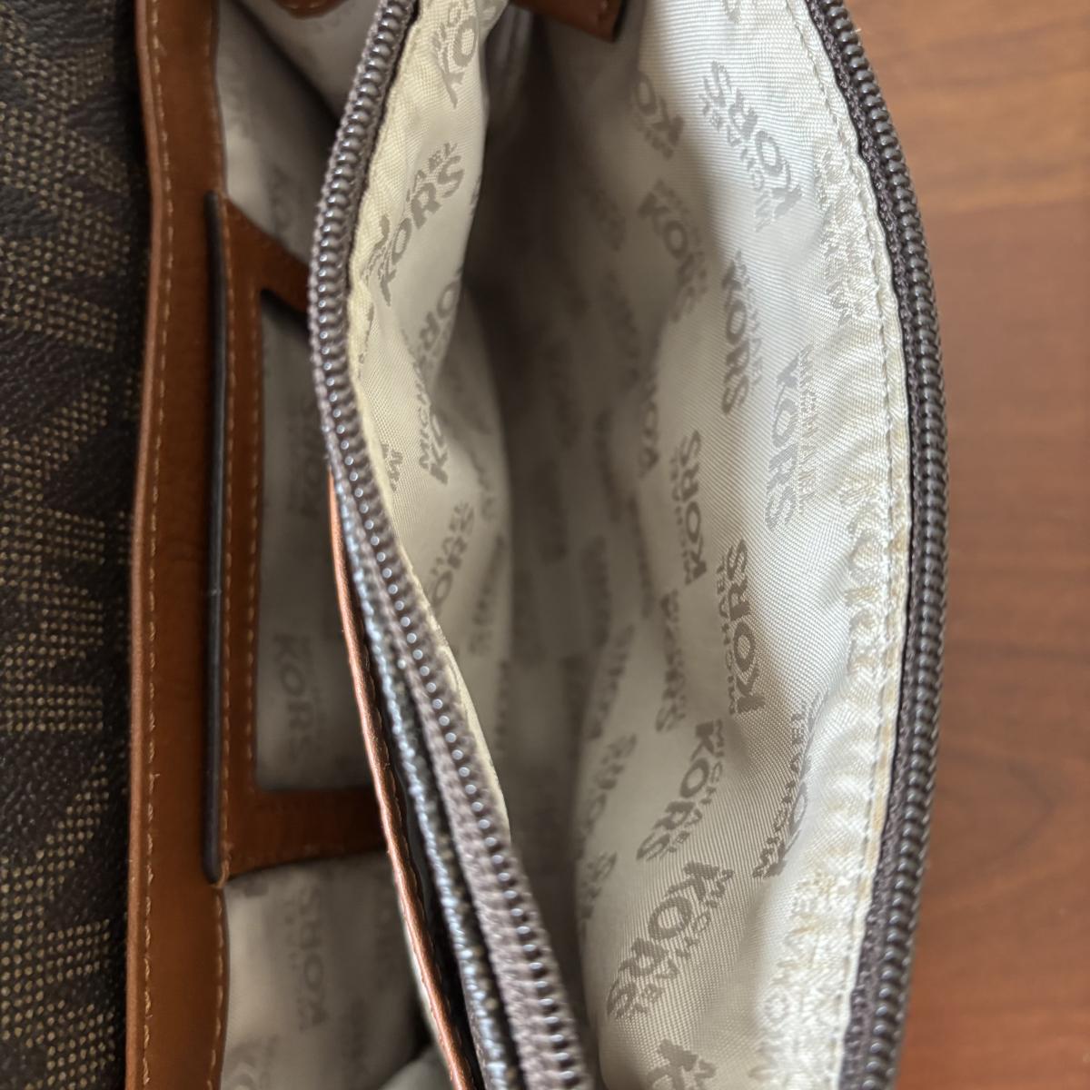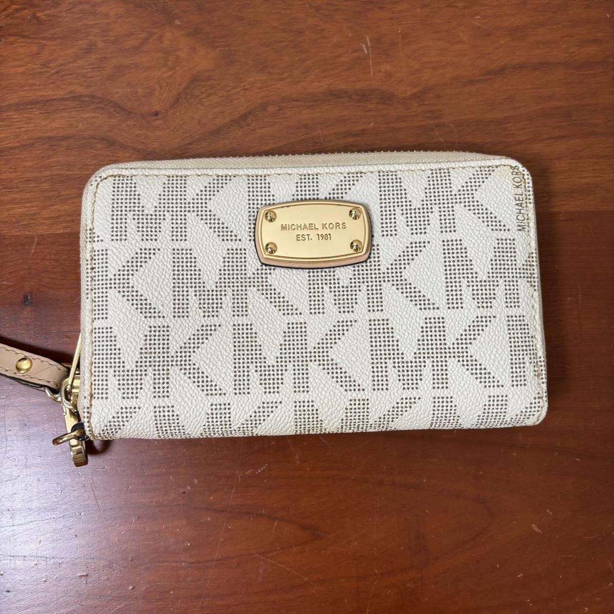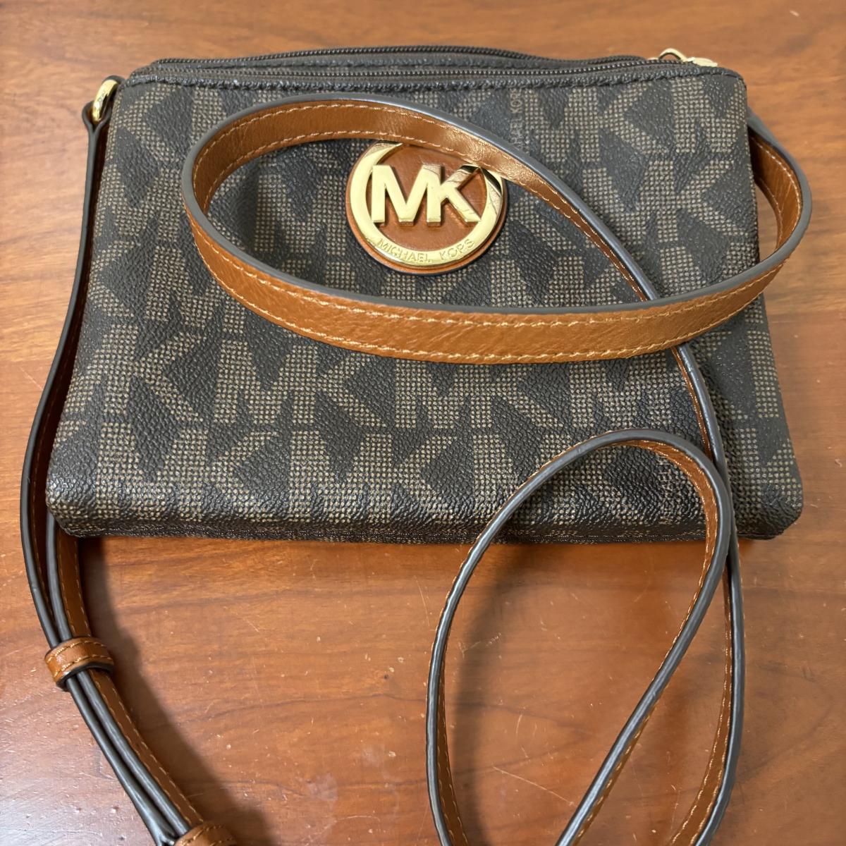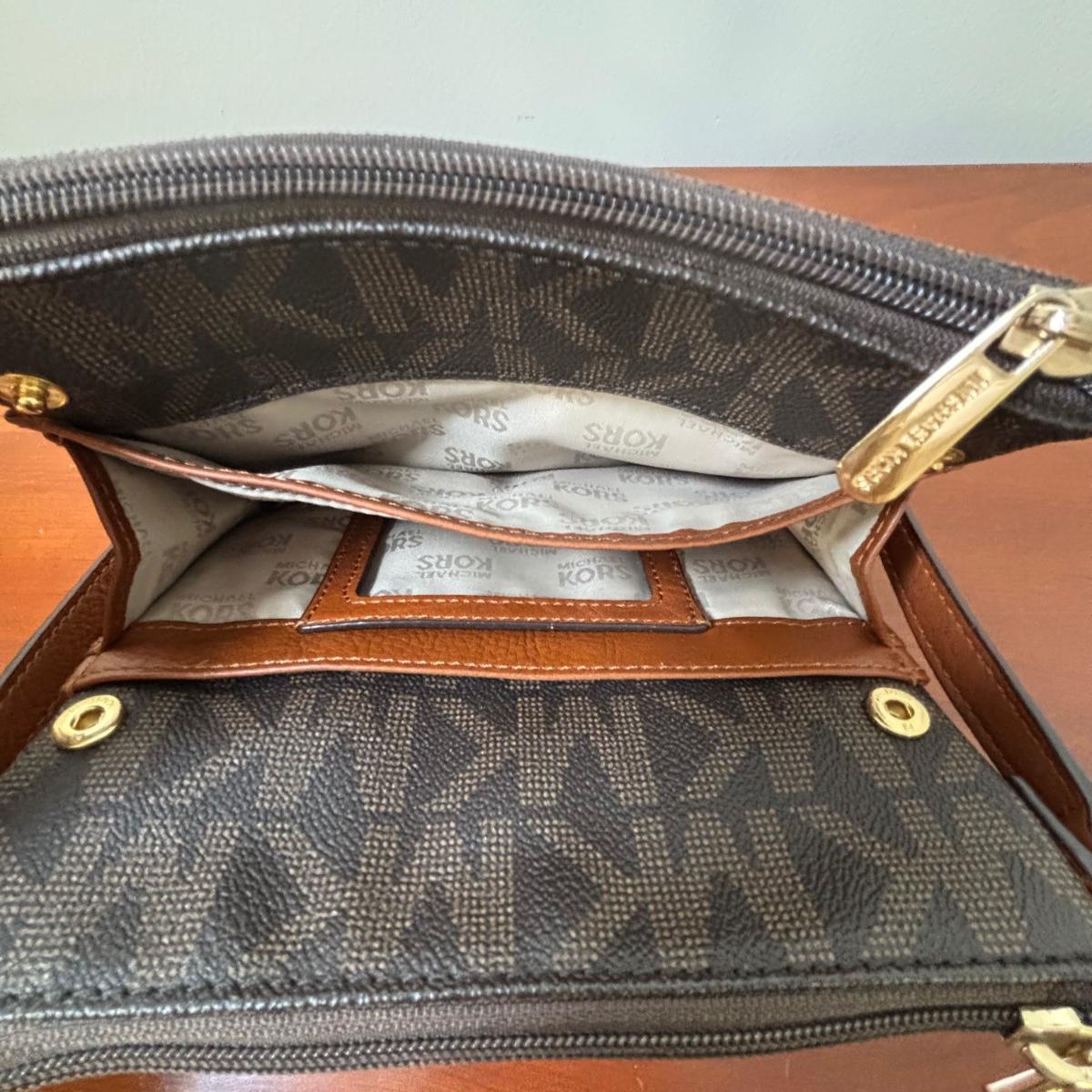 LOT 61: Michael Kors Jet Set Travel Medium Logo Crossbody Bag & Jet Set Continental Wallet in Vanilla Signature Print