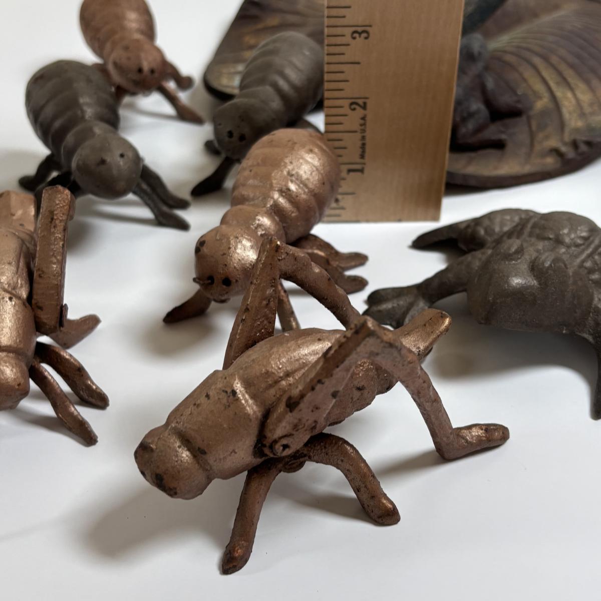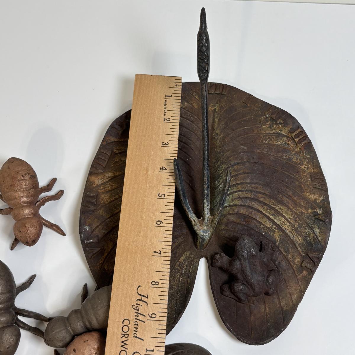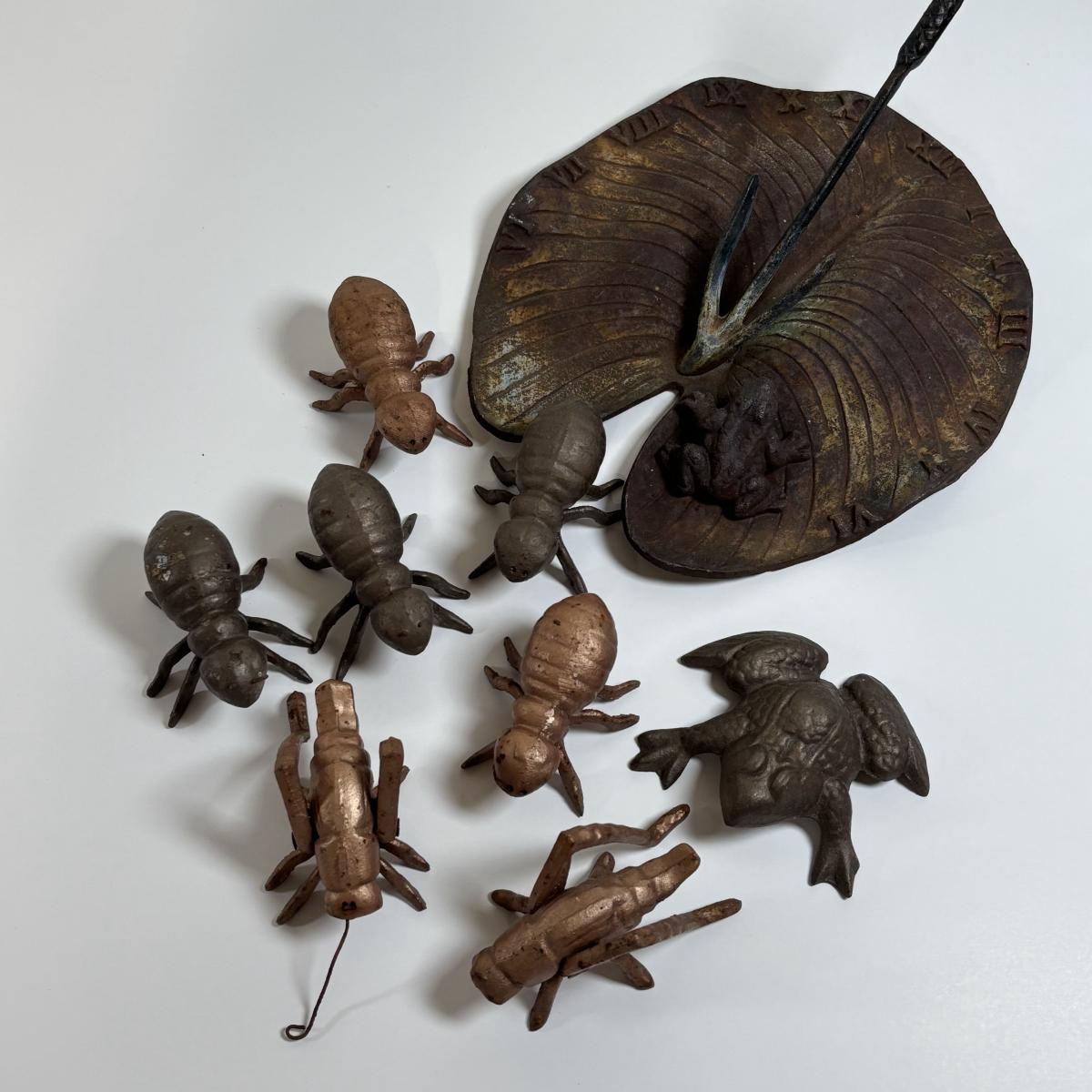 LOT 67: Cast Metal Ants, Frog, Grasshoppers & Lily Pad w/Frog Sundail