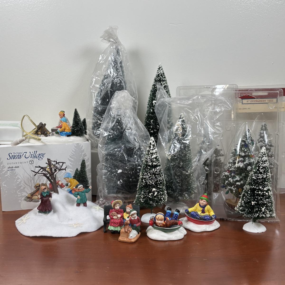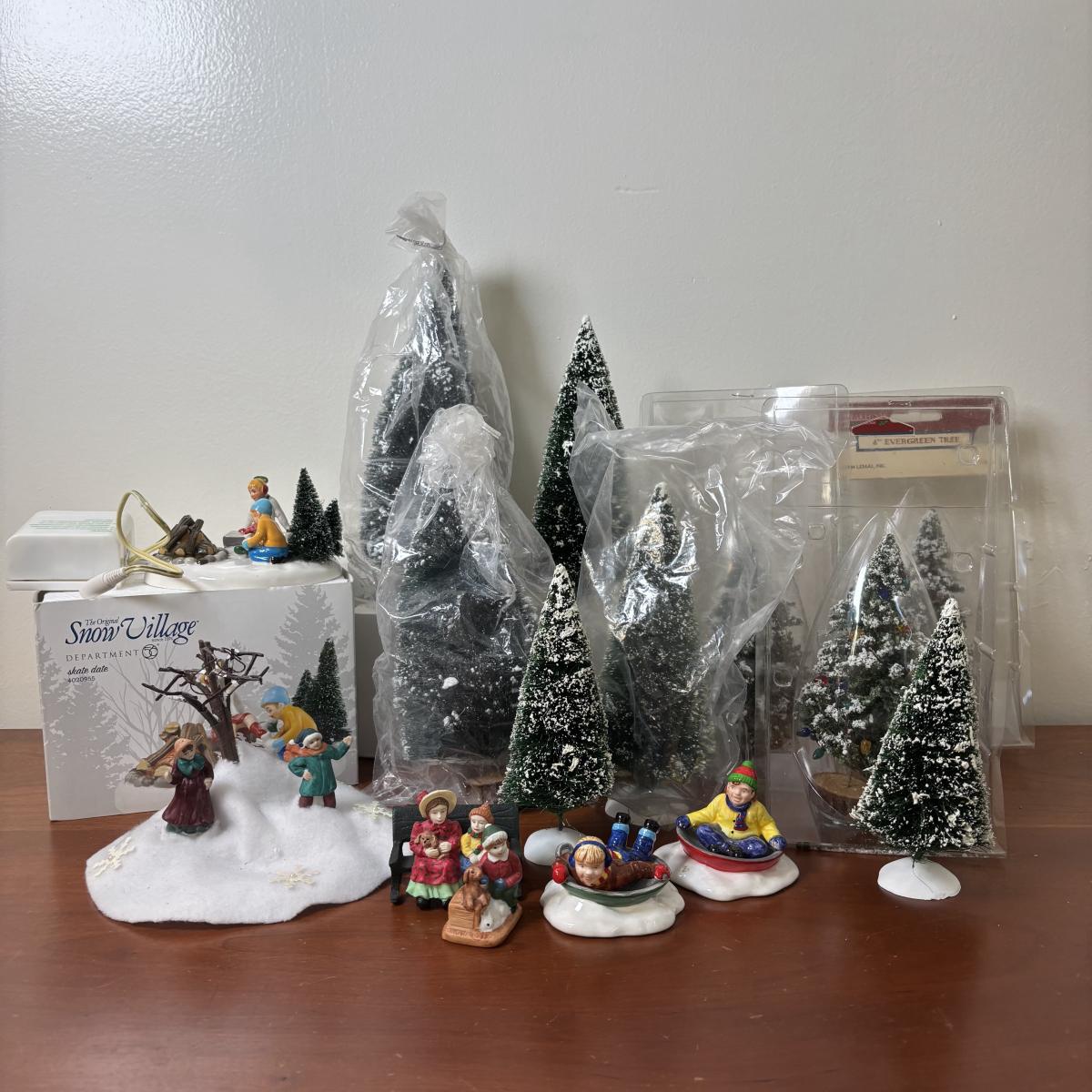 LOT 68: Dept 56 Skate Date, Round & Round We Go Accessories w/Trees, Lemax Trees & More