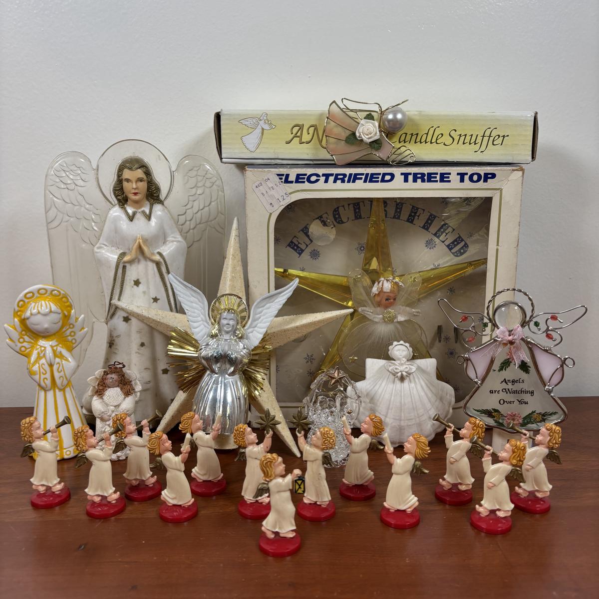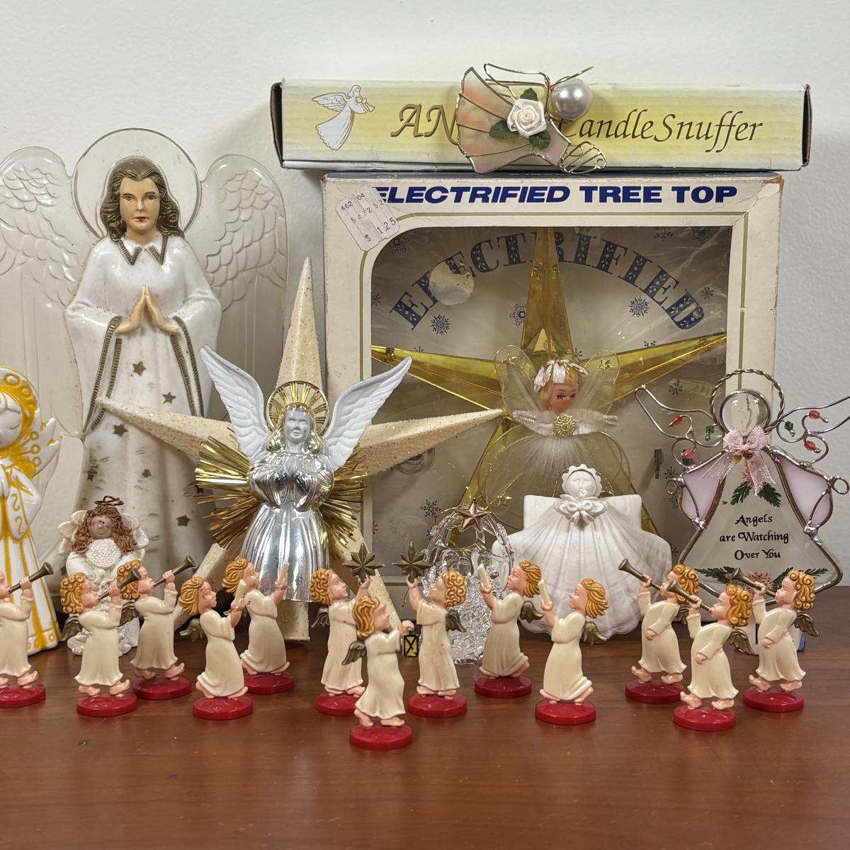 LOT 74: Vintage Angel Christmas& More: Germany Plastic Choir Figures (13), Angel Tree Toppers