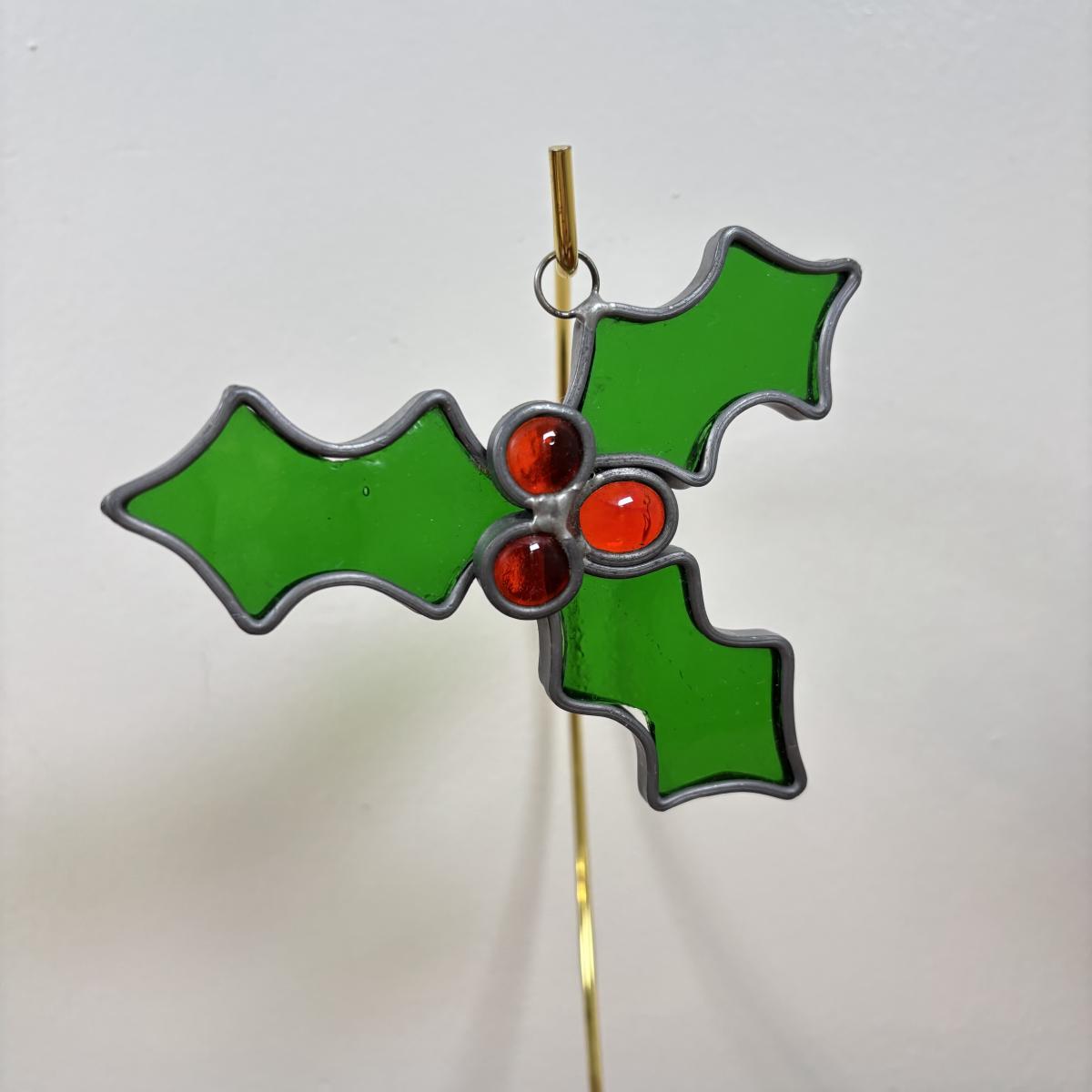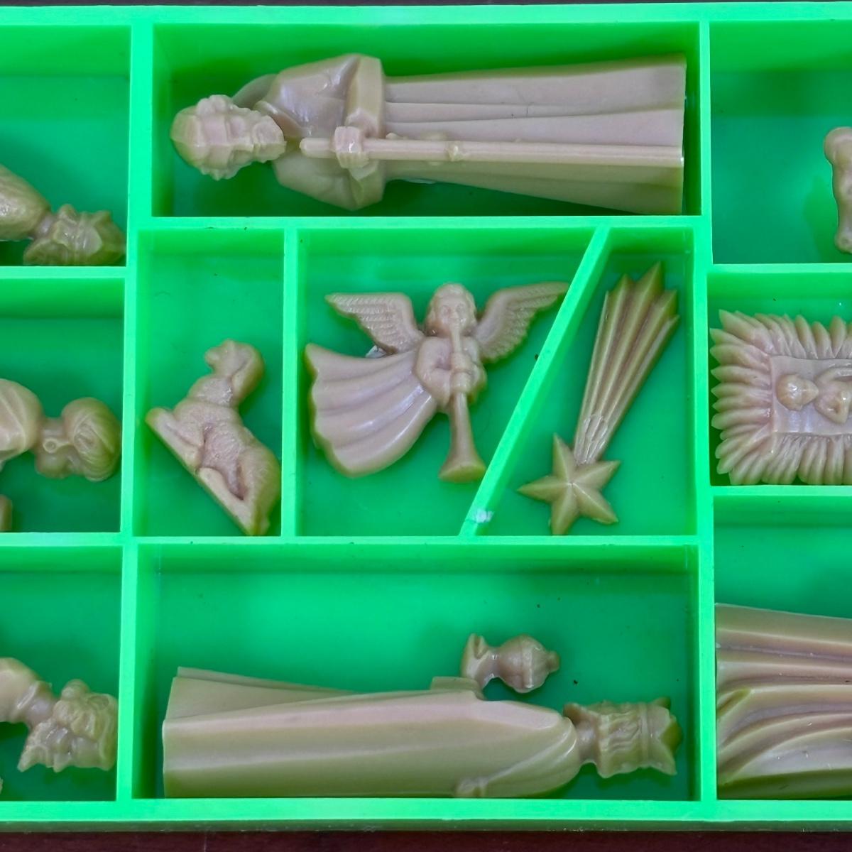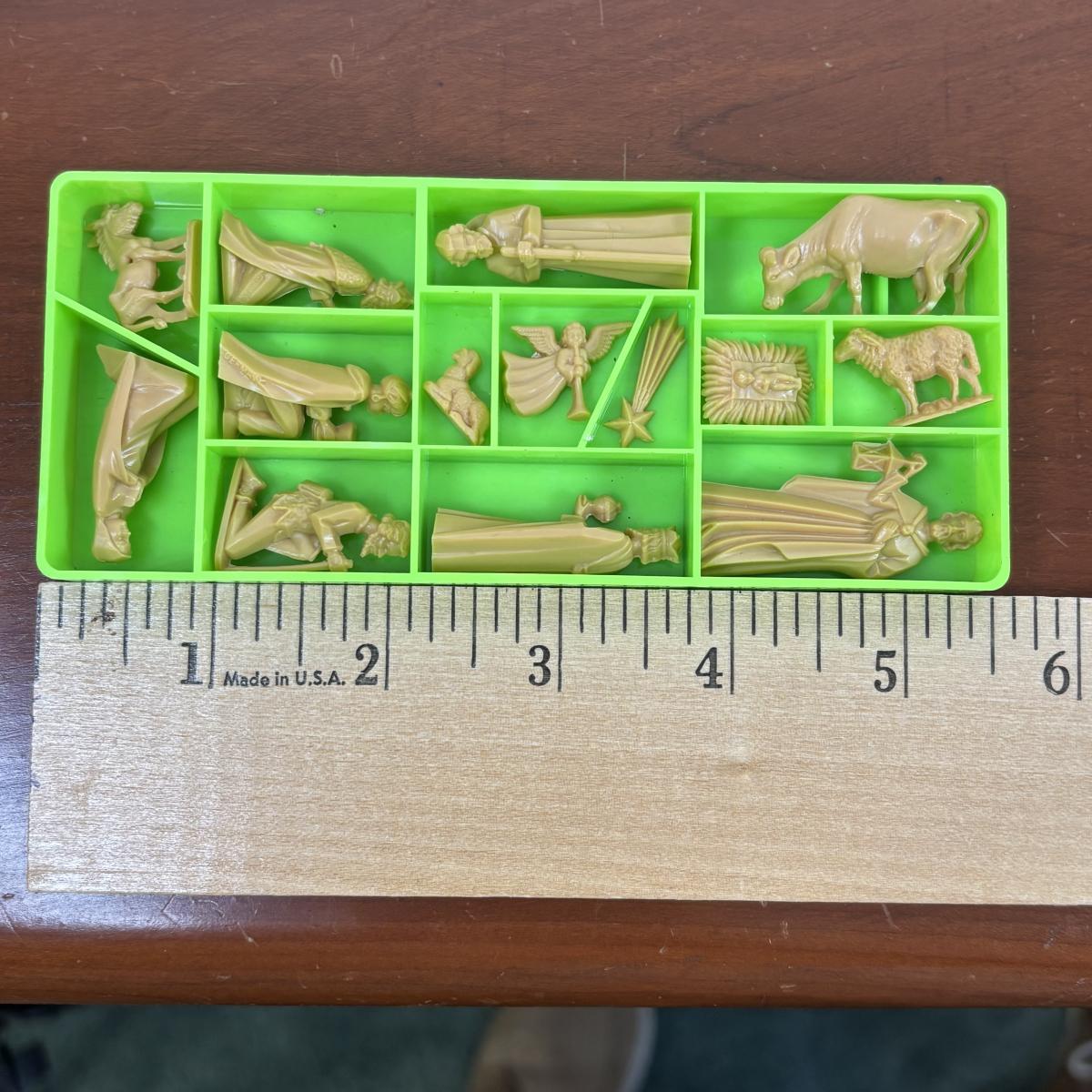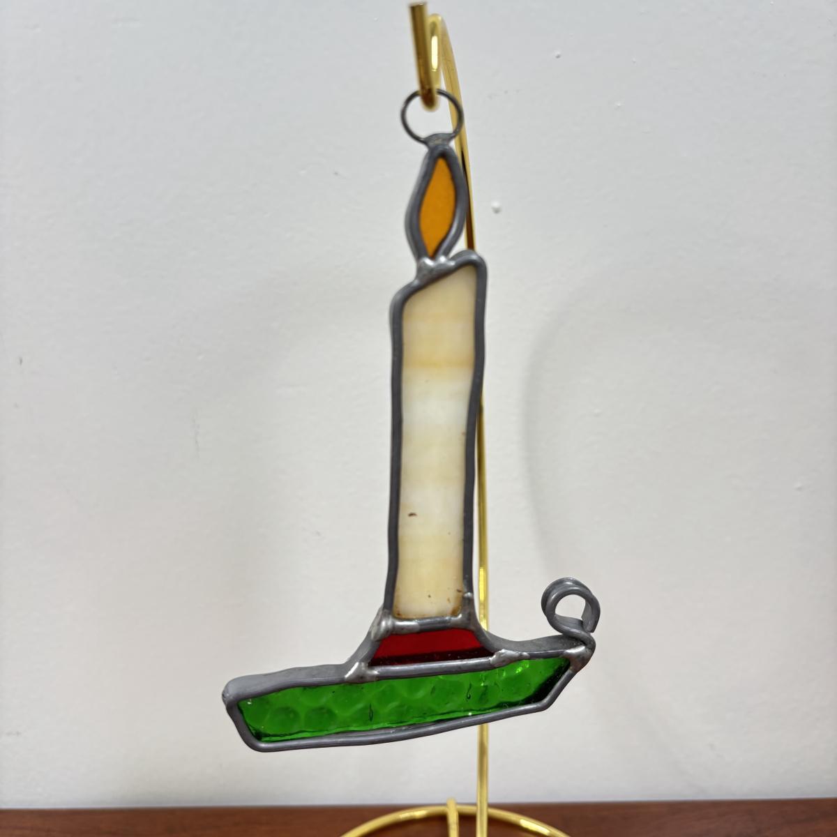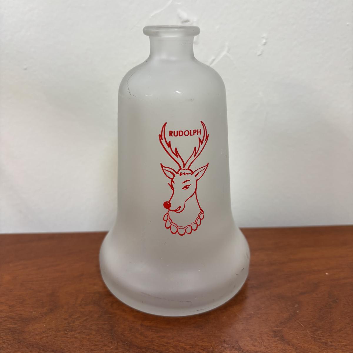 LOT 77: Stained Glass Rudolph, Holly Candle & Bell, Miniature Nativity Set, Wheaton Rudolph Bottle & More