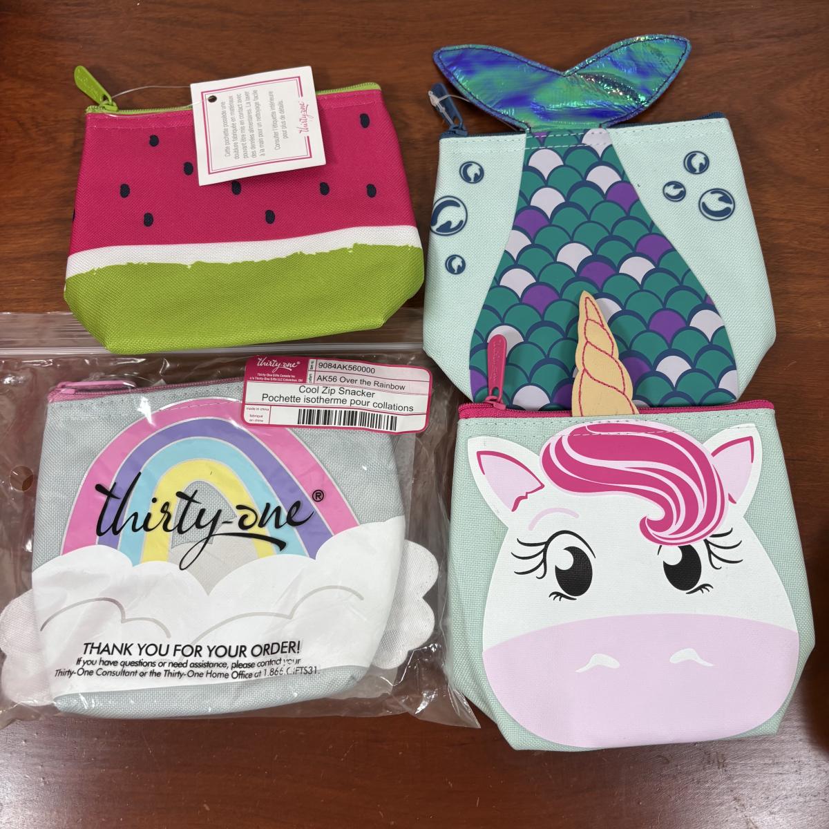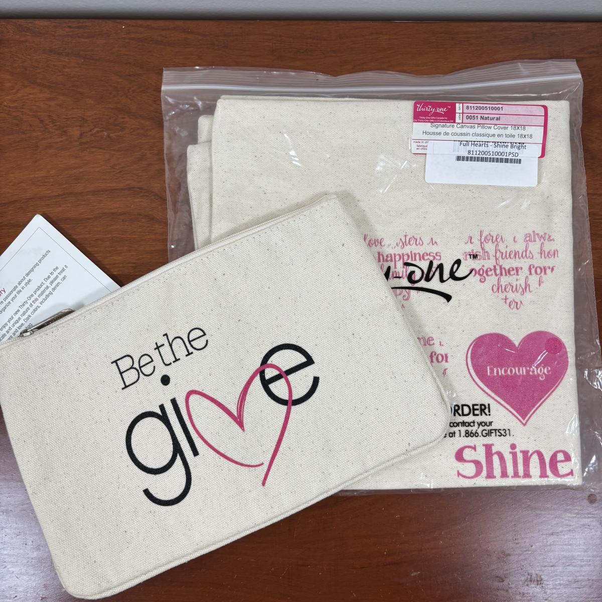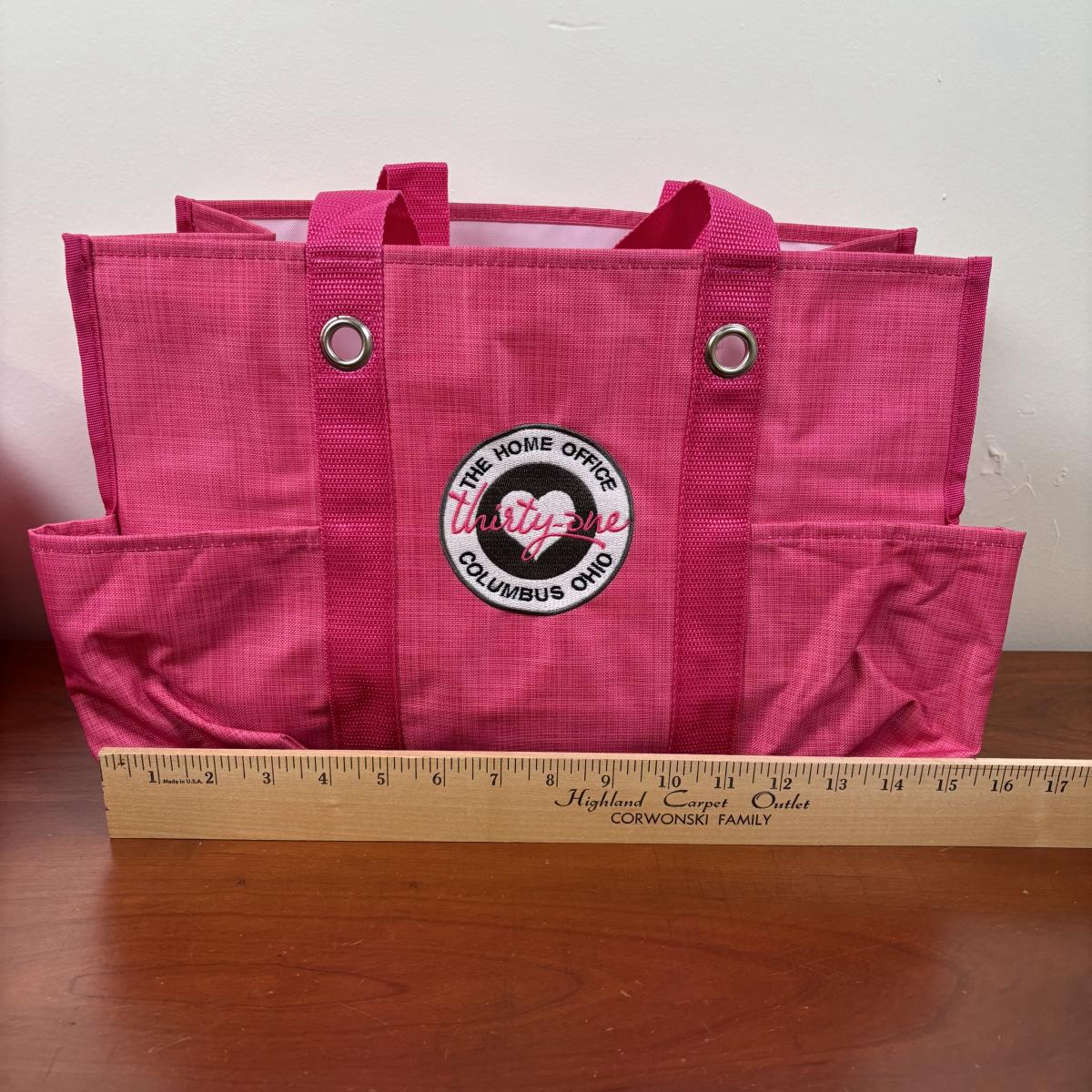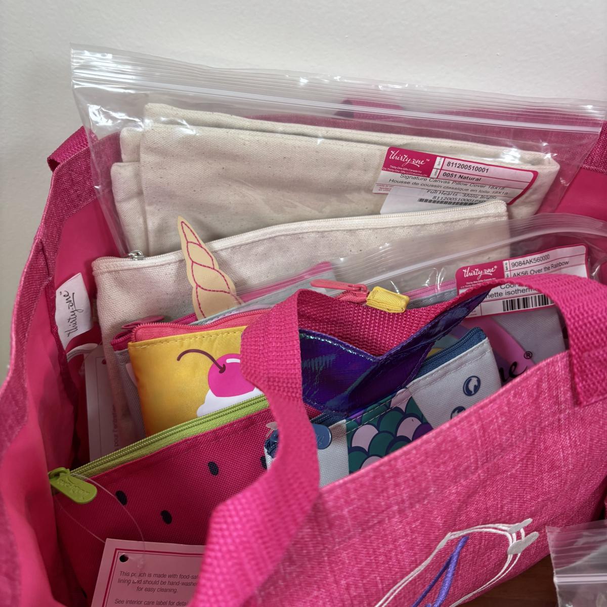 LOT 108: Thirty-One Monogrammed Utility Tote Bags, Cool Zip Snacker Bags & Signature Canvas Shine Bright Pillow Cover