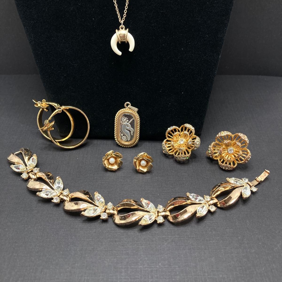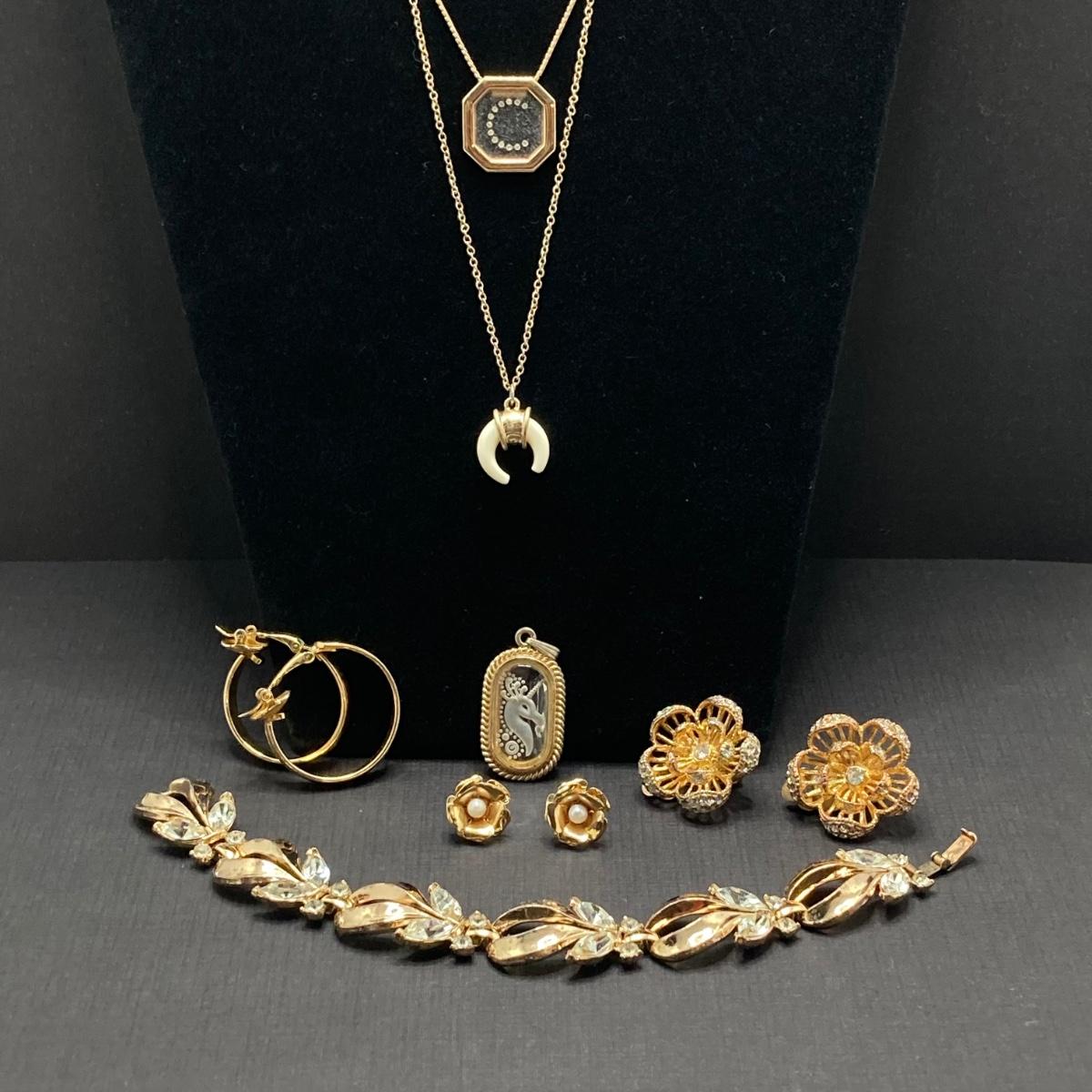 LOT 115: Vintage Gold Tone Jewelry - Trifari, Avon and More