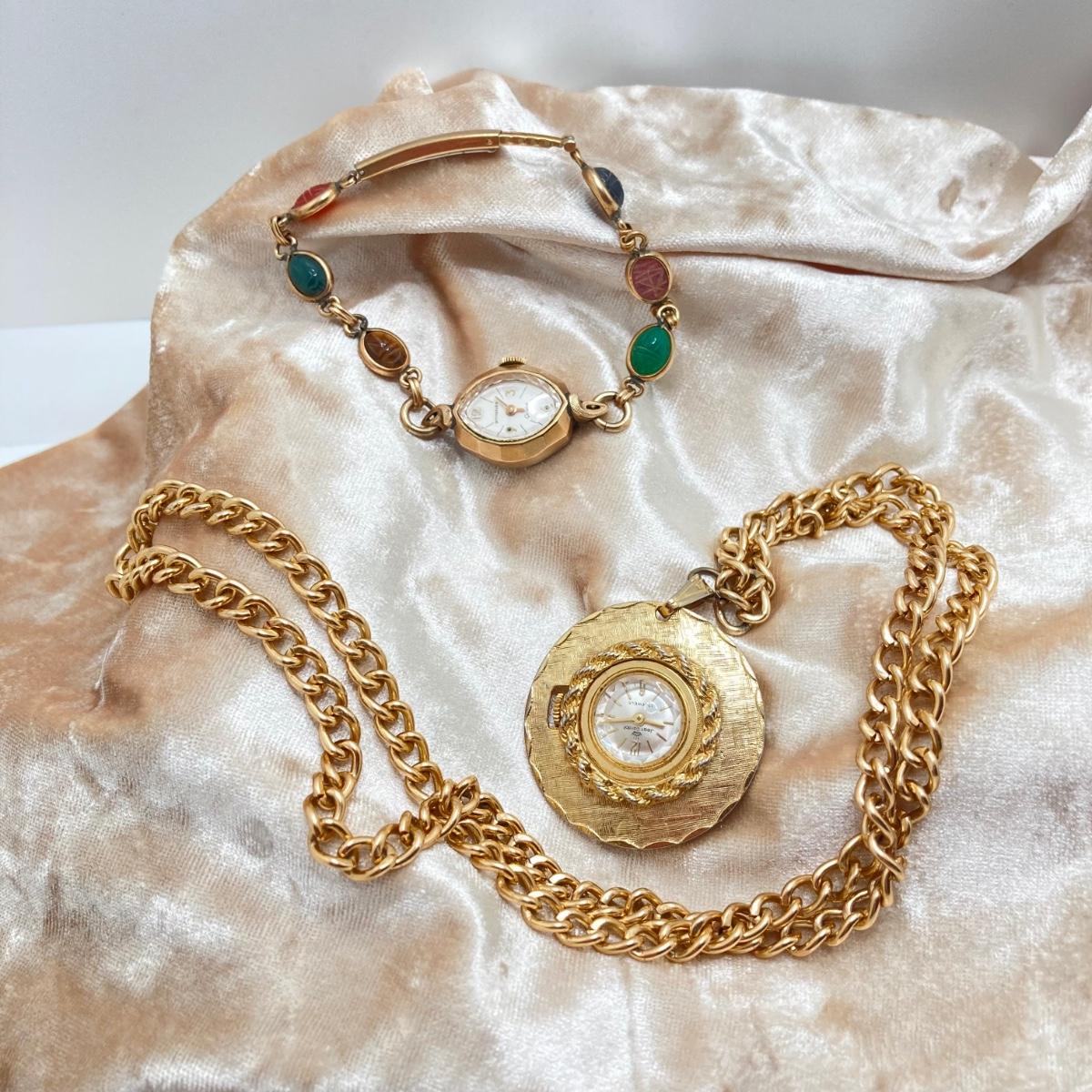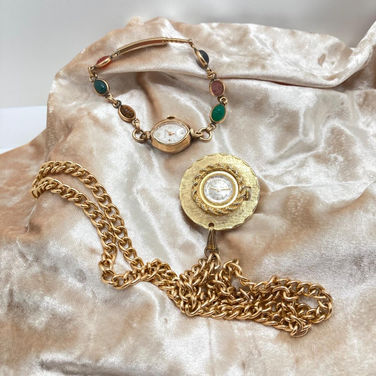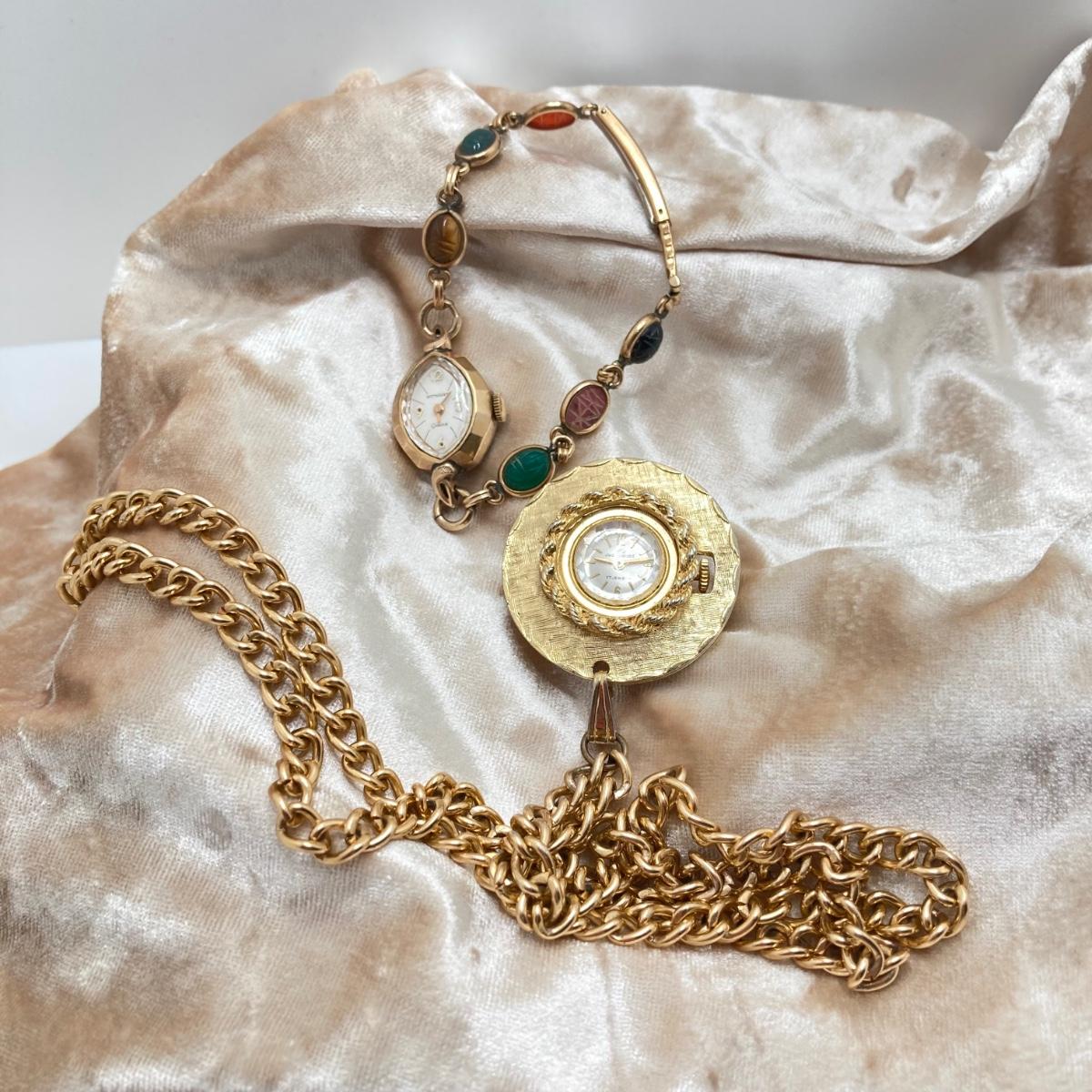 LOT 121: Wittnauer Scarab Band Swiss Watch and Jean Cardot Pendant Watch