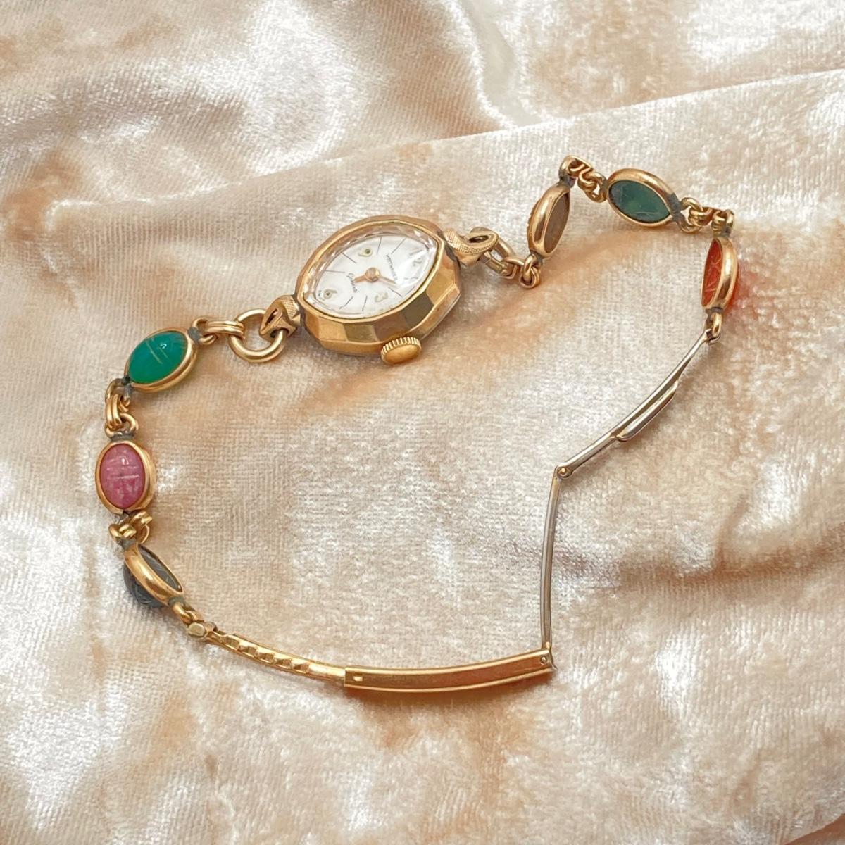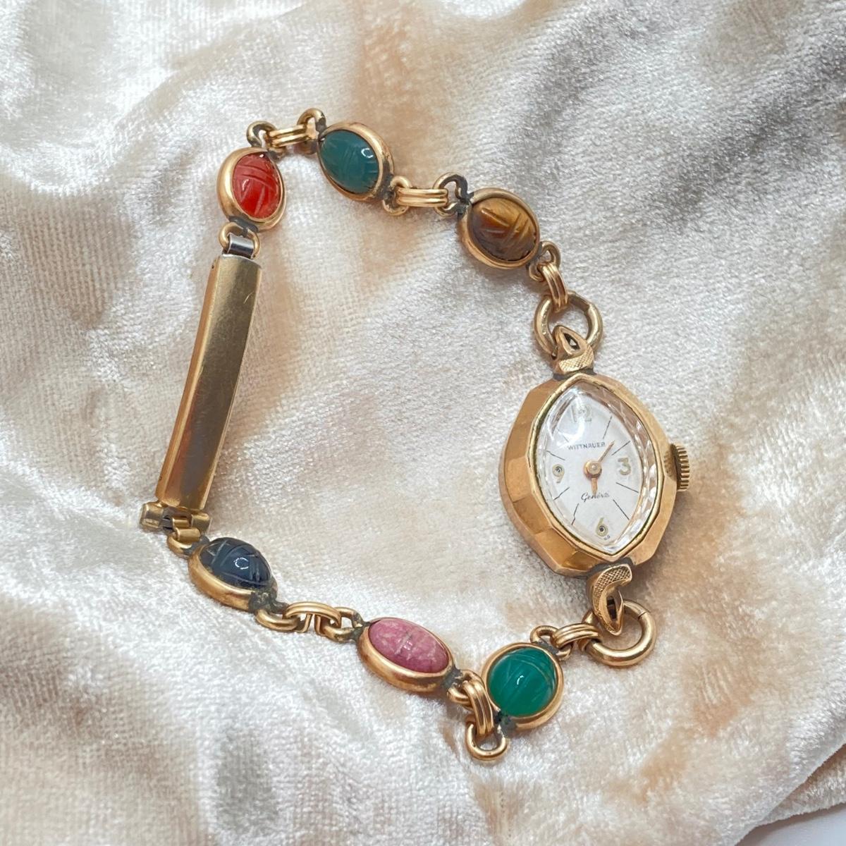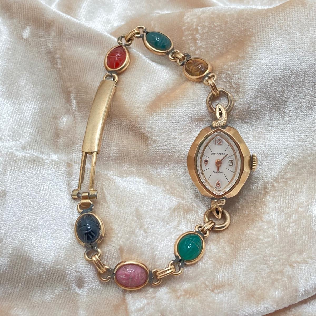LOT 121: Wittnauer Scarab Band Swiss Watch and Jean Cardot Pendant Watch
