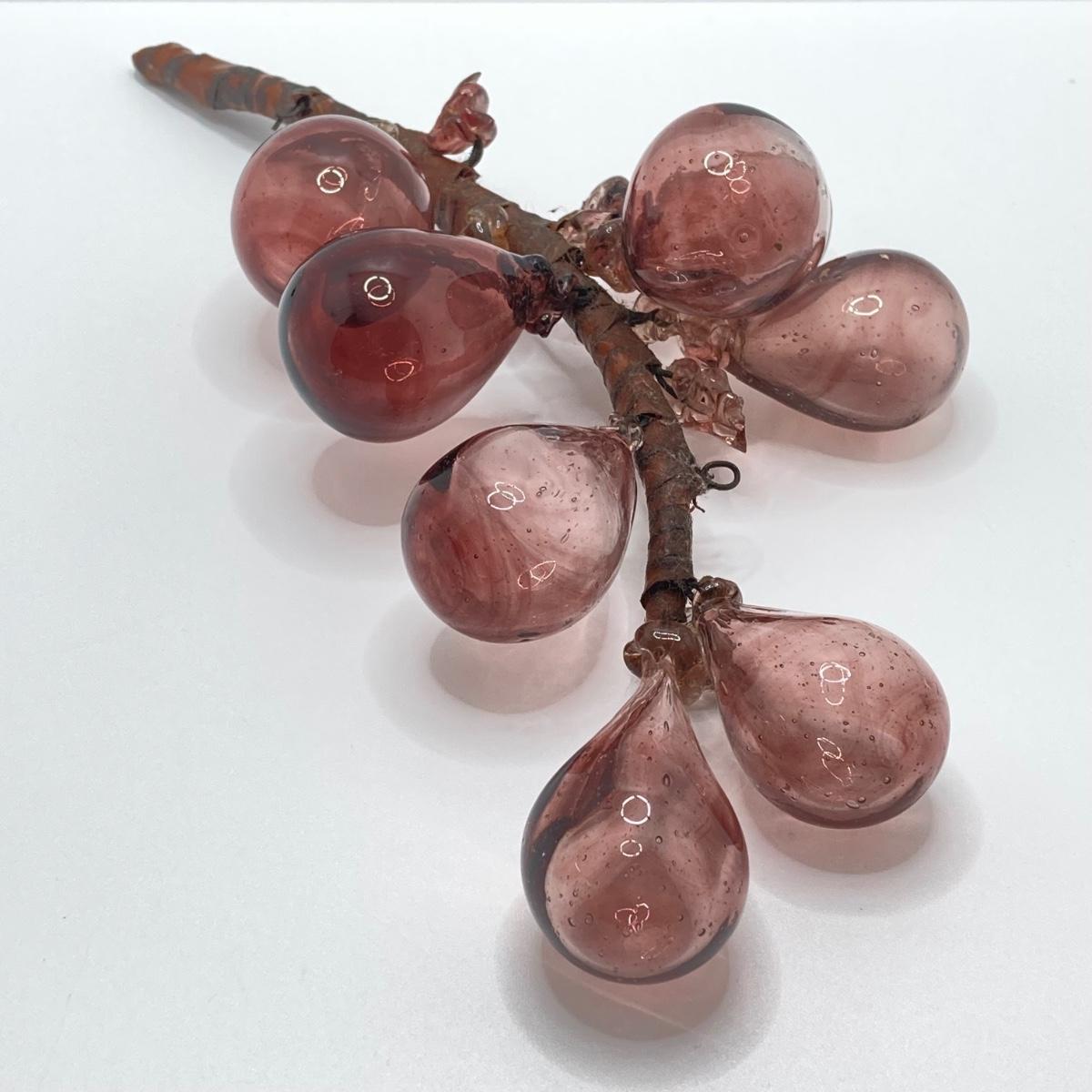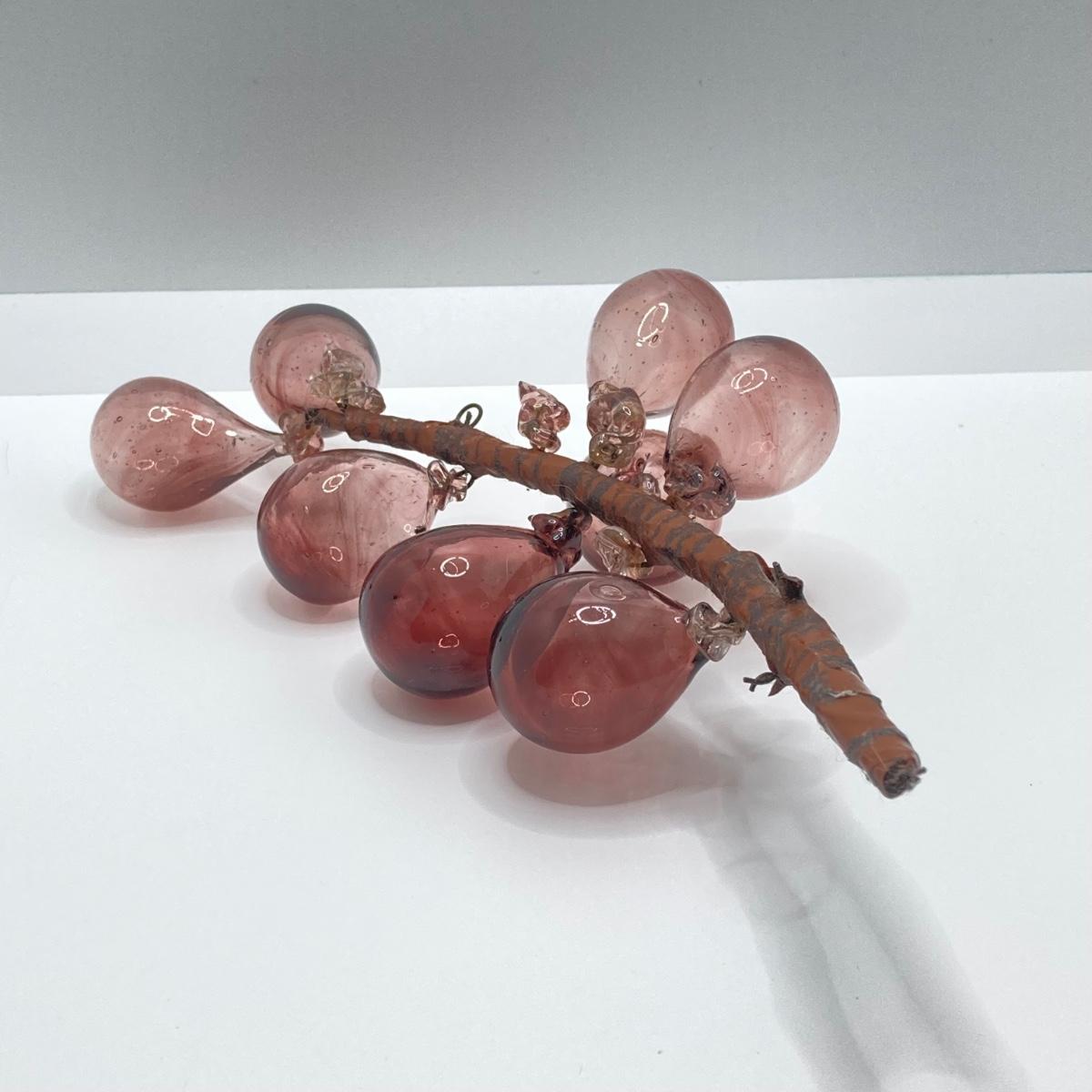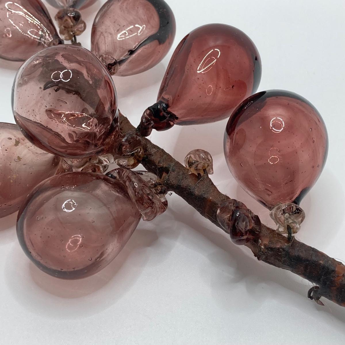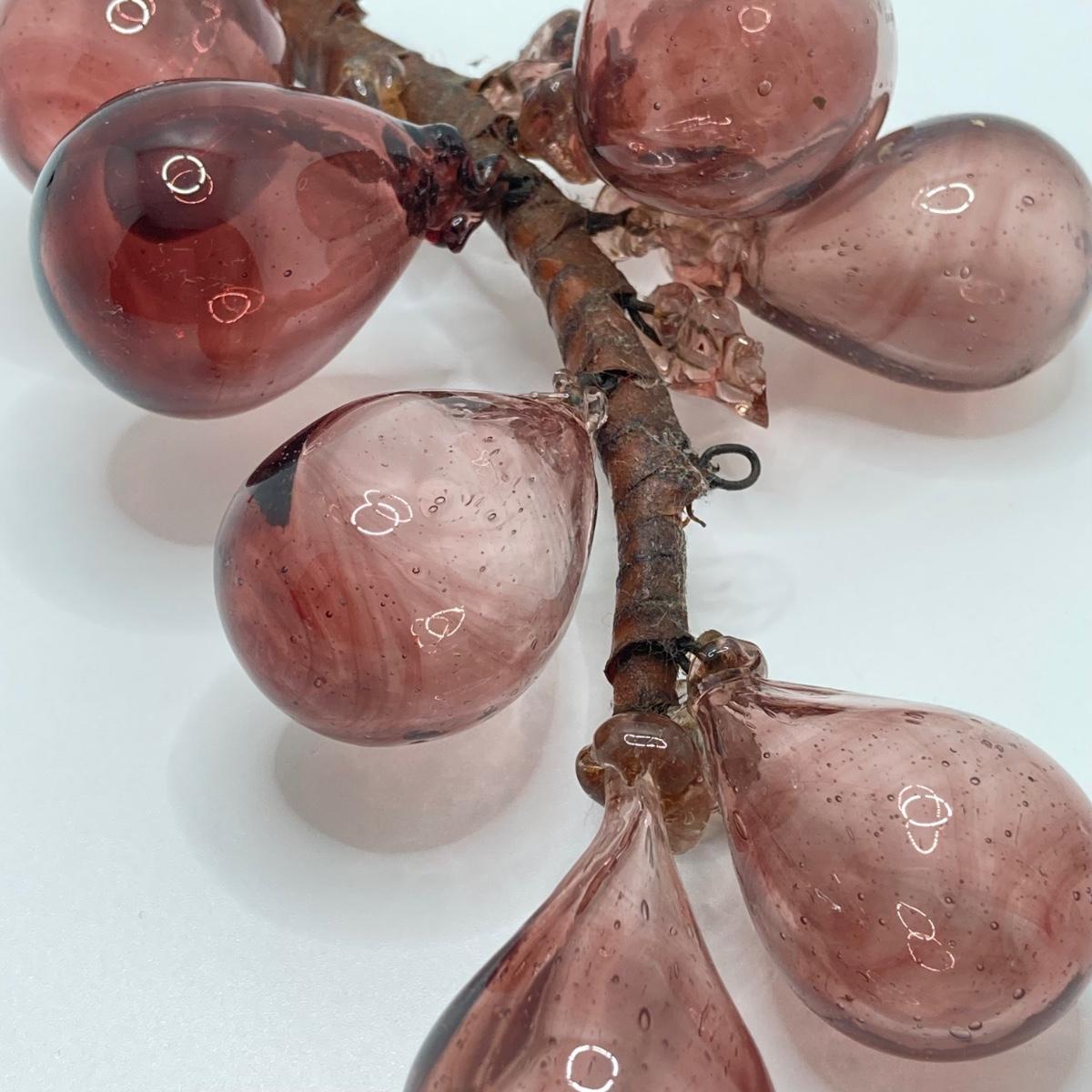 LOT 139: Vintage Wheaton Village Iridescent Art Glass Bottle (WV '04) and Glass Grapes
