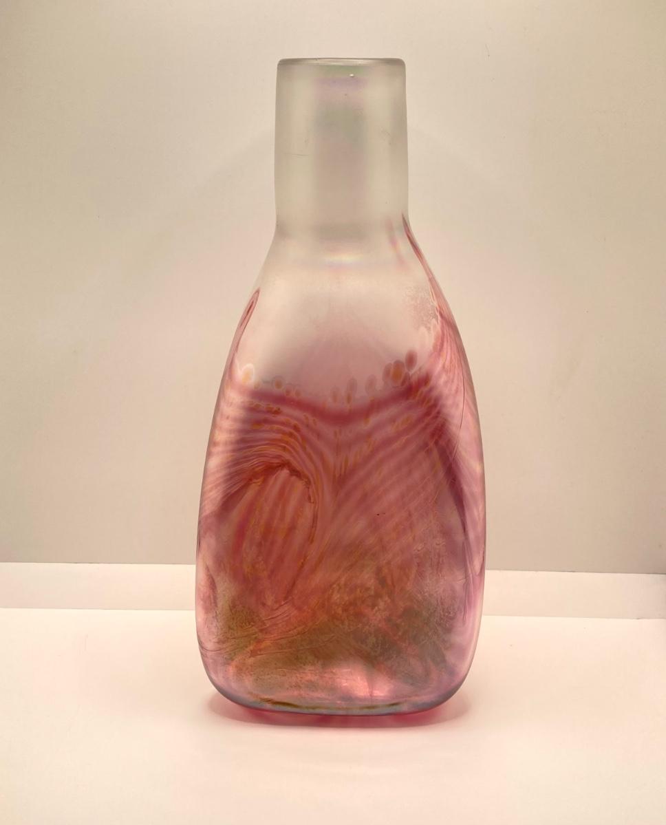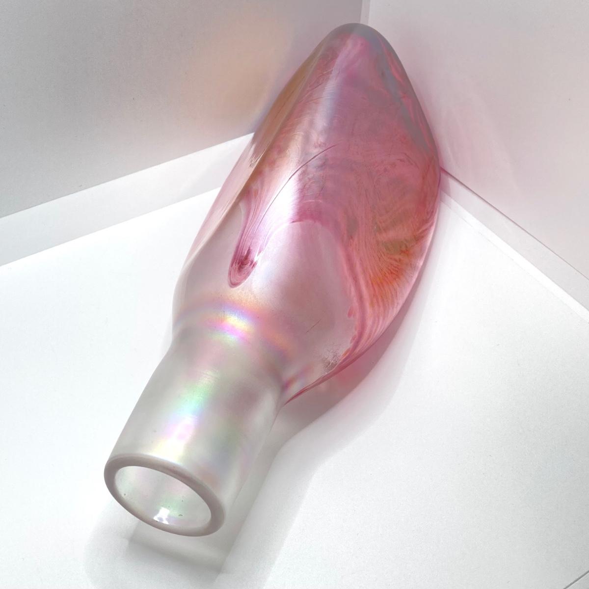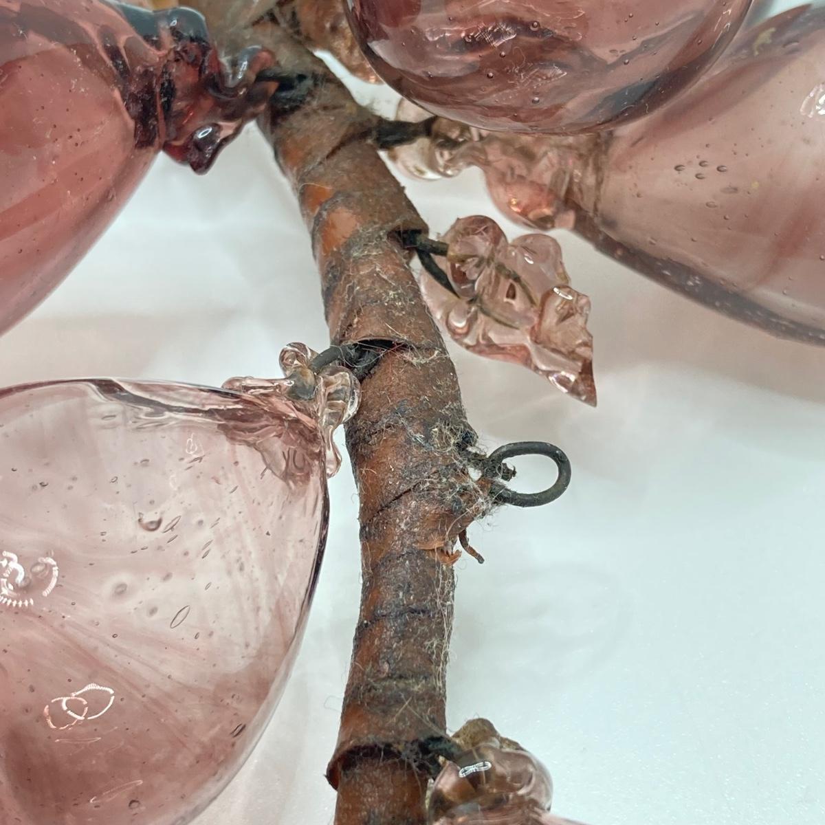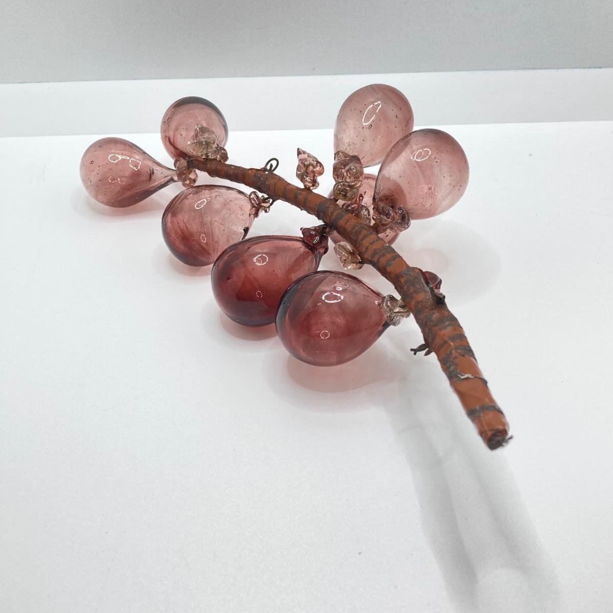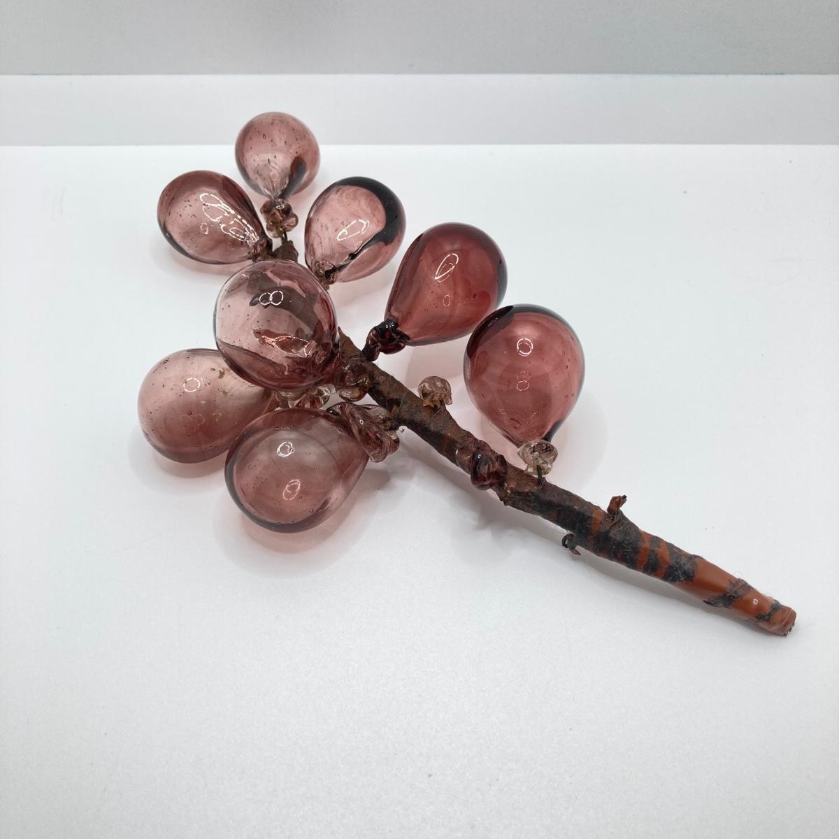 LOT 139: Vintage Wheaton Village Iridescent Art Glass Bottle (WV '04) and Glass Grapes