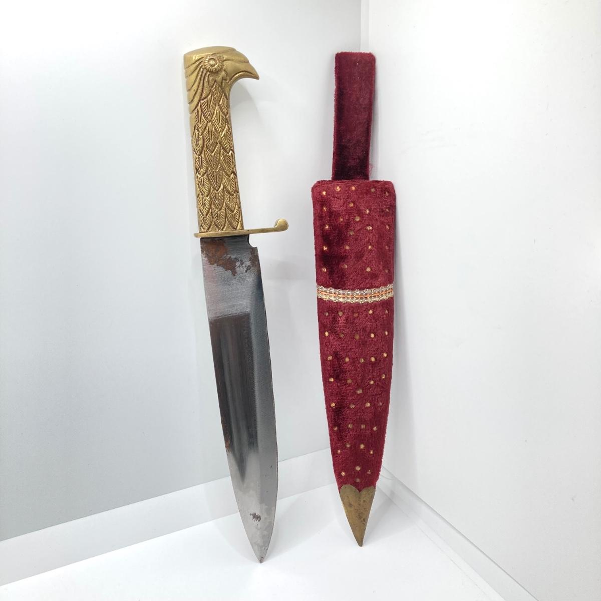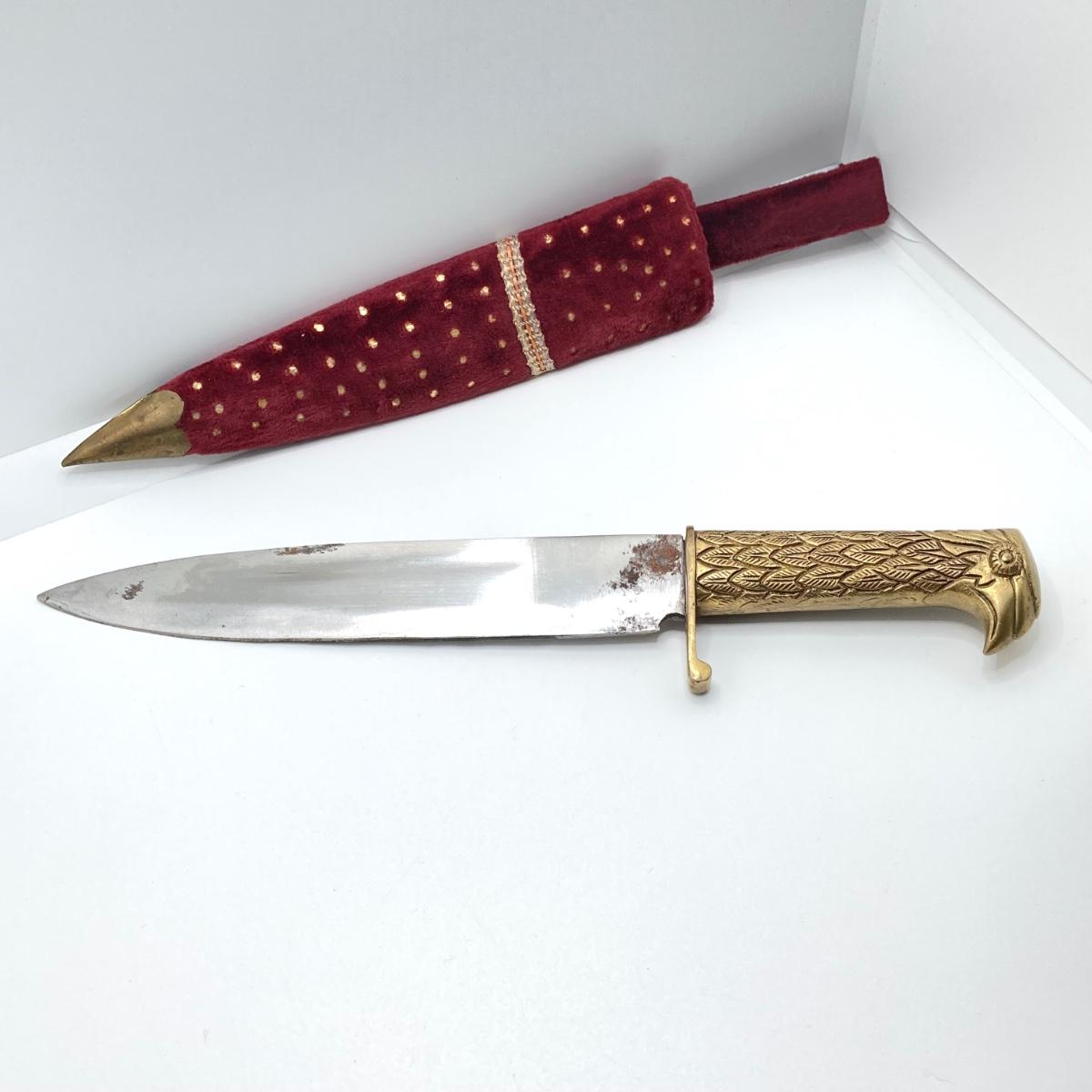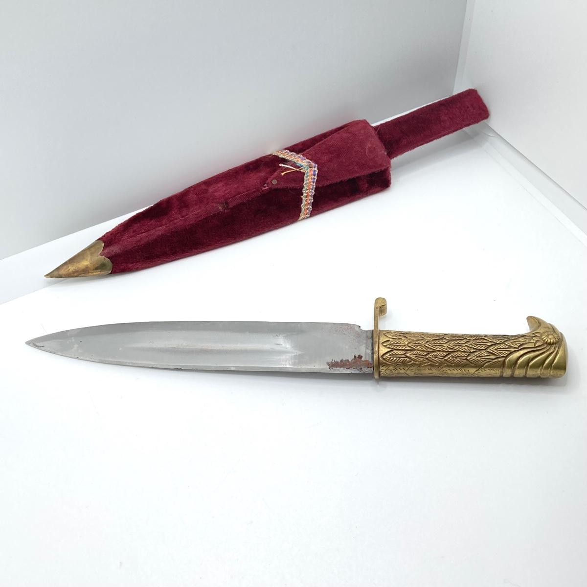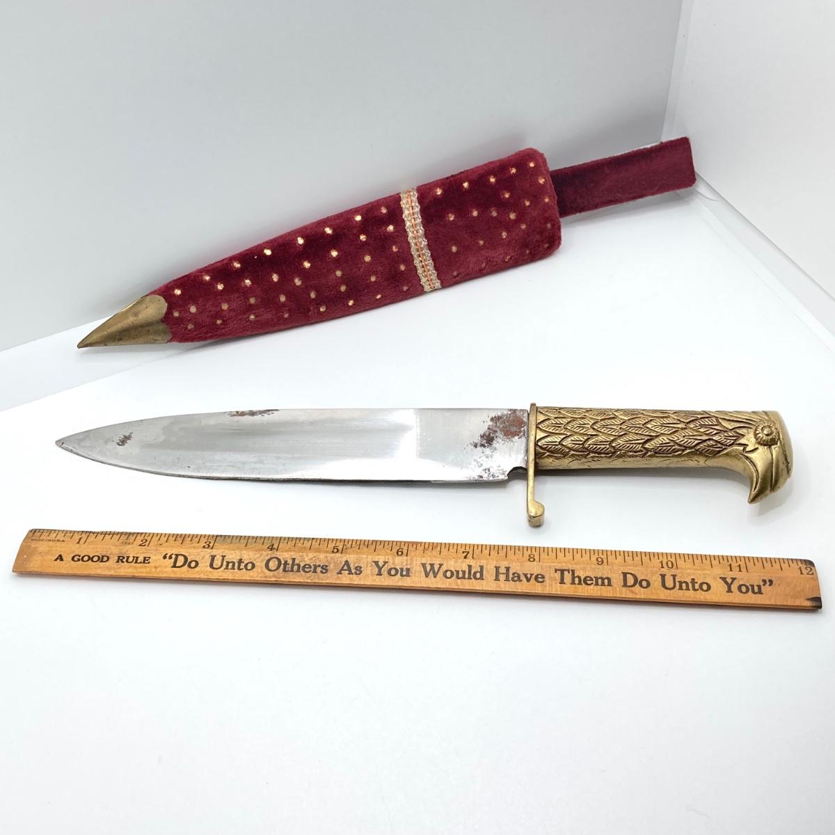 LOT 141: Vintage Brass Handle Eagle Dagger / Knife with Decorated Sheath / Scabbard
