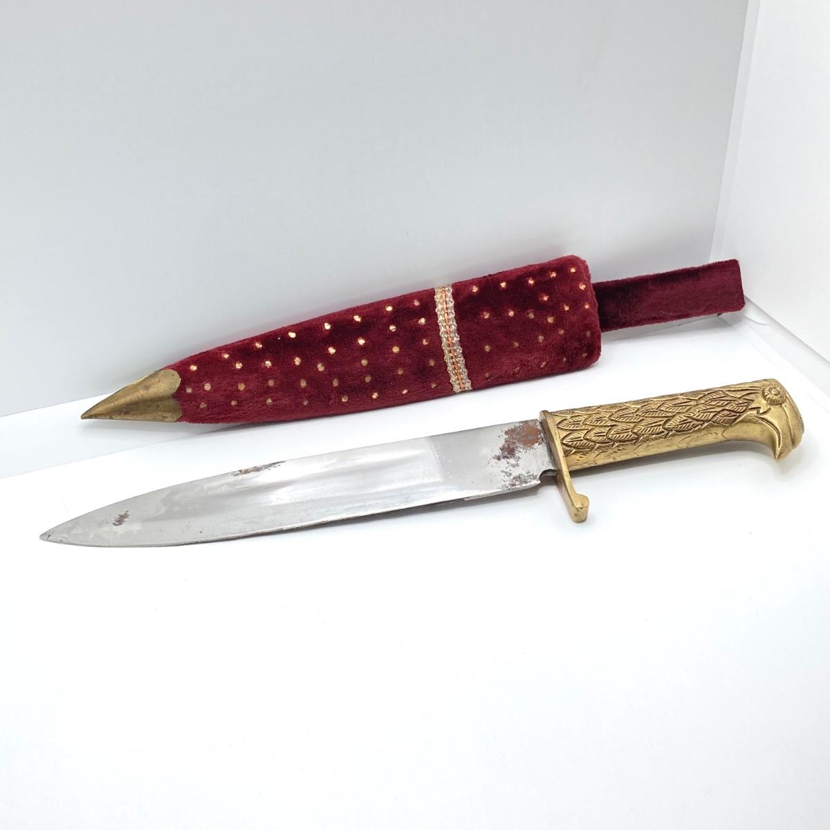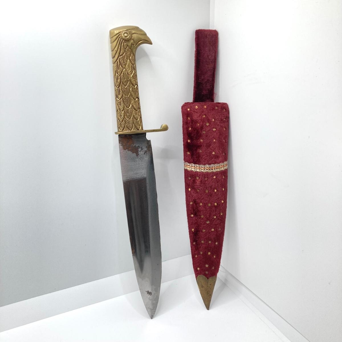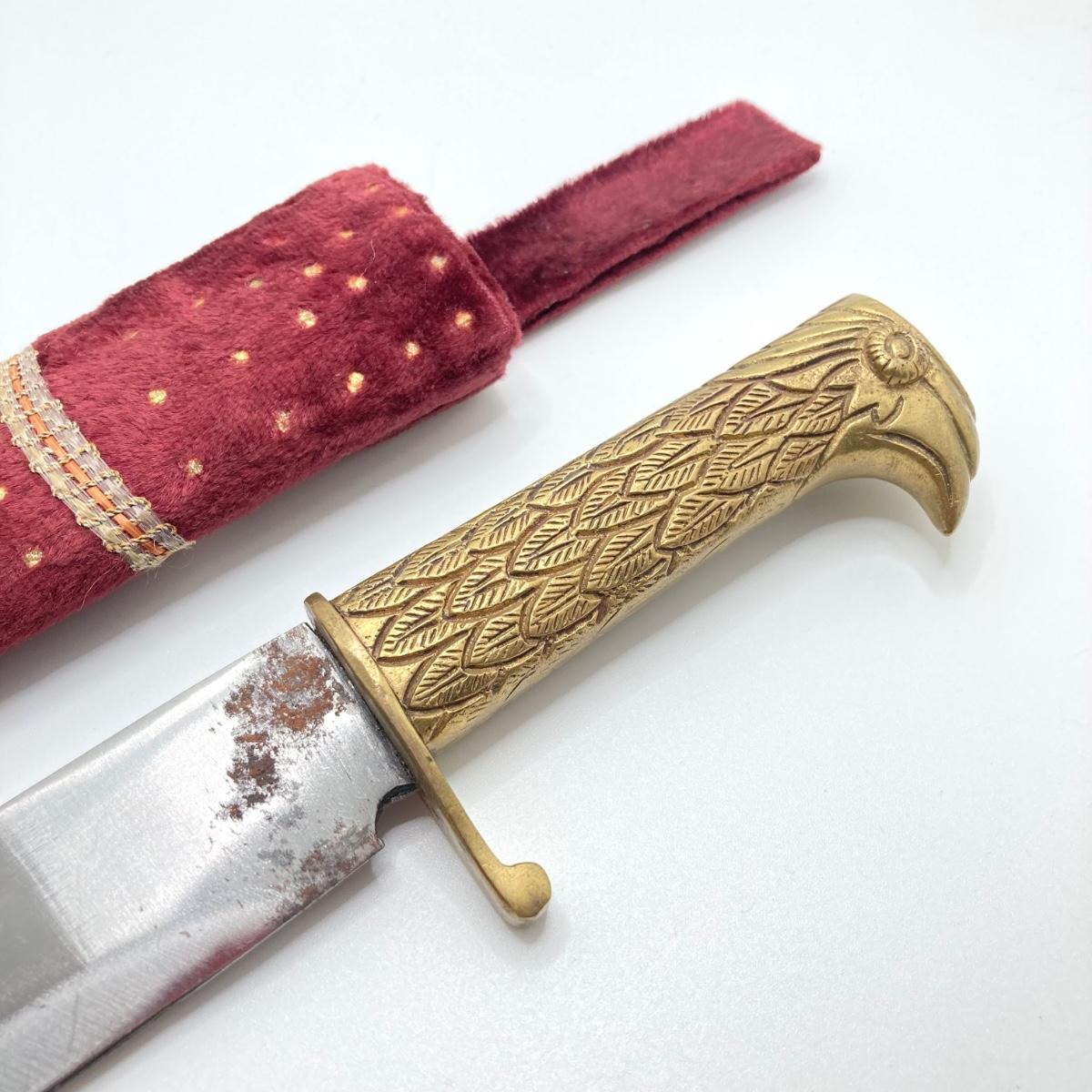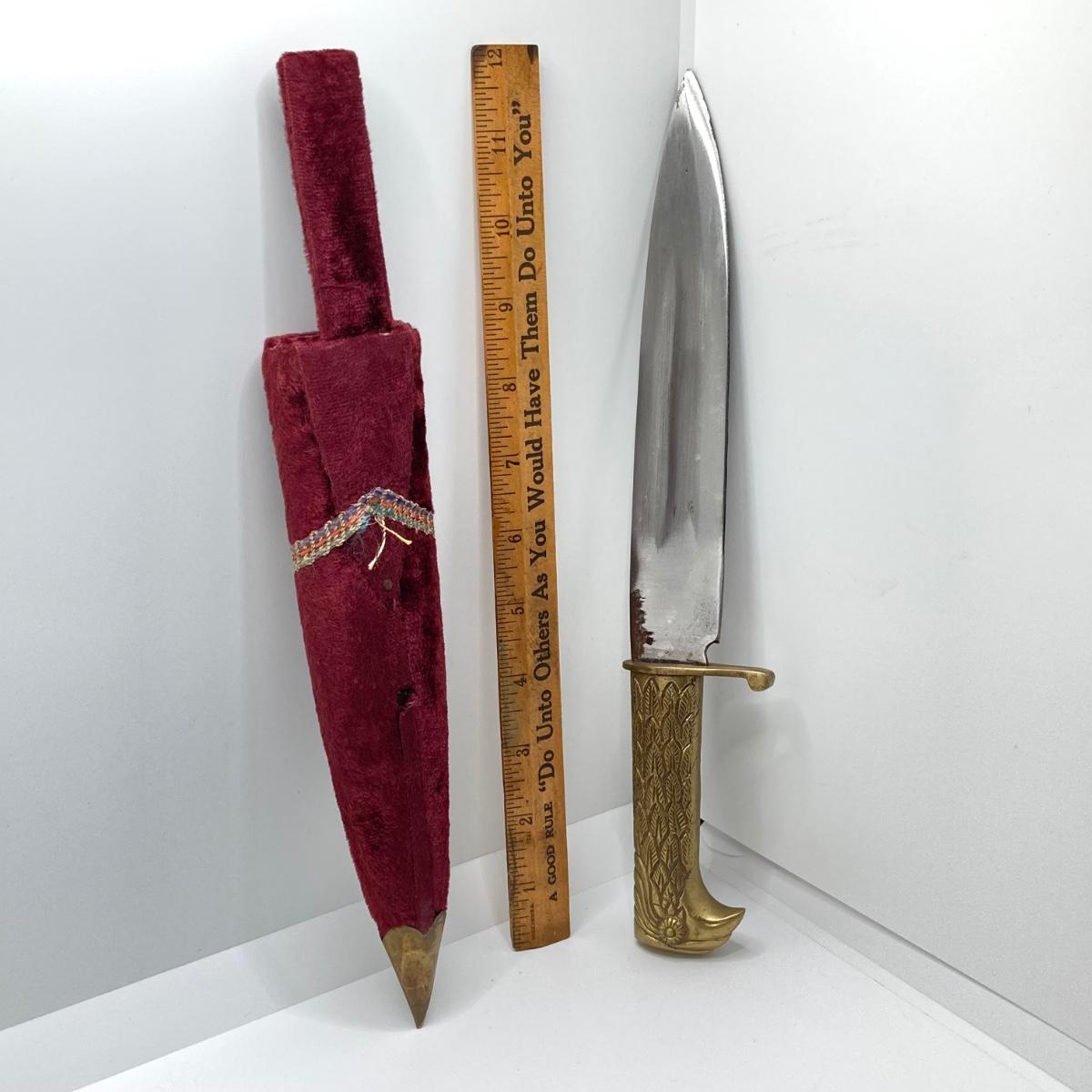 LOT 141: Vintage Brass Handle Eagle Dagger / Knife with Decorated Sheath / Scabbard