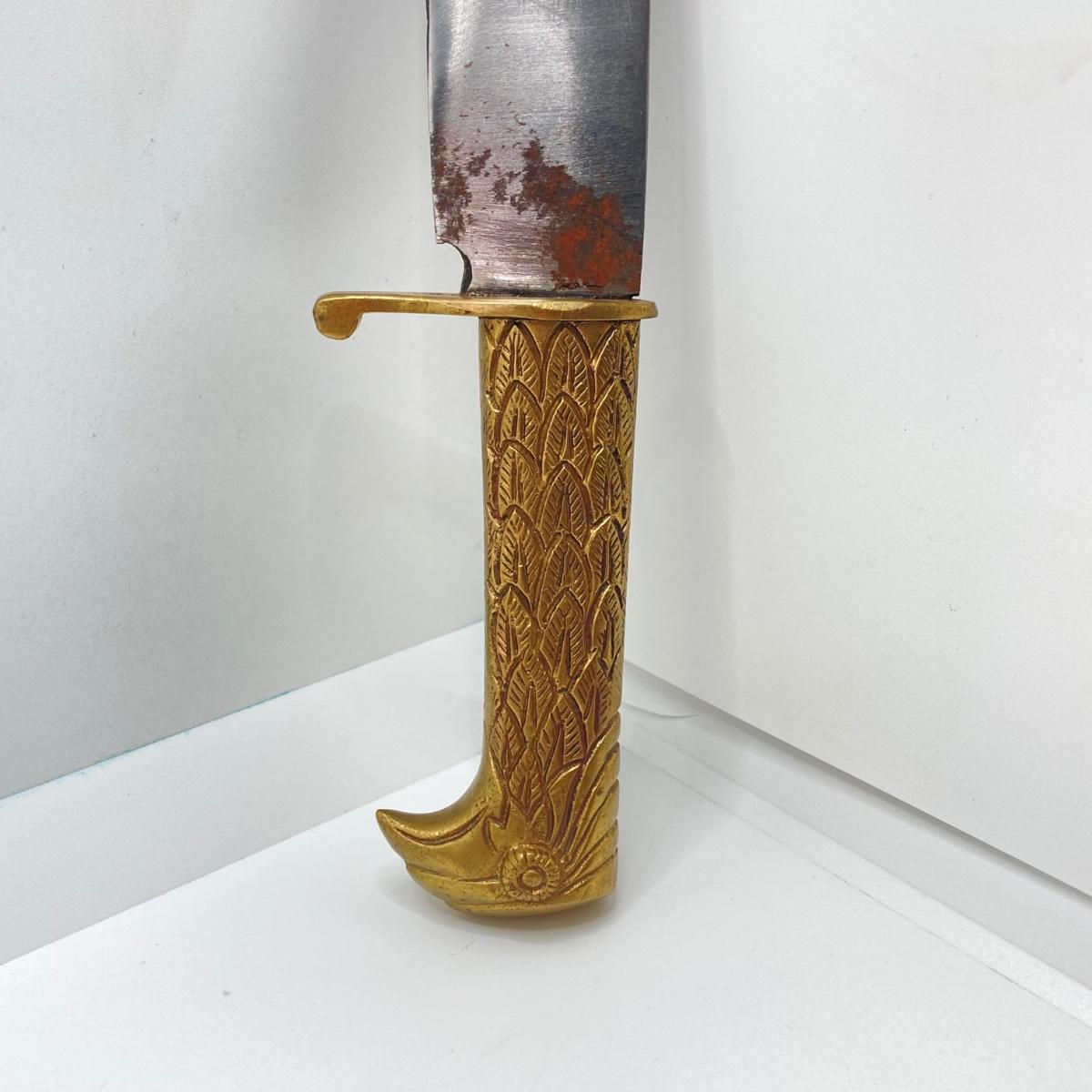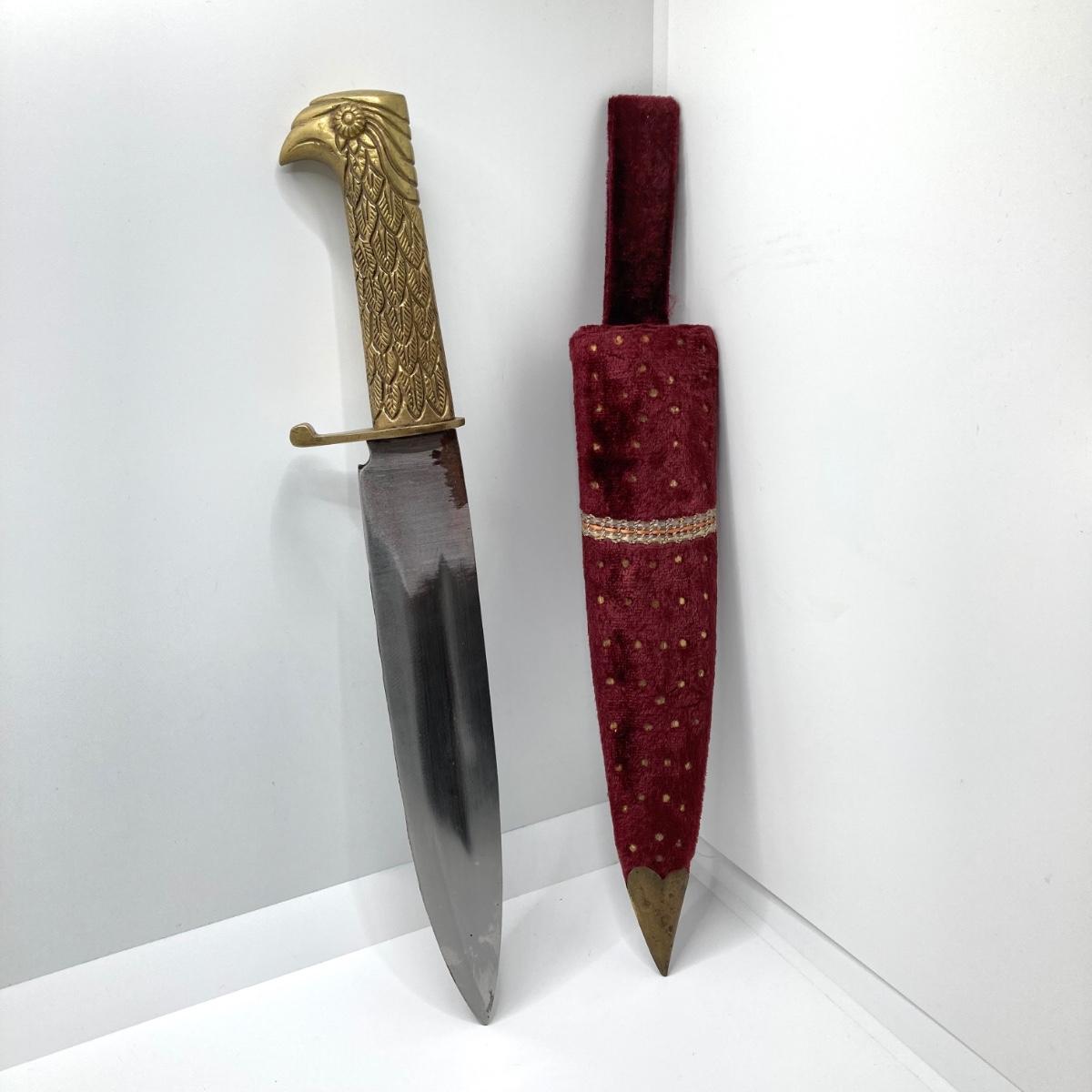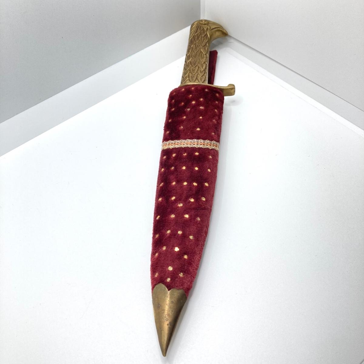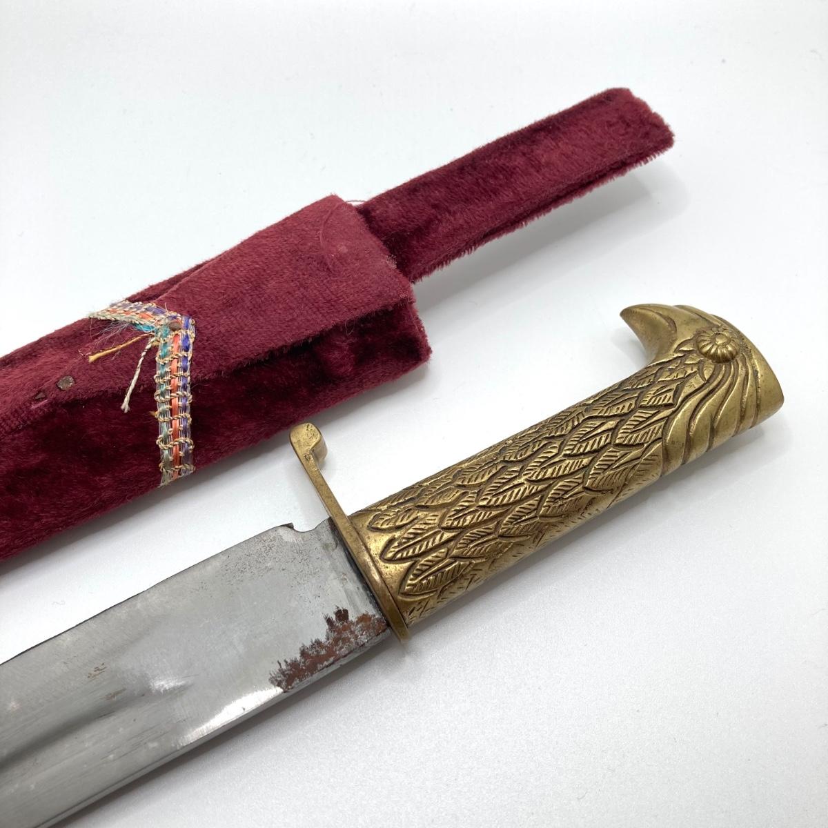 LOT 141: Vintage Brass Handle Eagle Dagger / Knife with Decorated Sheath / Scabbard