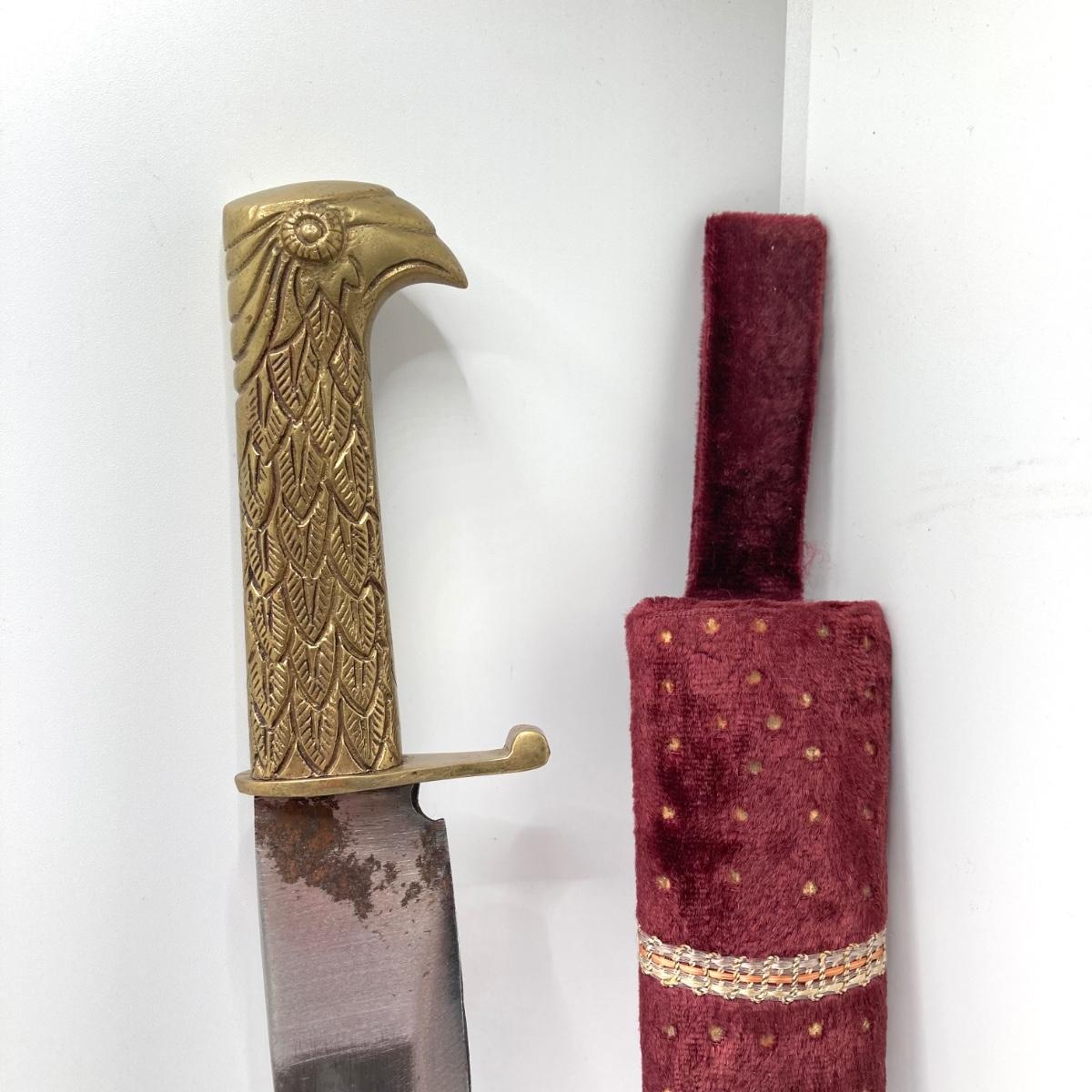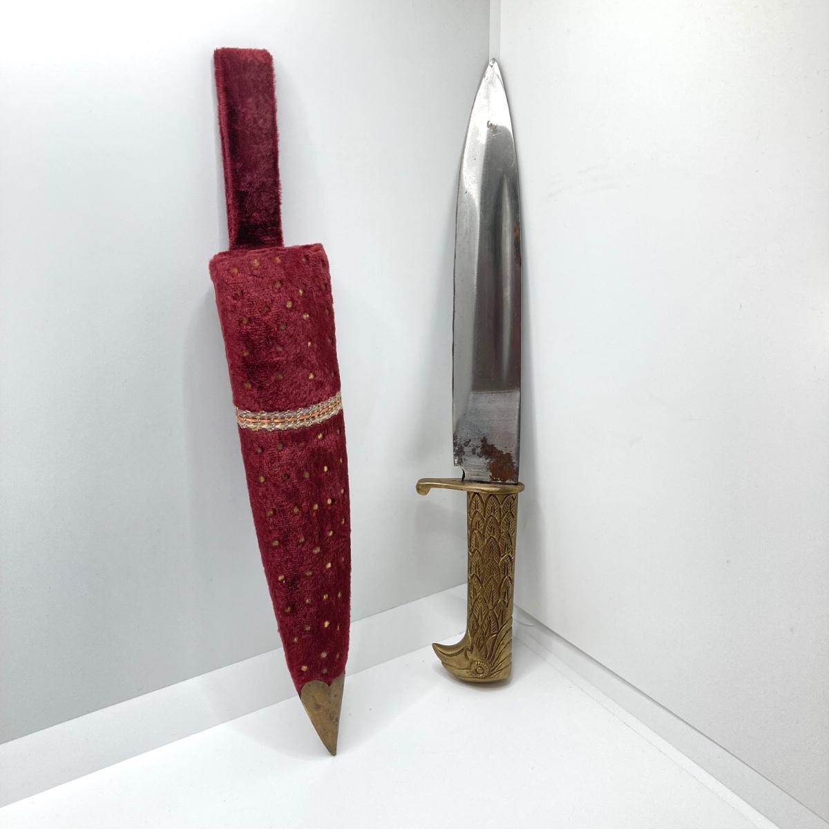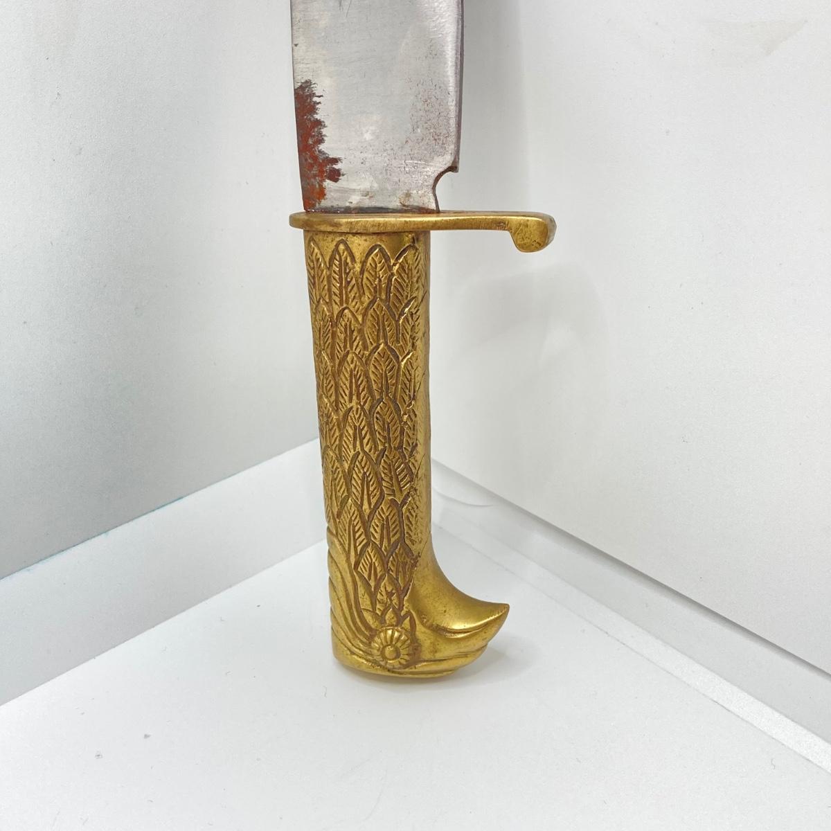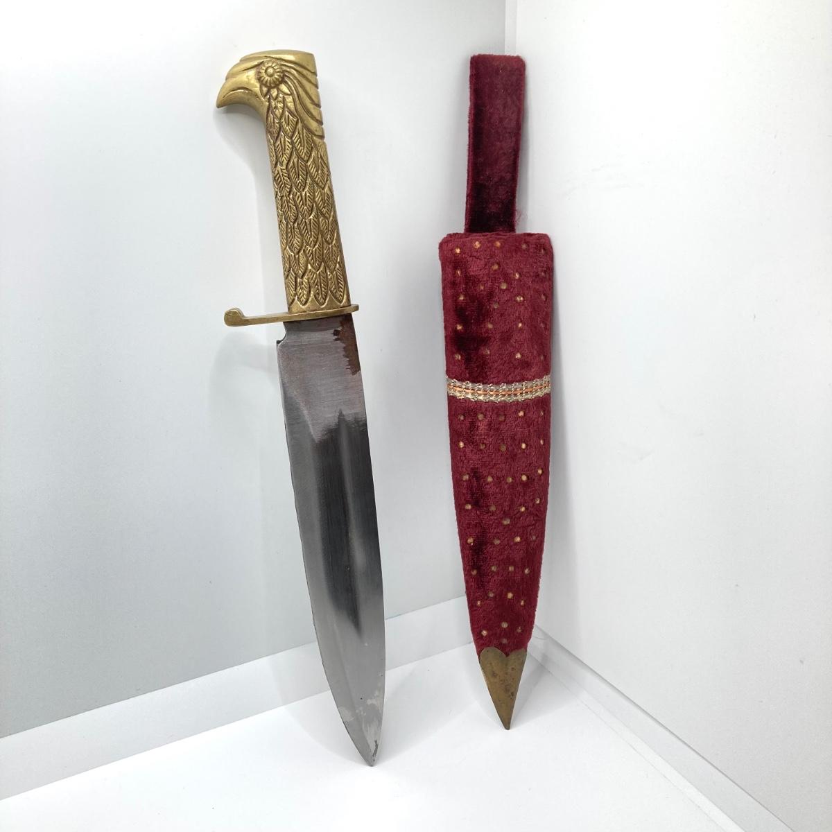 LOT 141: Vintage Brass Handle Eagle Dagger / Knife with Decorated Sheath / Scabbard