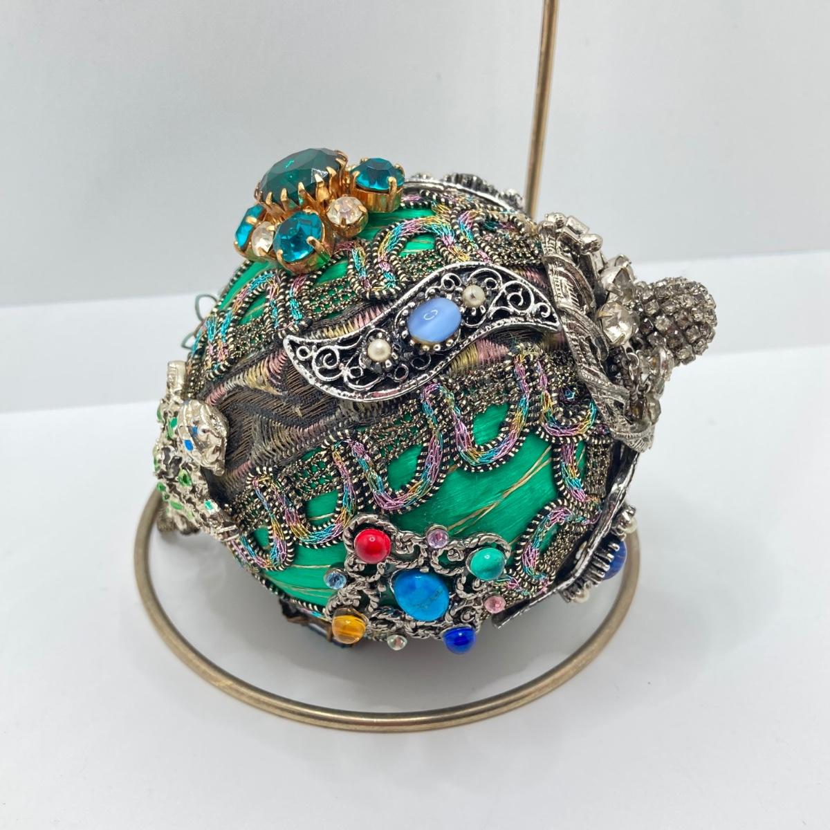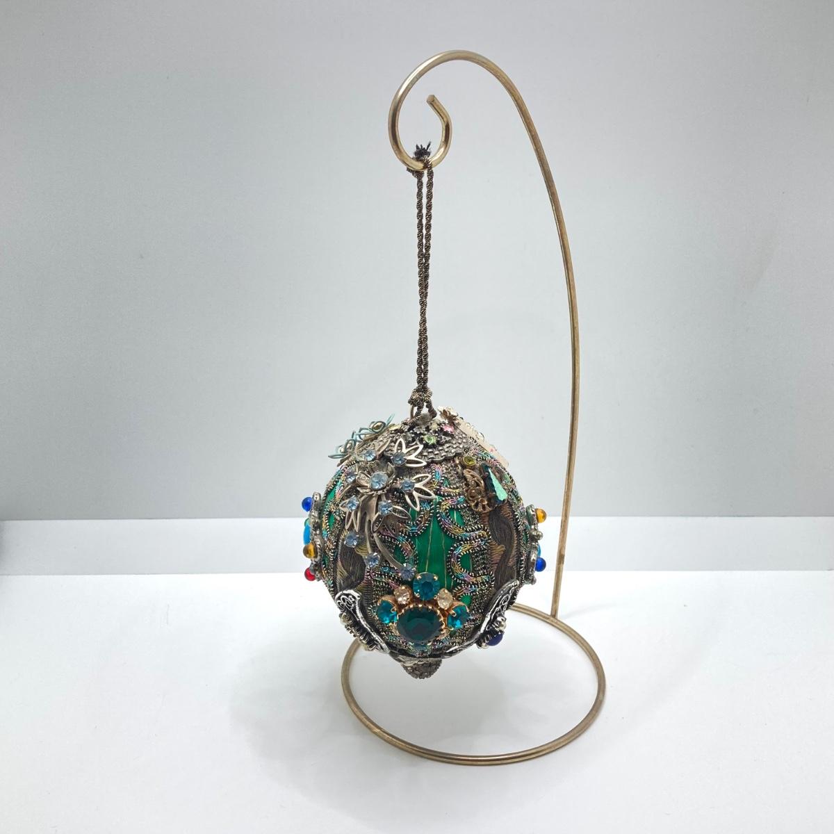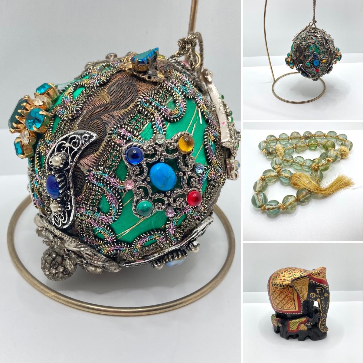 LOT 143: Vintage Decorative Collection - Handmade Ornament, Painted Large Glass Beads and Carved Elephant