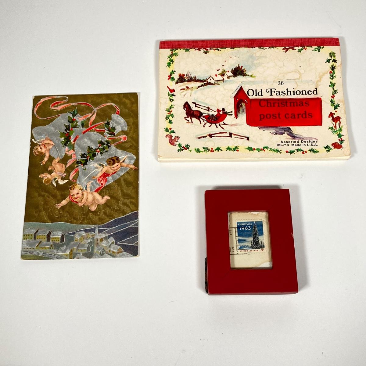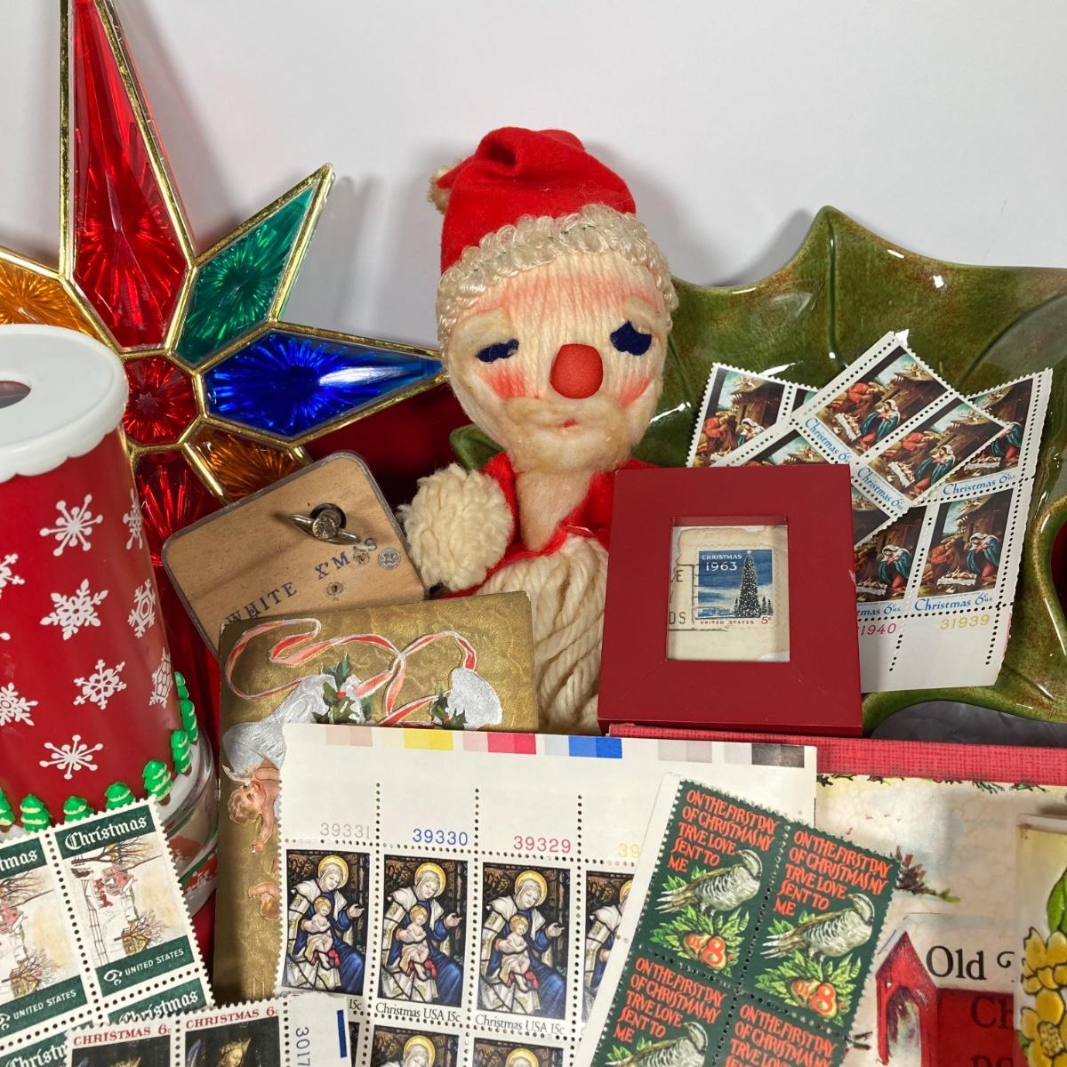 LOT 147: Vintage Christmas Collection - Stamps, Post Cards, Home Decor and Silvestri Kaleidoscope and More