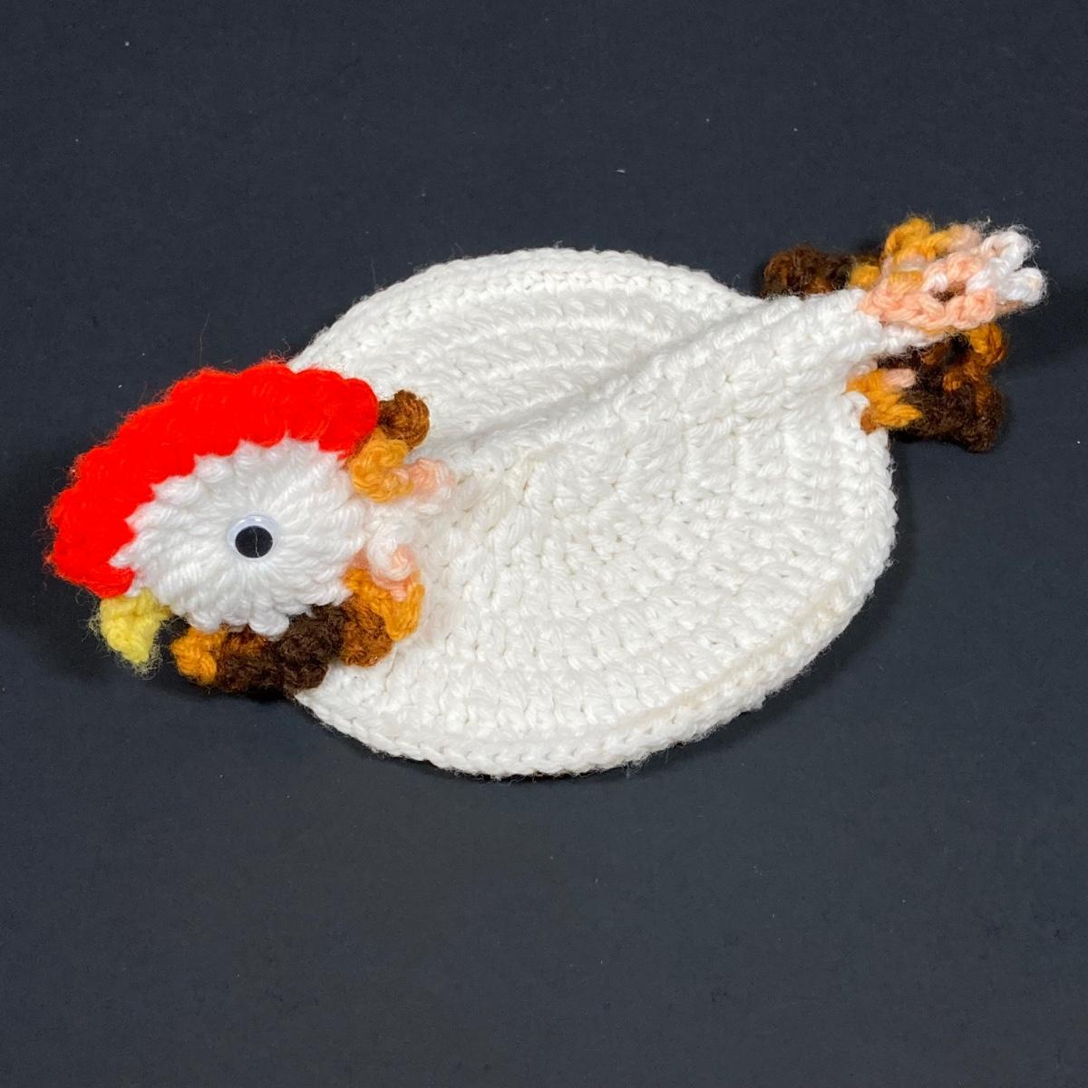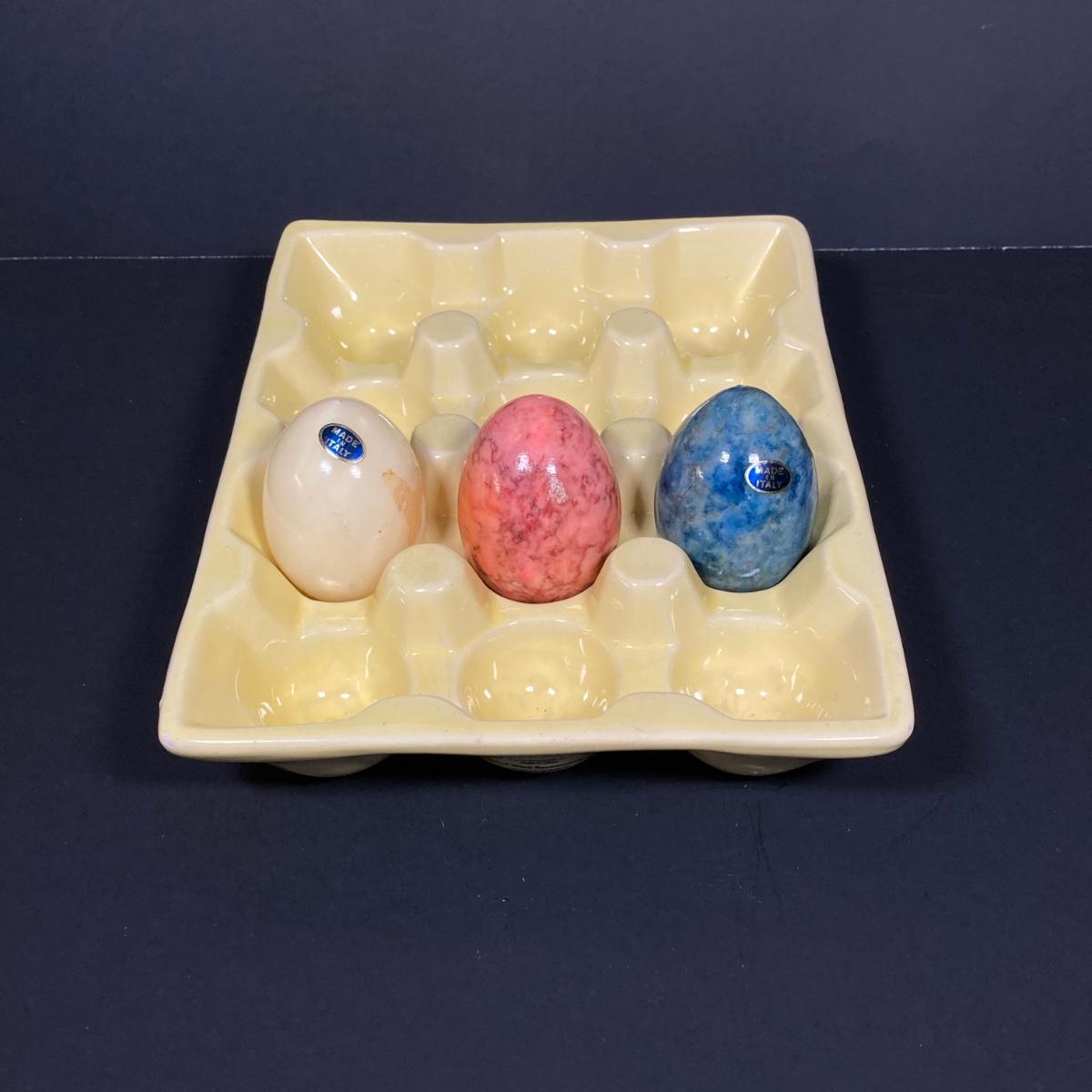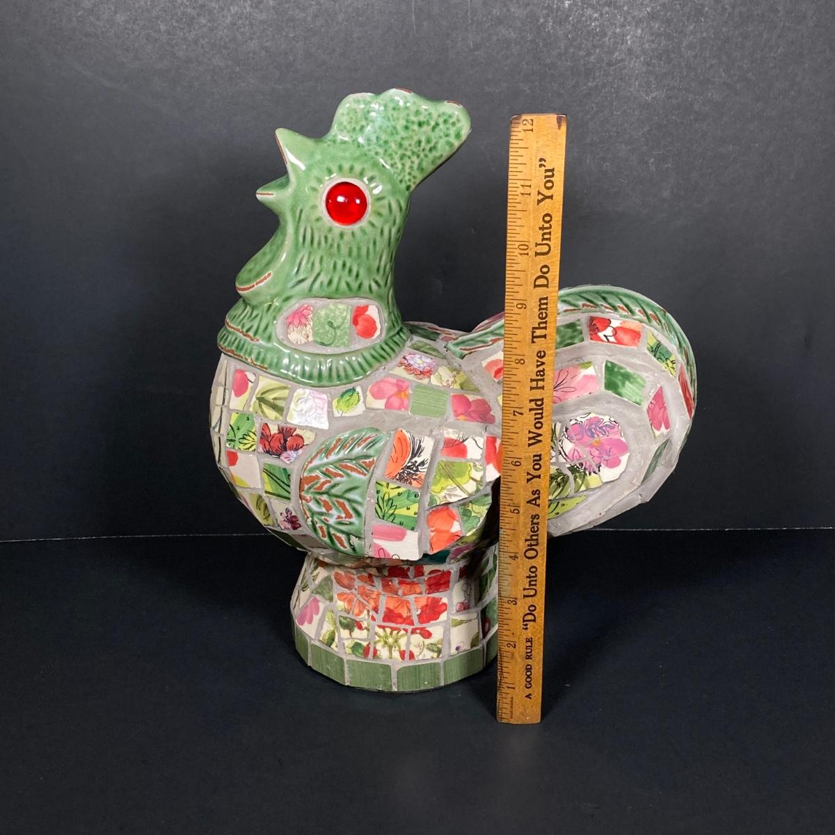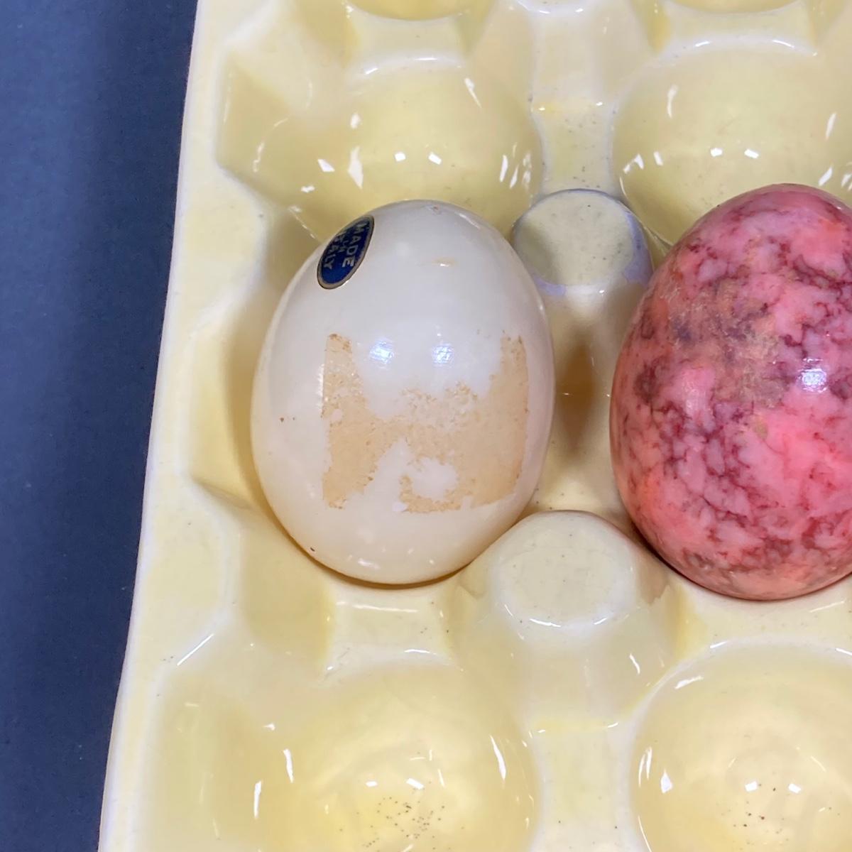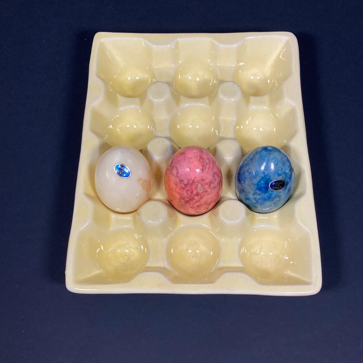 LOT 149: The Chicken and The Egg - Mosaic Decorative Hen, Onyx Eggs in Ceramic Holder and Crocheted Pot Holder
