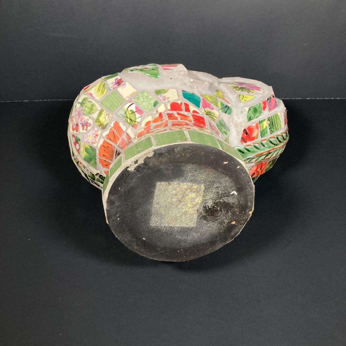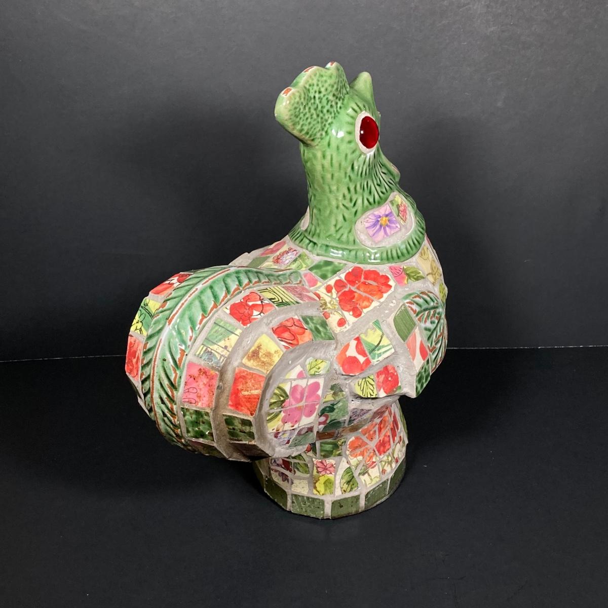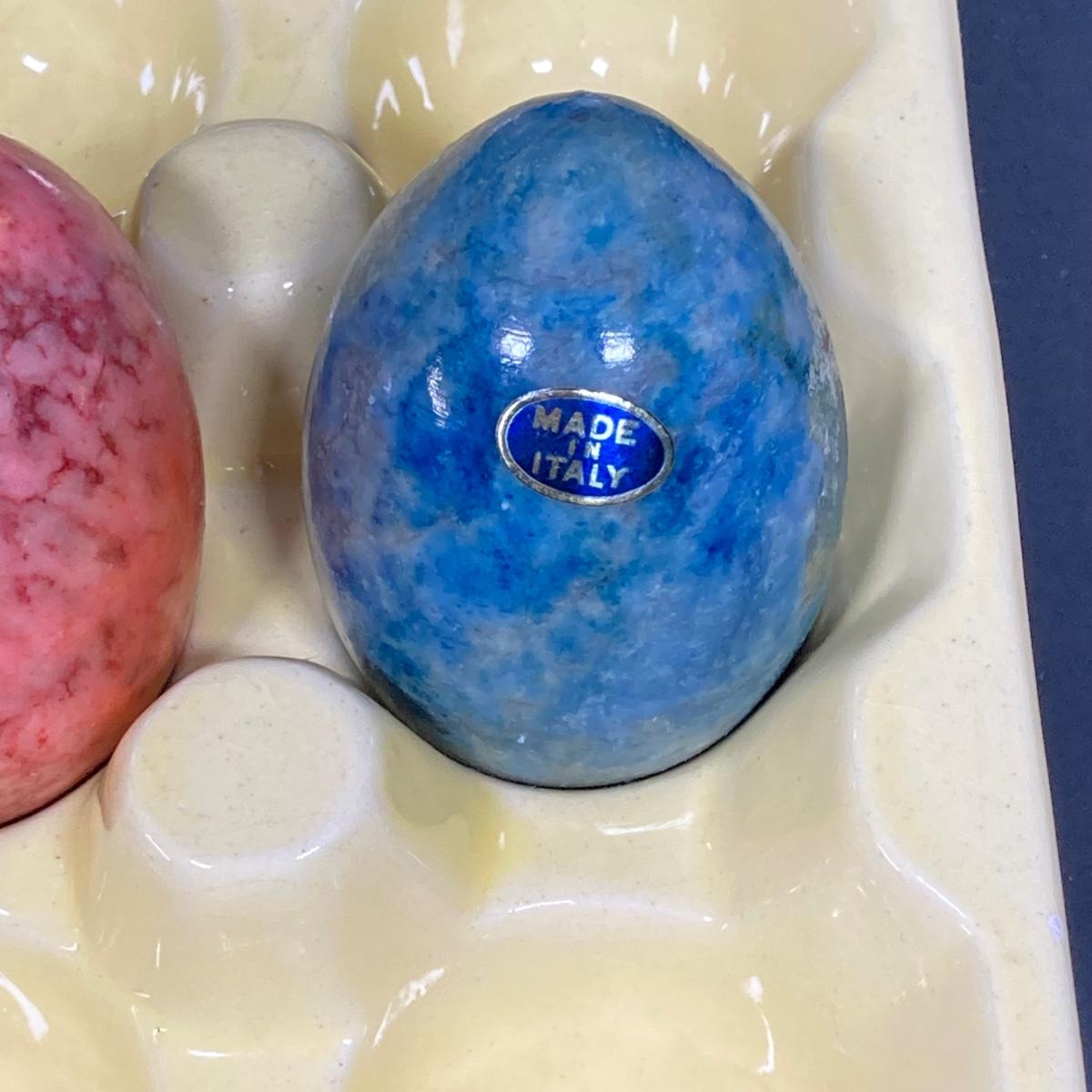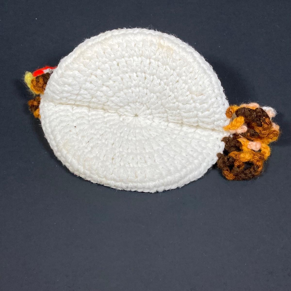 LOT 149: The Chicken and The Egg - Mosaic Decorative Hen, Onyx Eggs in Ceramic Holder and Crocheted Pot Holder