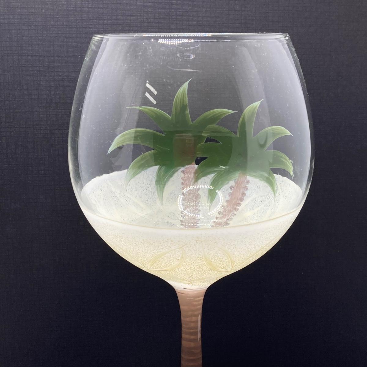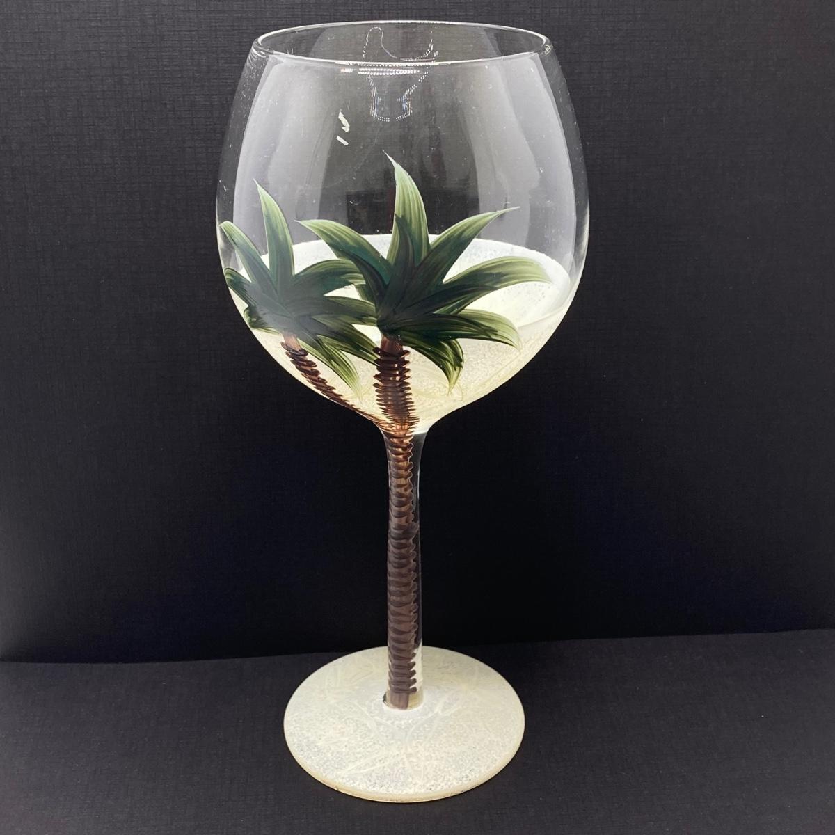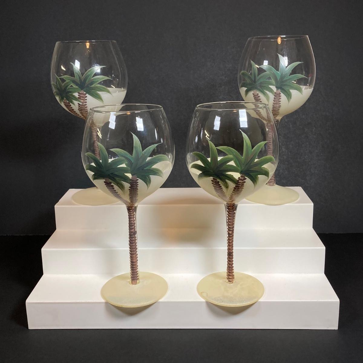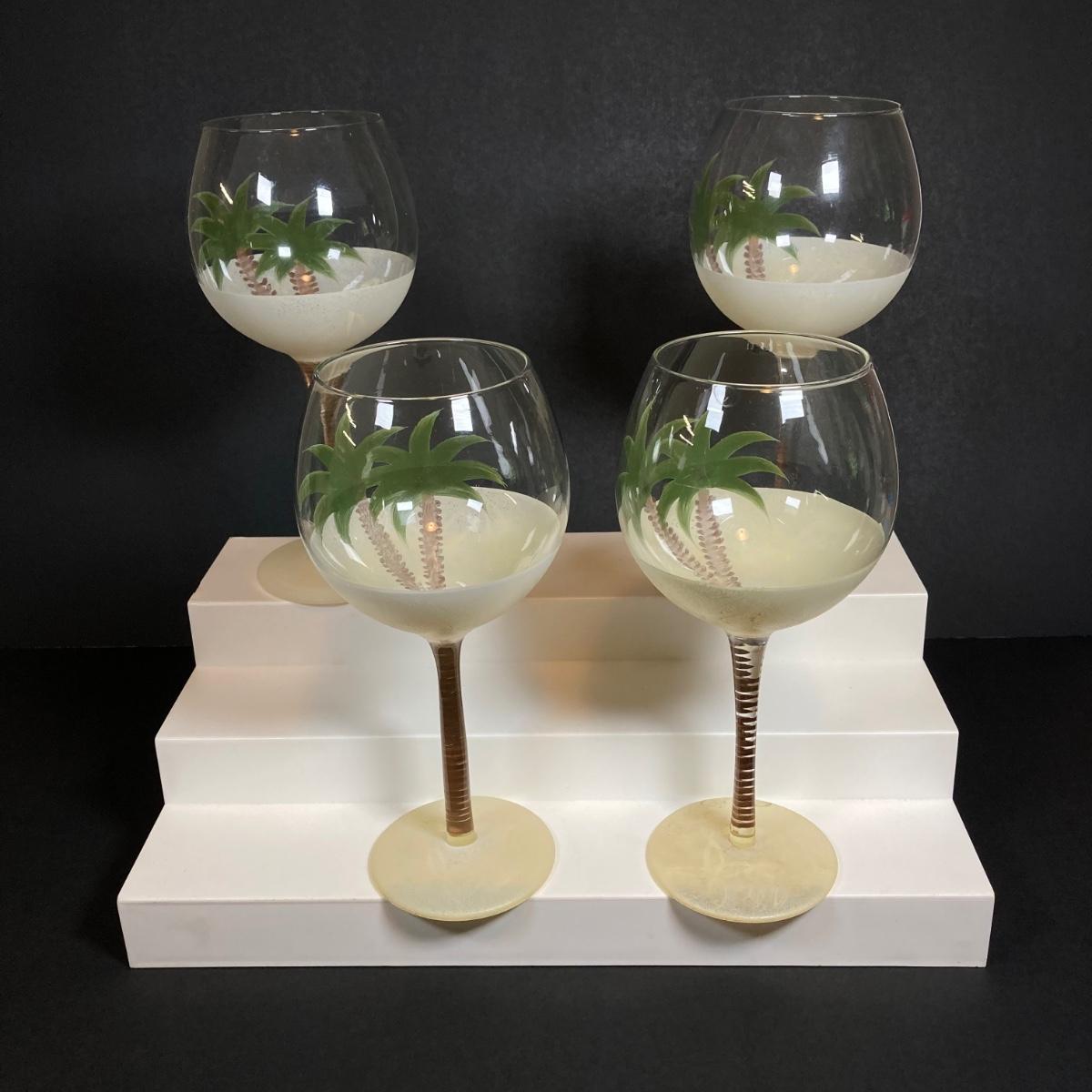 LOT 150: Tommy Bahama Style Palm Tree Drinking Glasses with Acrylic Pitcher