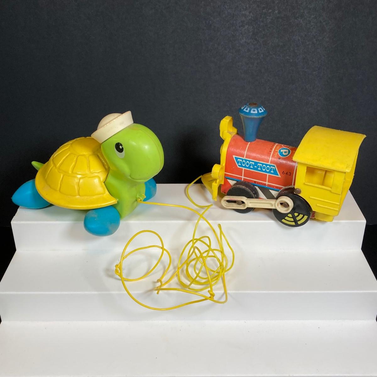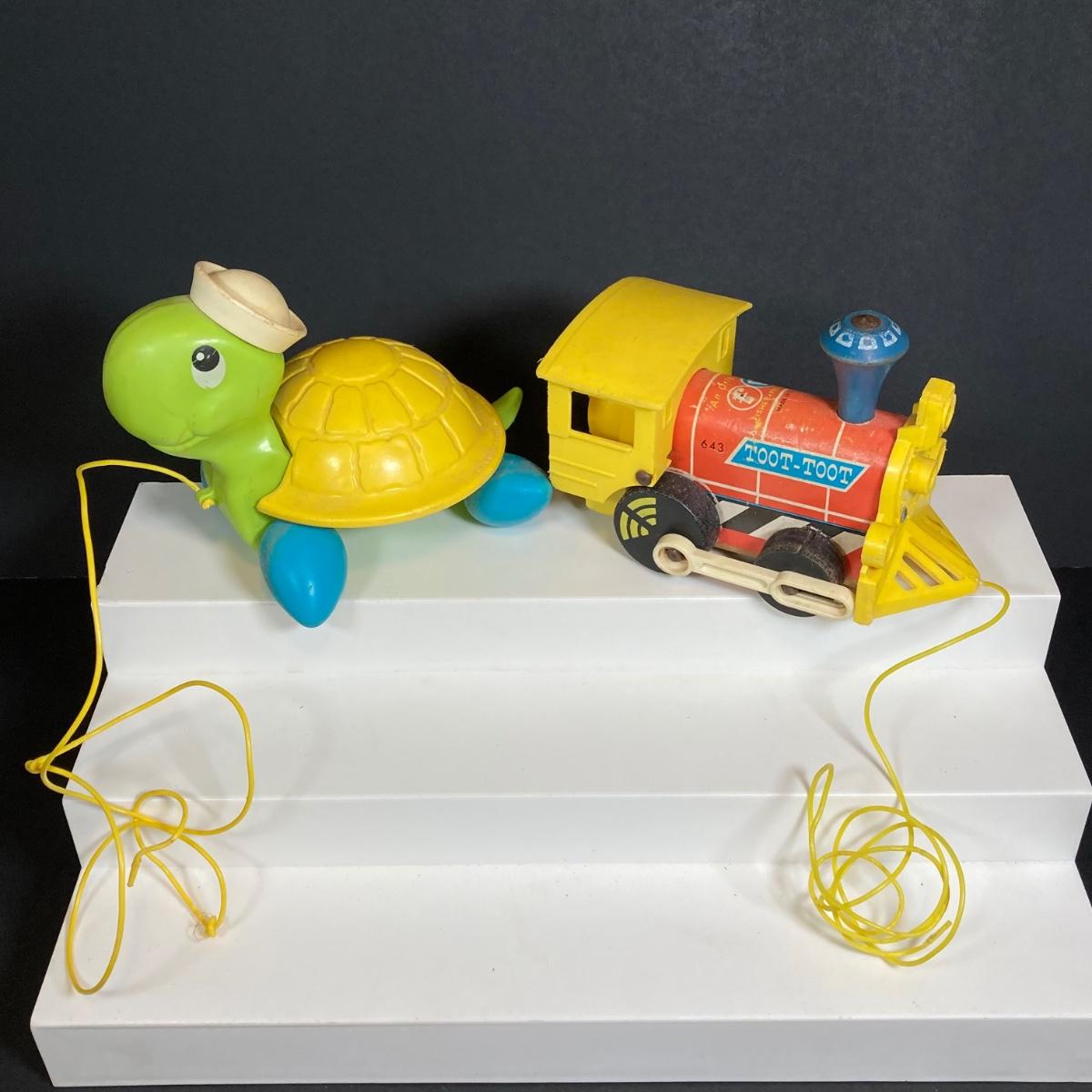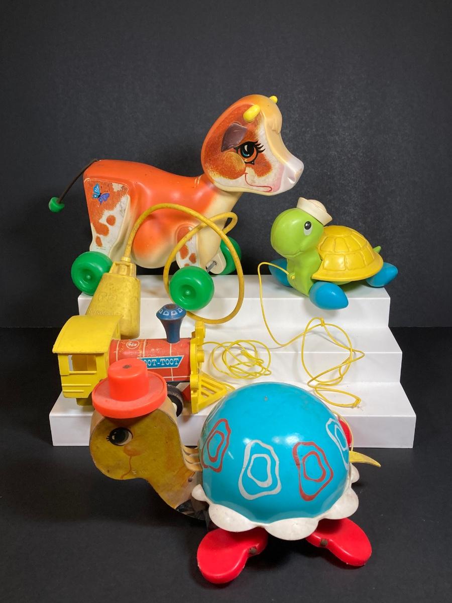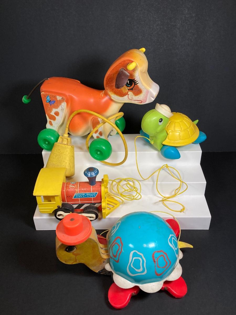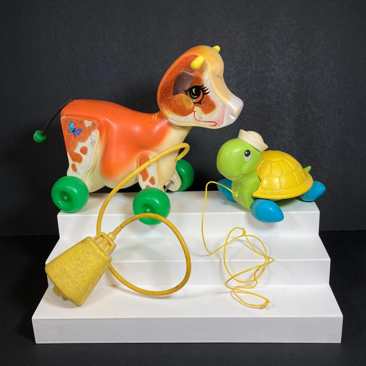 LOT 151: Vintage Fisher Price Toy Collection - Cow, Turtles and Toot Toot Train