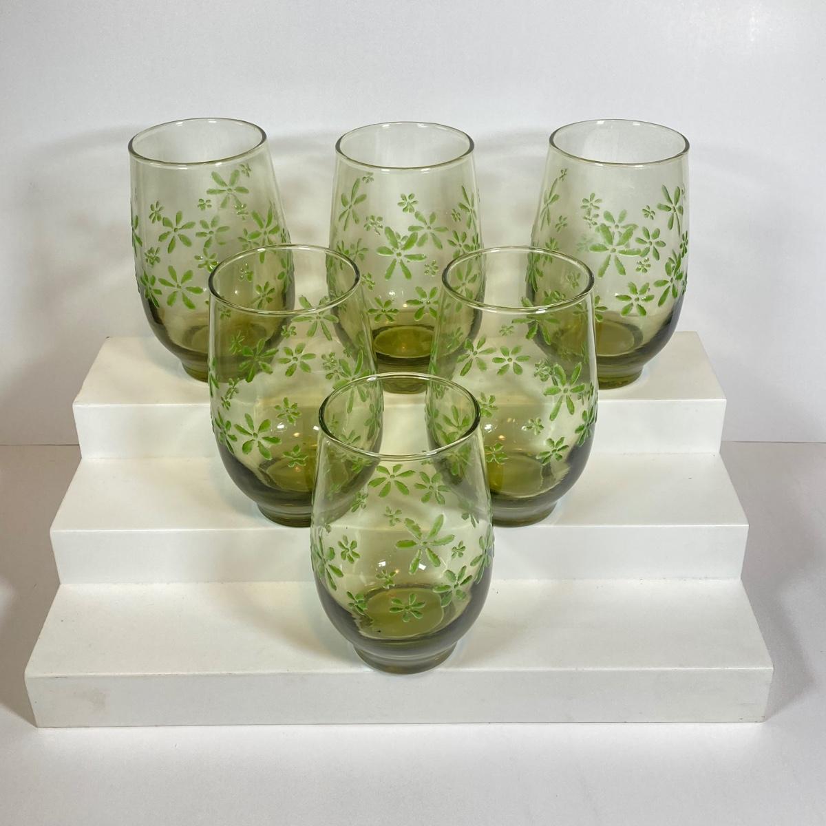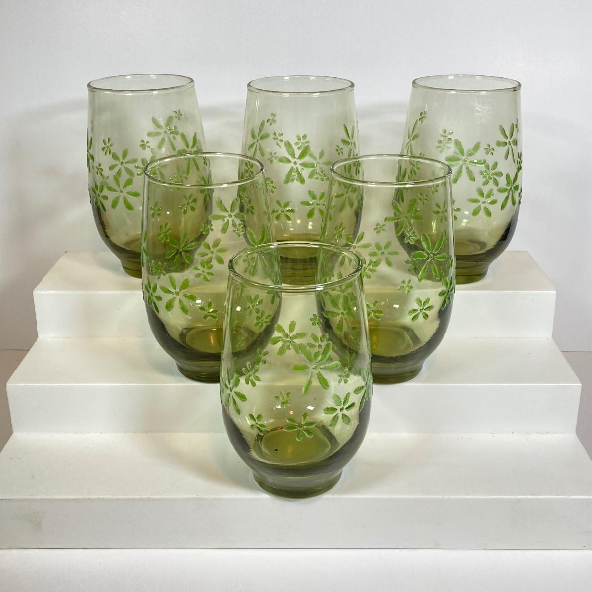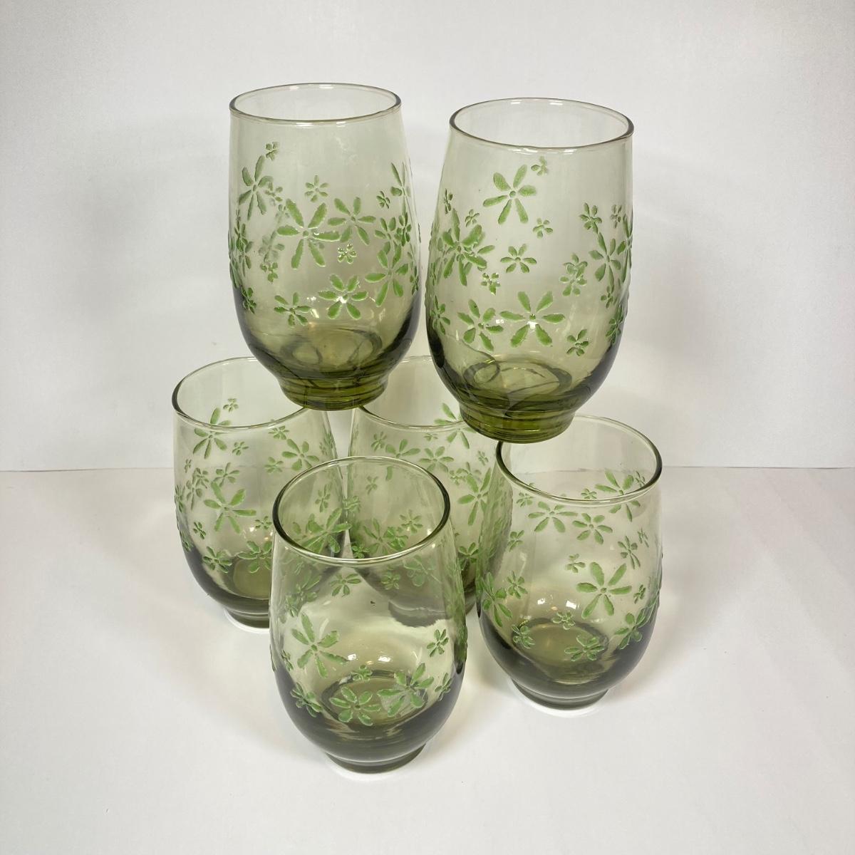 LOT 153: Six Libbey's Mint Bouquet Green Mid-Century Modern Glassware