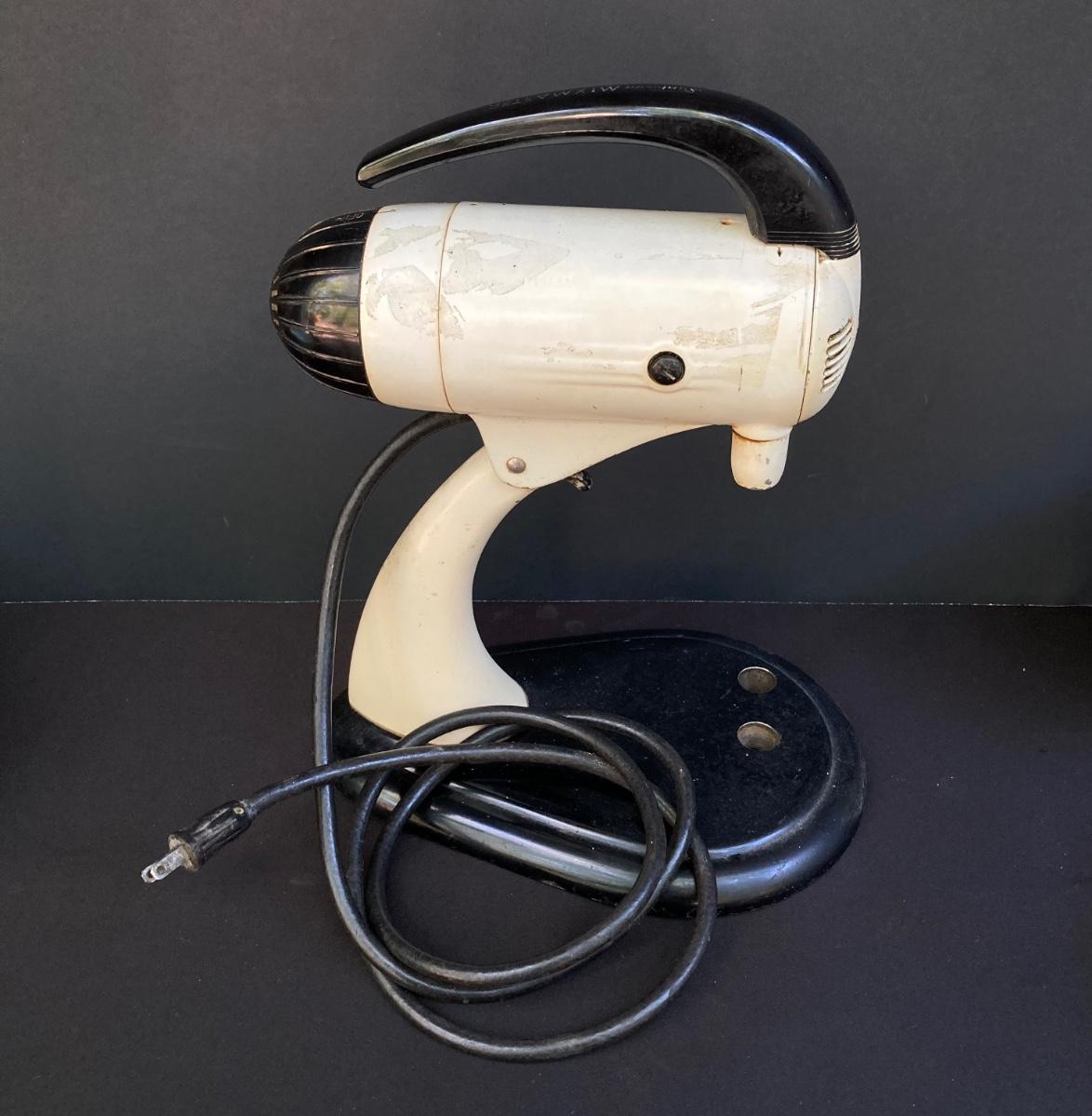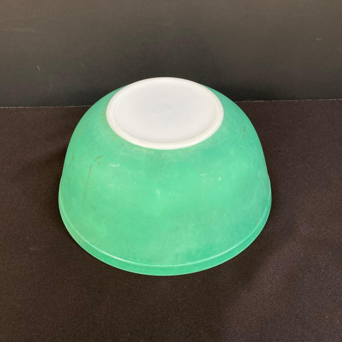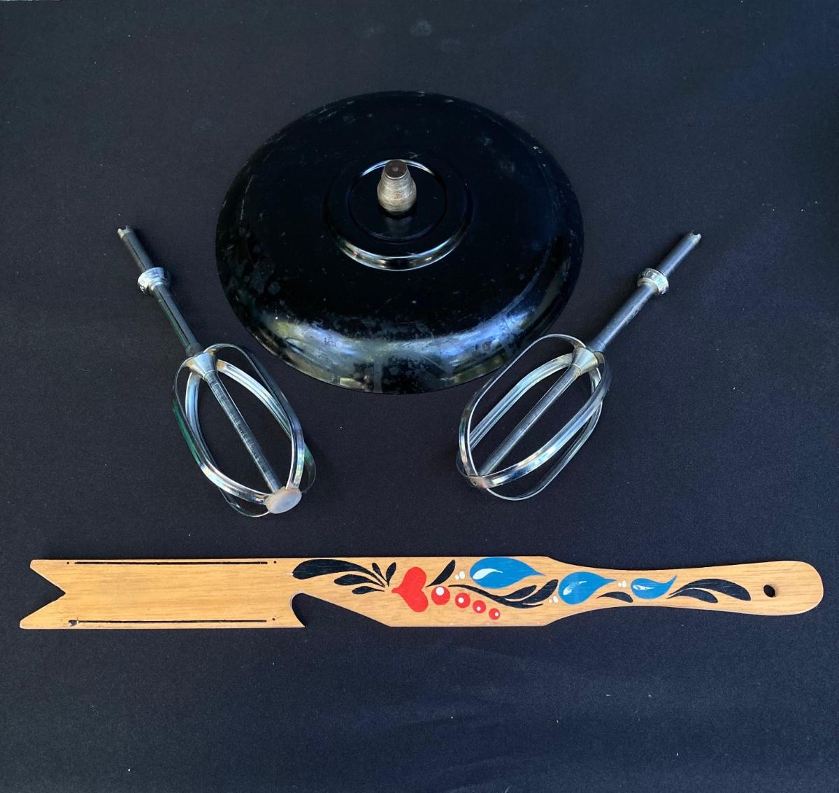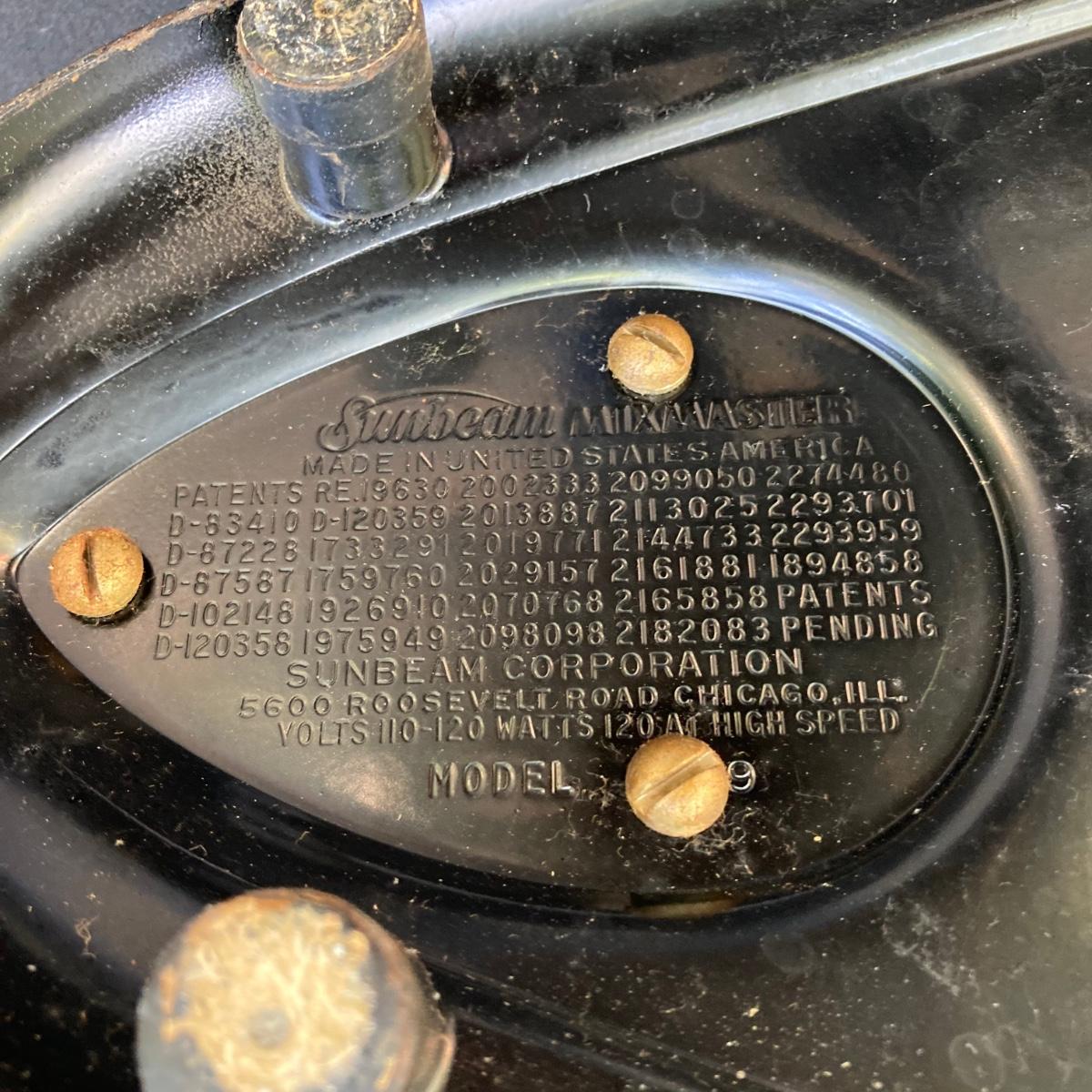 LOT 167: Vintage Sunbeam Mixer, Green Pyrex Mixing Bowl and Wooden Oven Stick