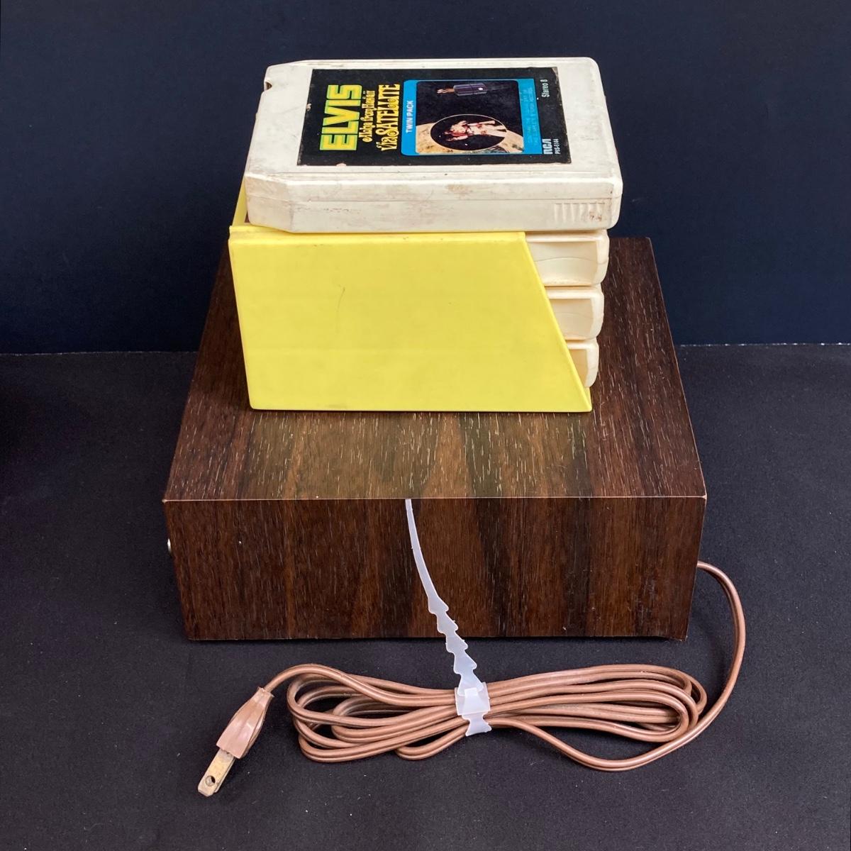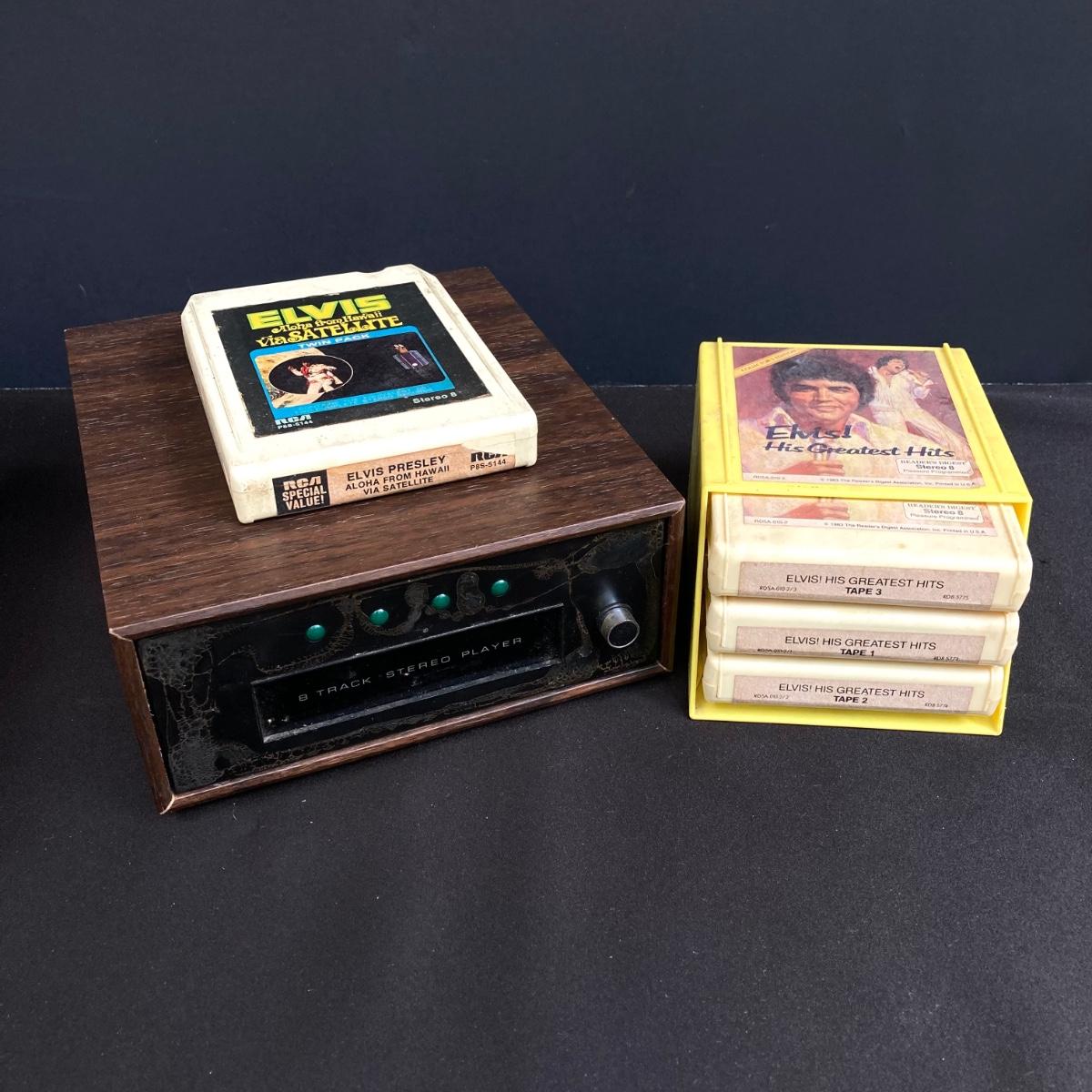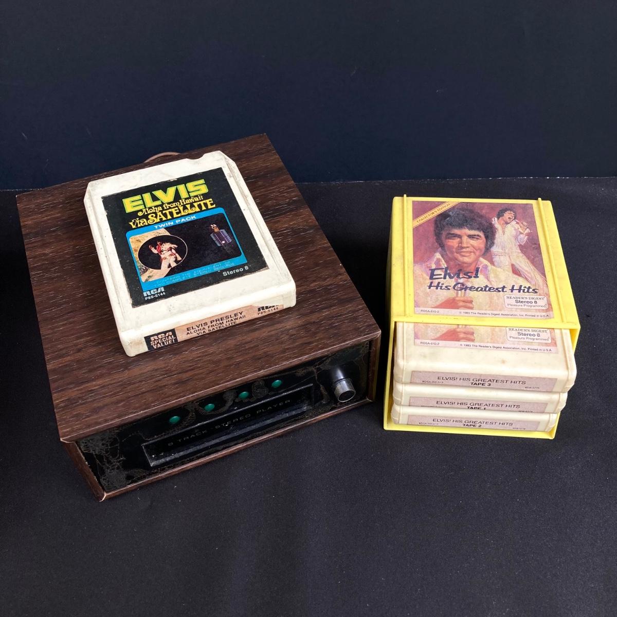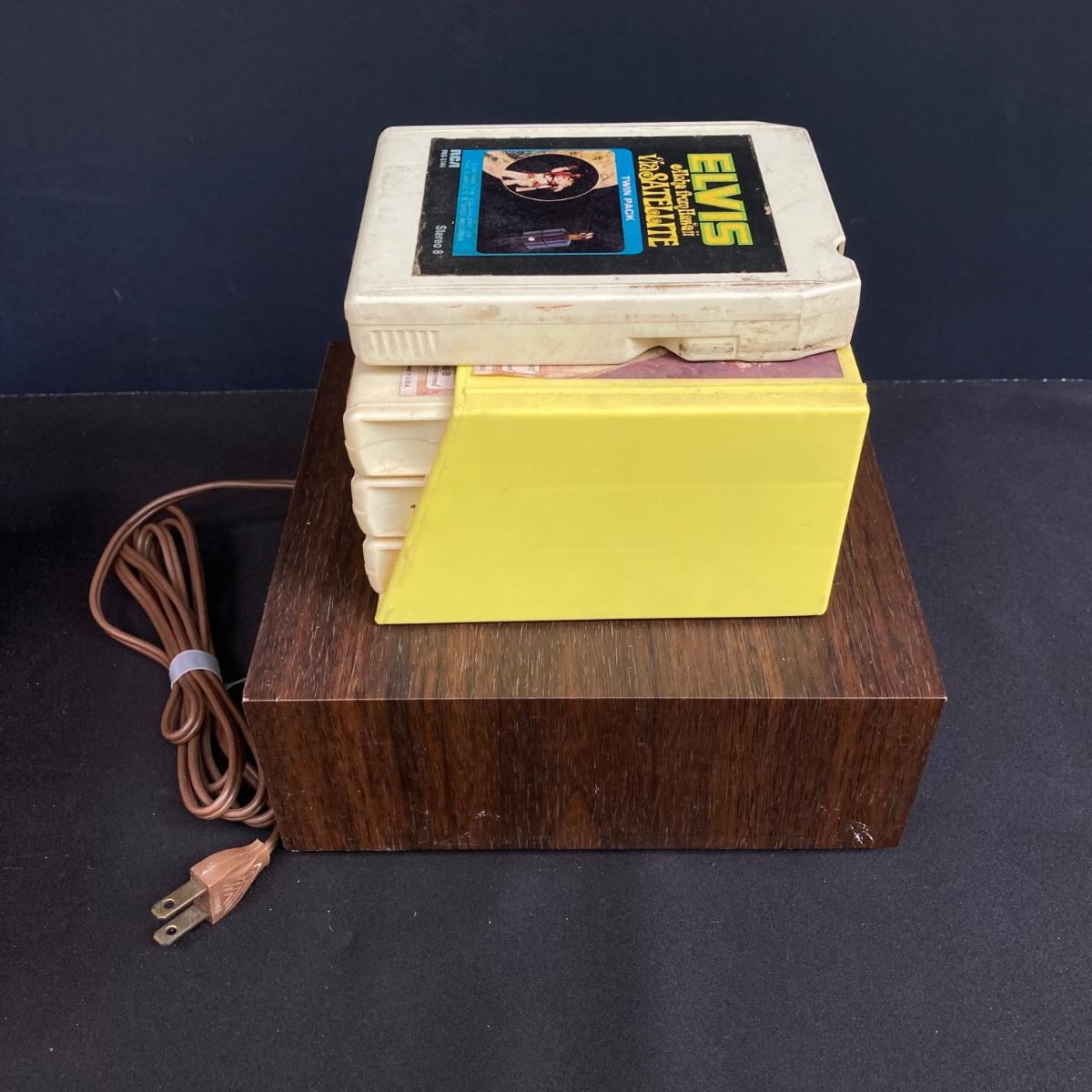 LOT 172: Vintage Sears Roebuck and Co. 8 Track Player Model 400 9101 0300, Elvis 8 Track Tapes, Car Books and Kooky2 Pink Cadillac Candy Dish / Planter