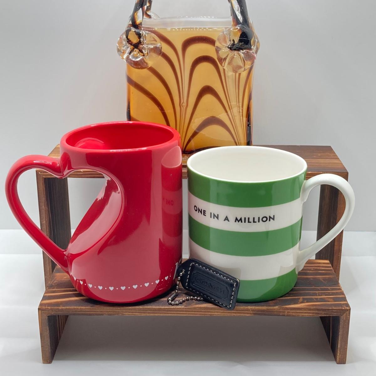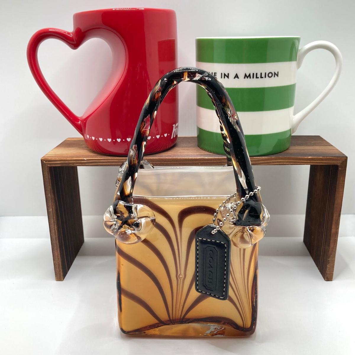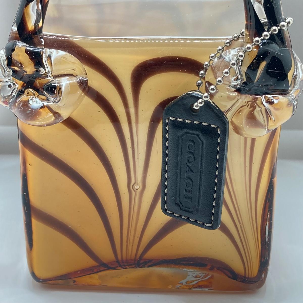 LOT 178: Lenox Kate Spade One In A Million Mug, Art Glass Animal Print Handbag Vase, Leather Coach Hang Tag and Krispy Kreme Mug