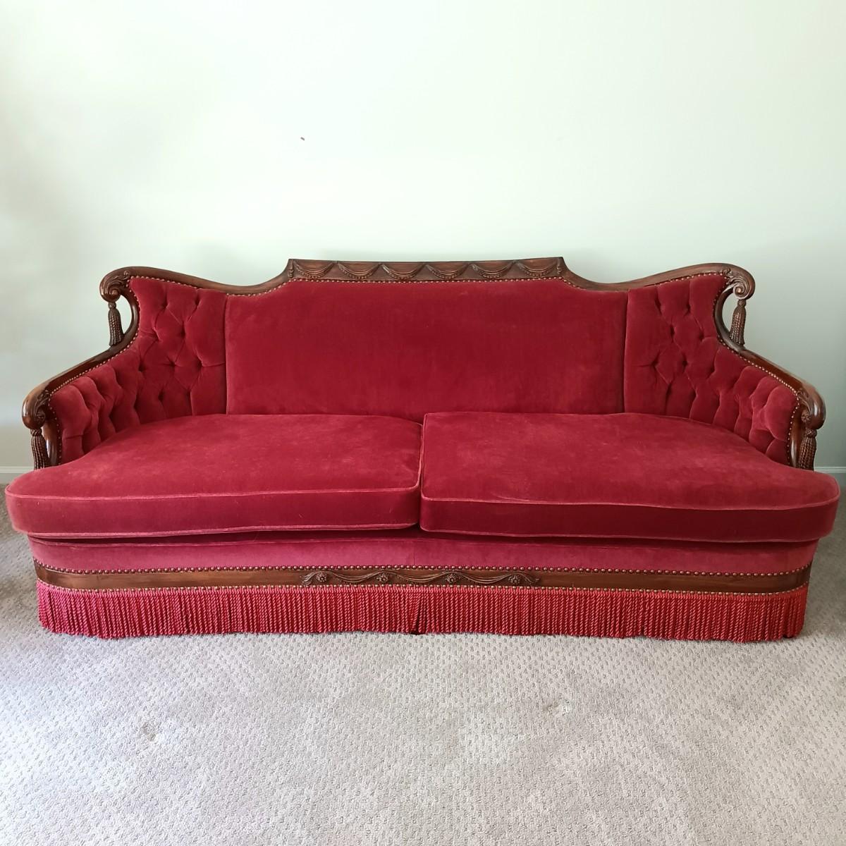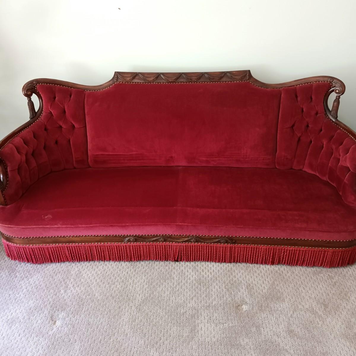 LOT 6: Victorian-Style Red Velvet Settee