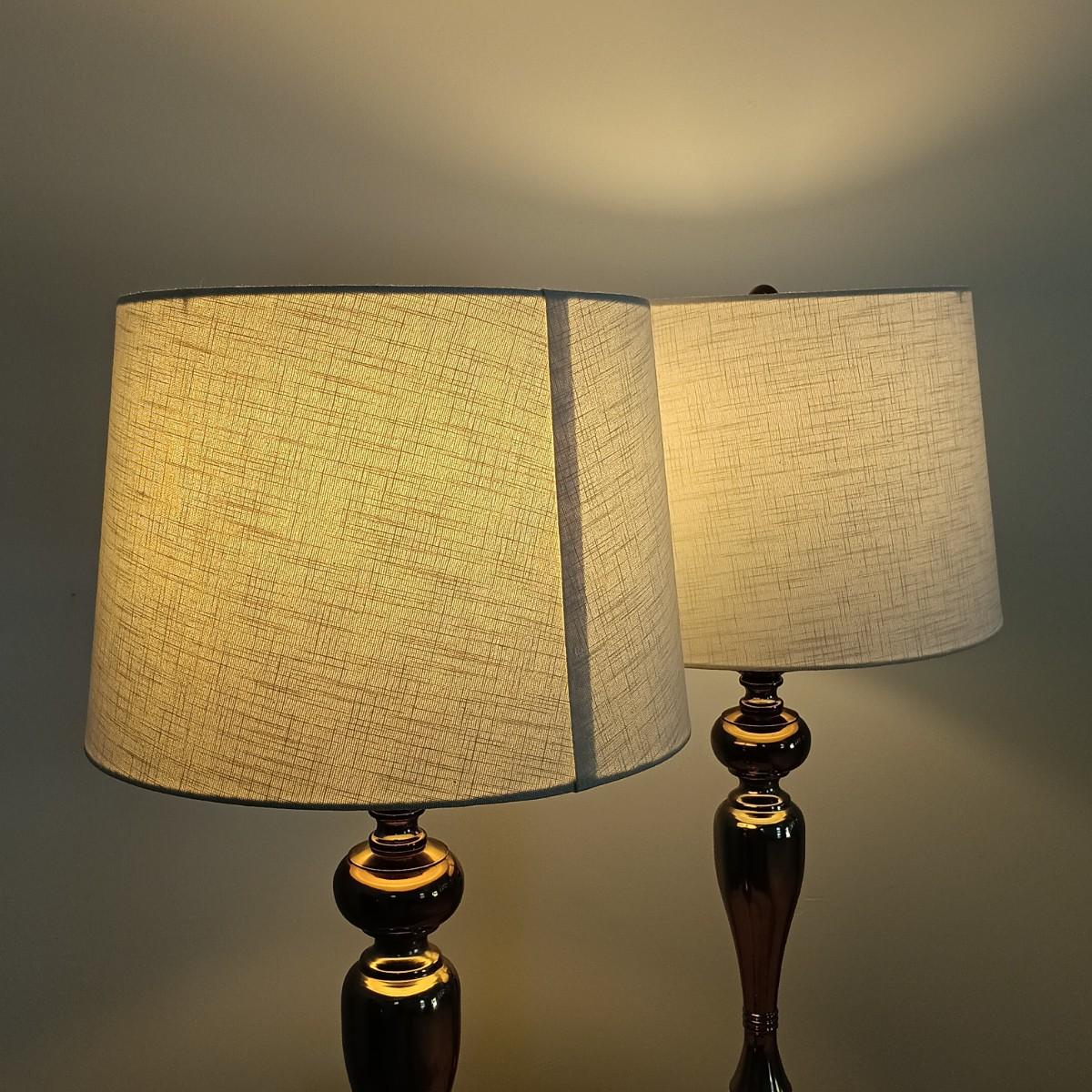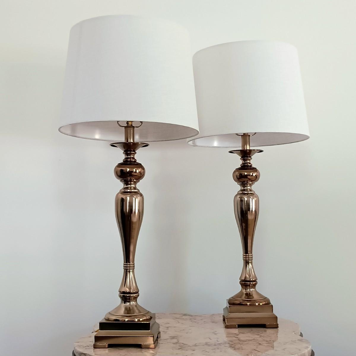 LOT 12: Candlestick Style Copper-Tone Metal Table Lamps