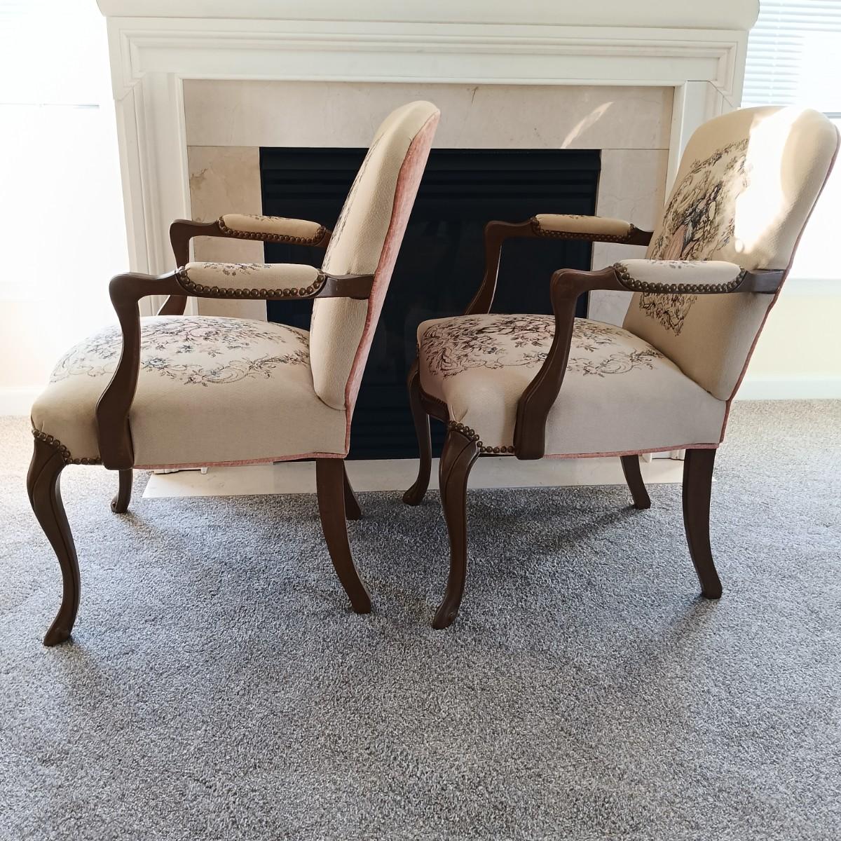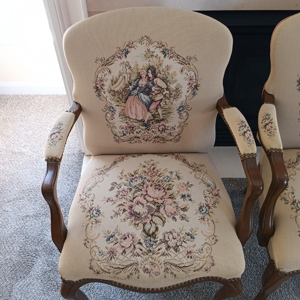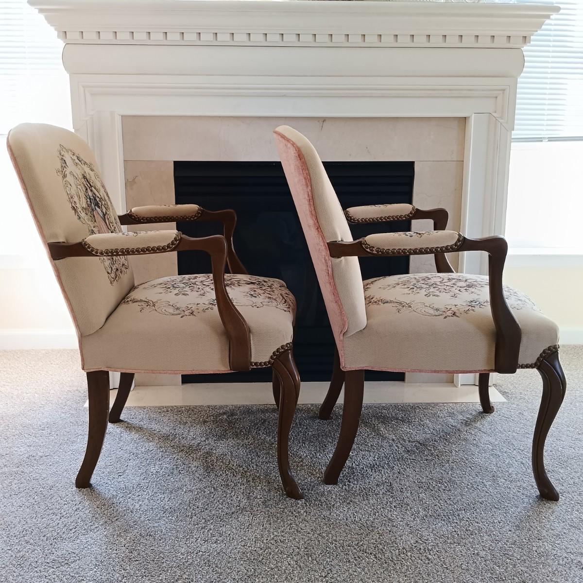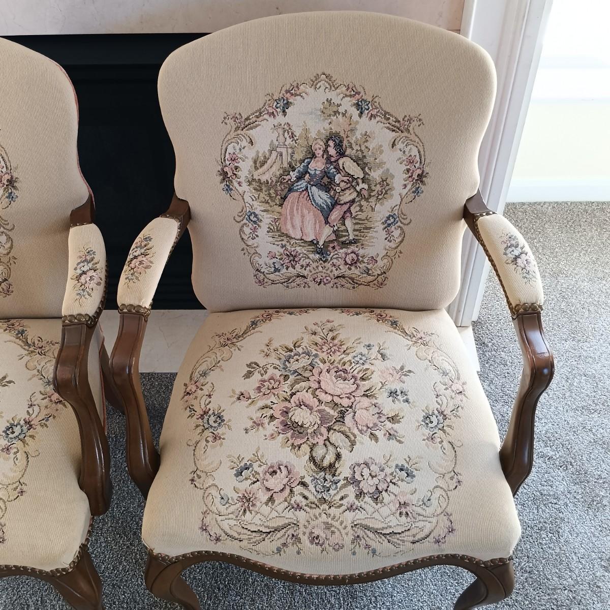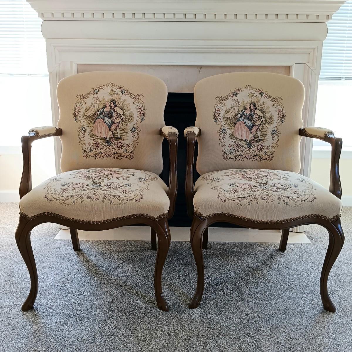 LOT 20: Vintage Louis XV-Style French Tapestry Armchairs with Velvet Backs