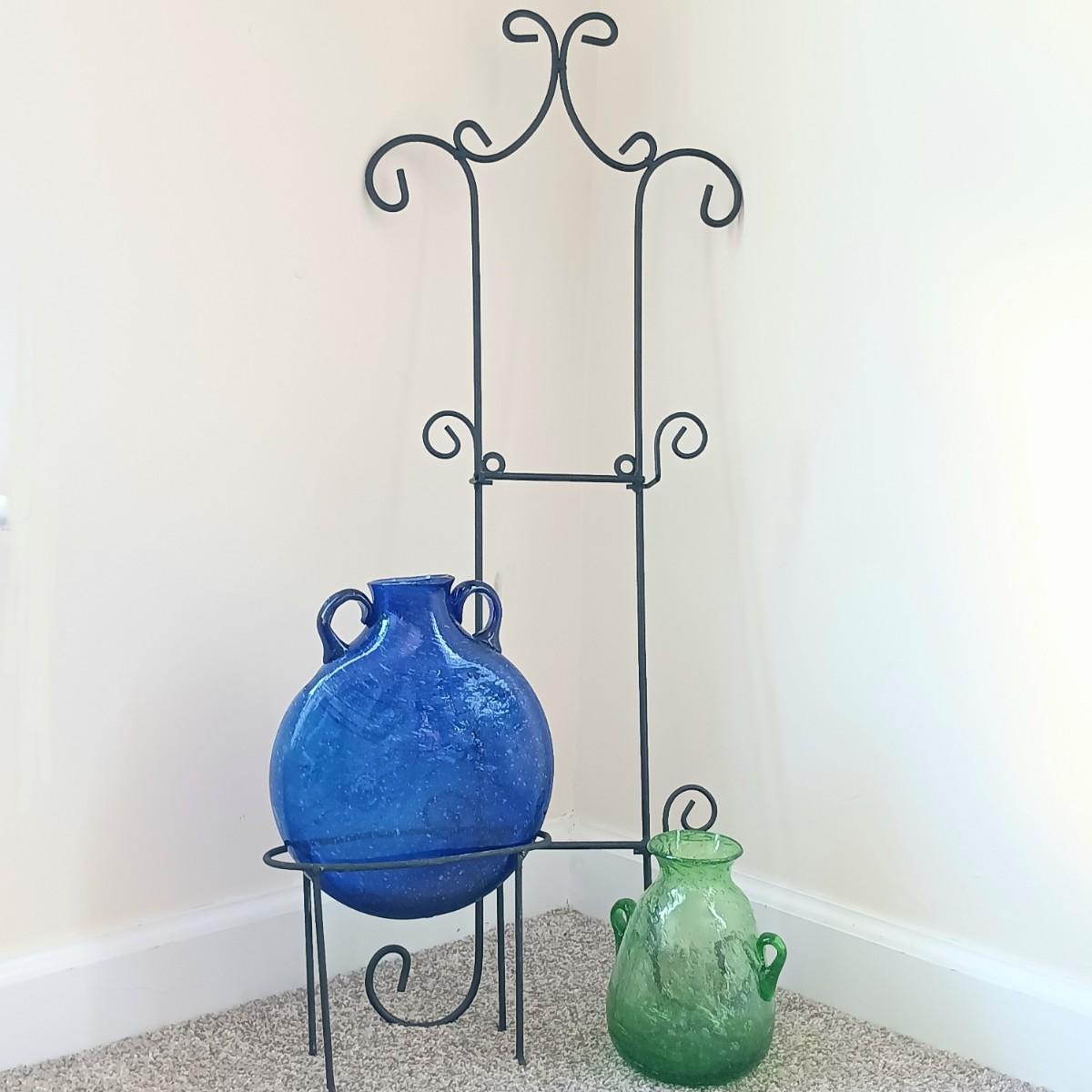 LOT 26: Vintage Hand-Blown Egyptian Art Glass with Wrought Metal Displays