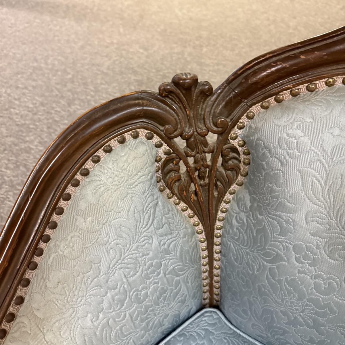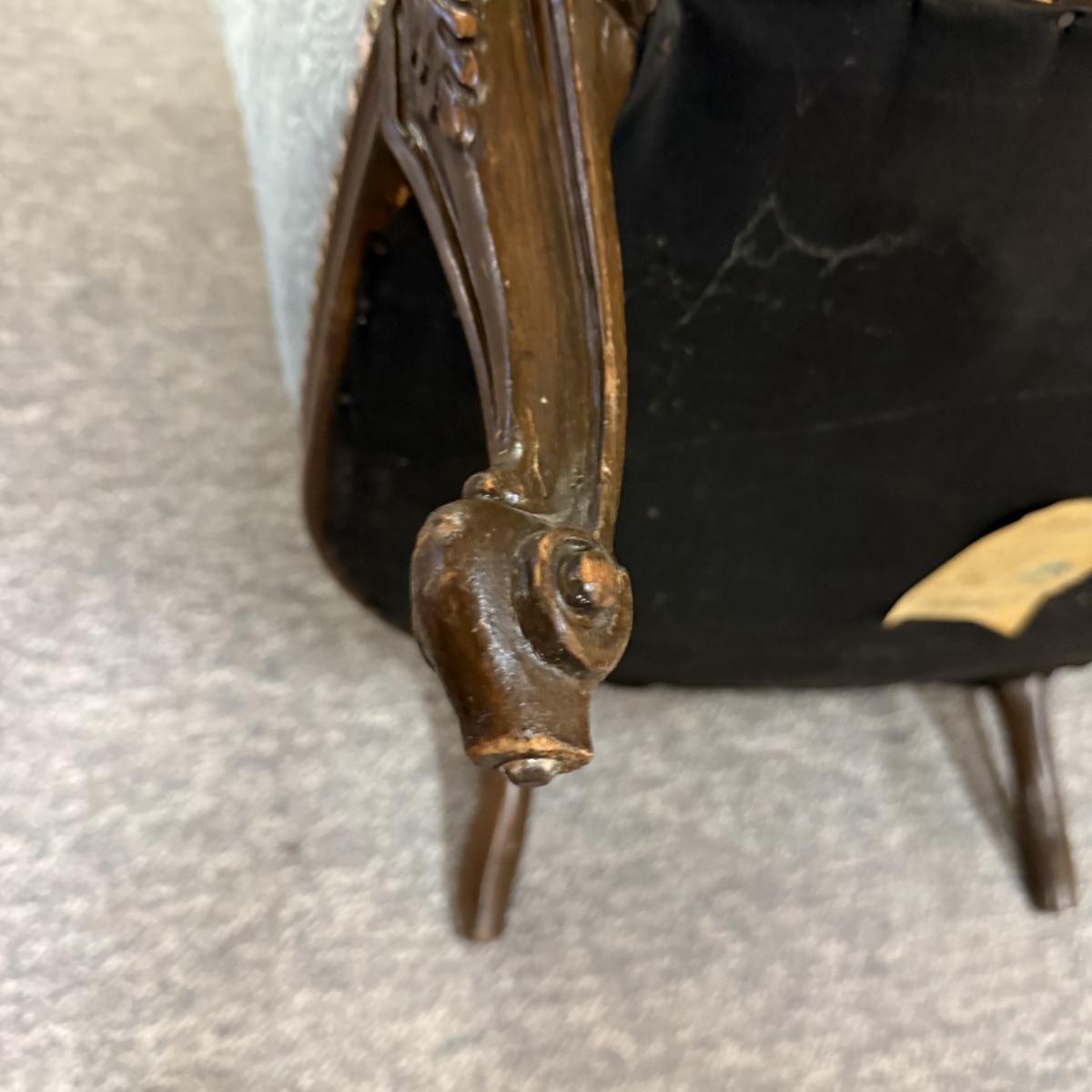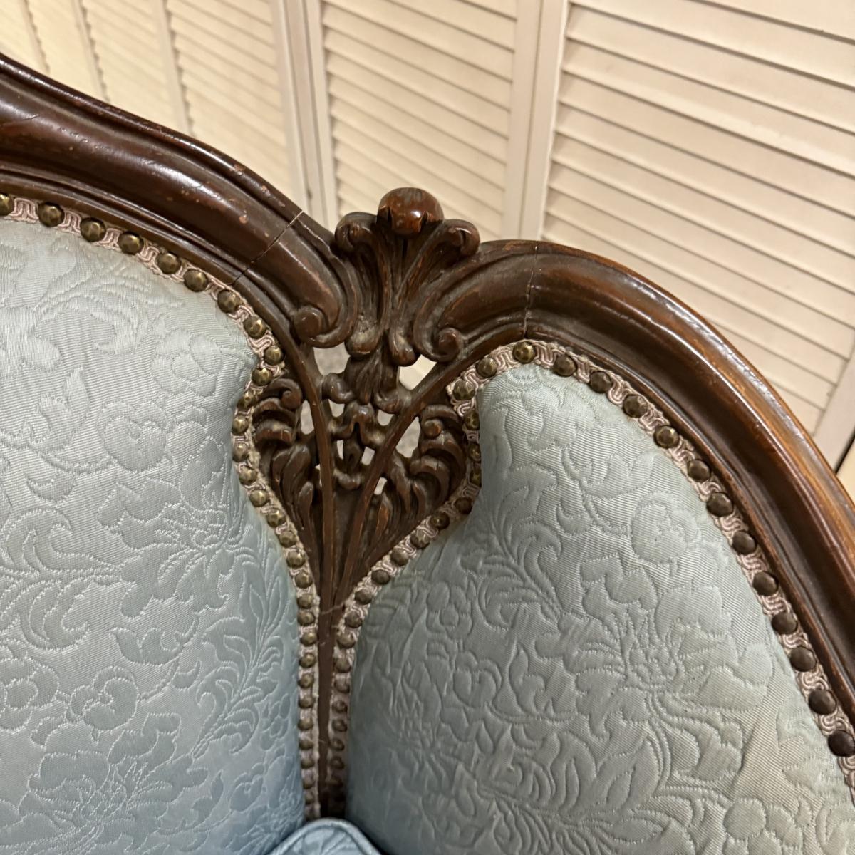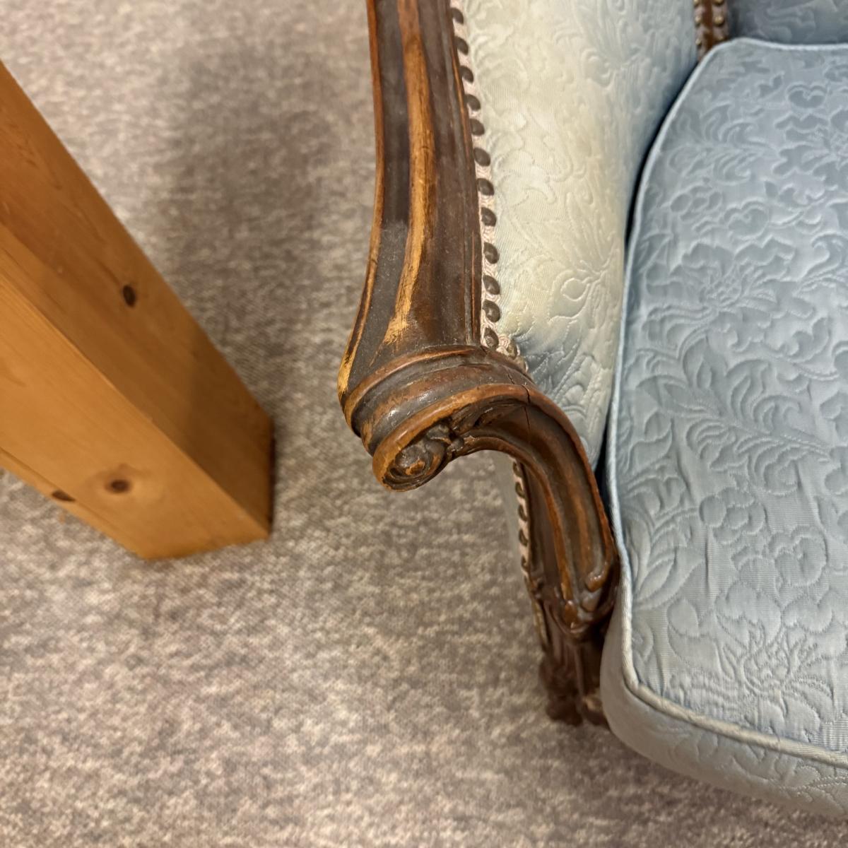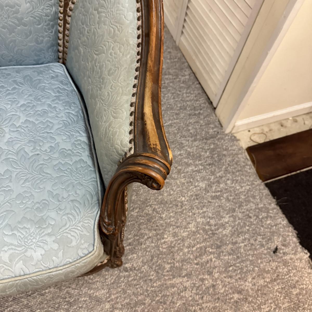 LOT 31: Vintage Victorian Style Parlor Chair with Blue Embossed Floral upholstery