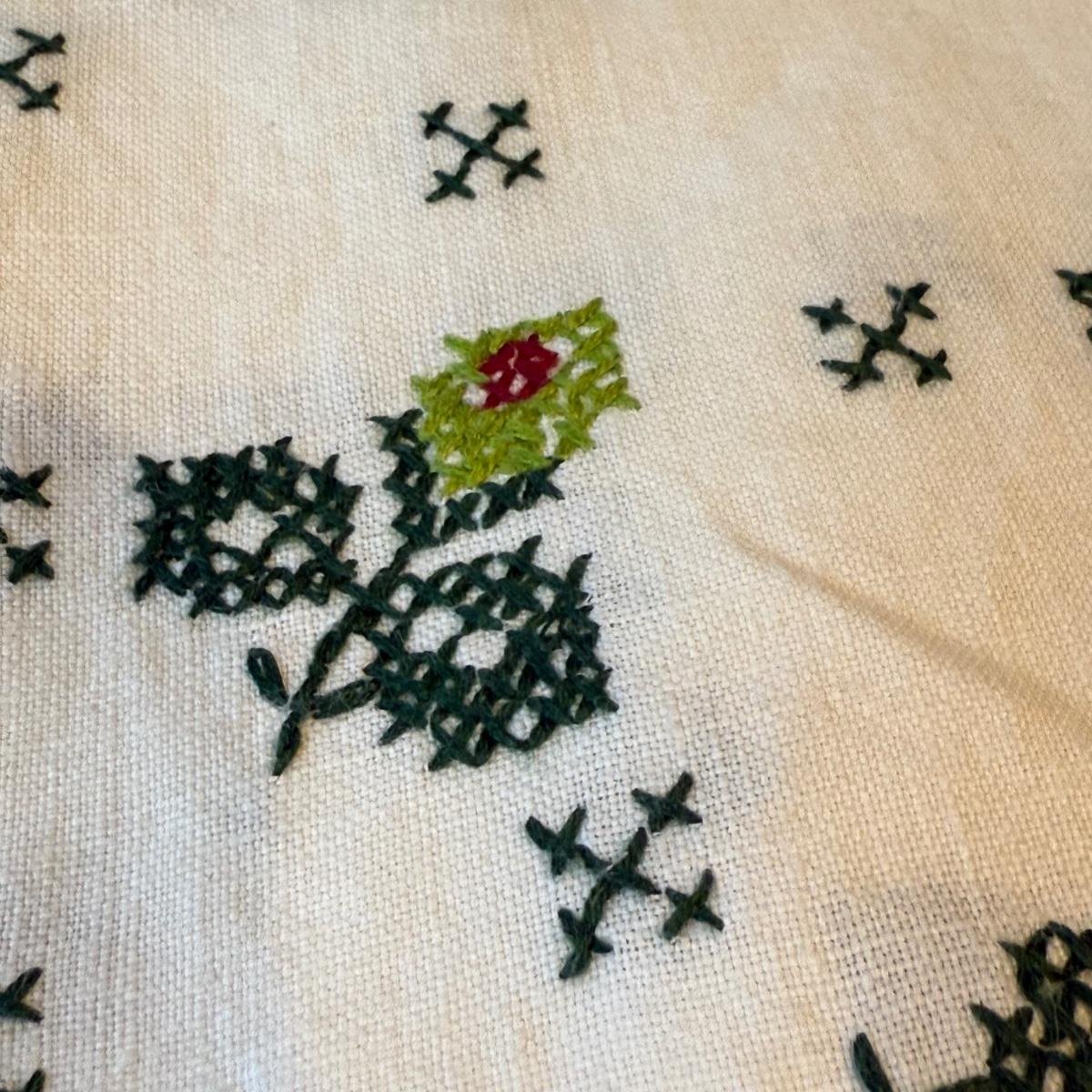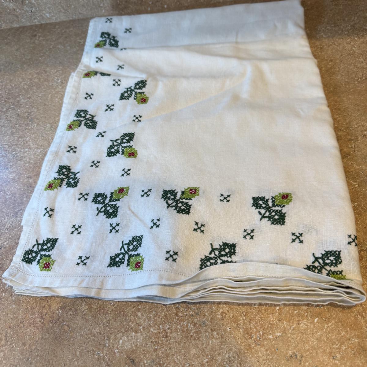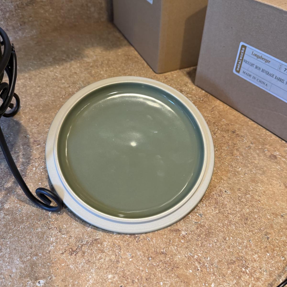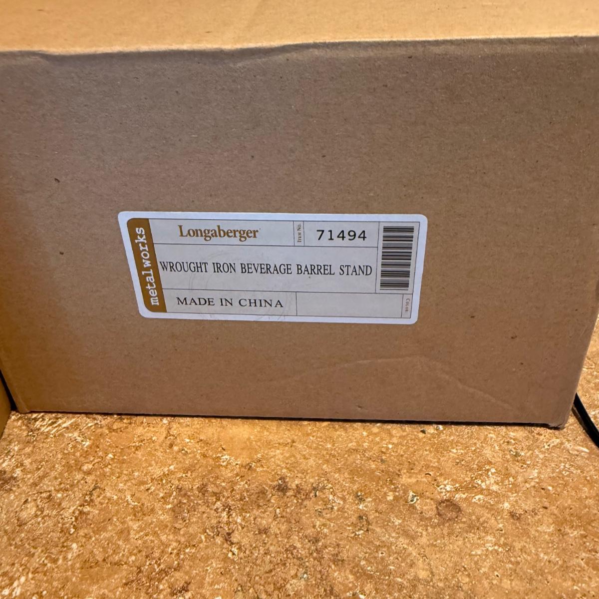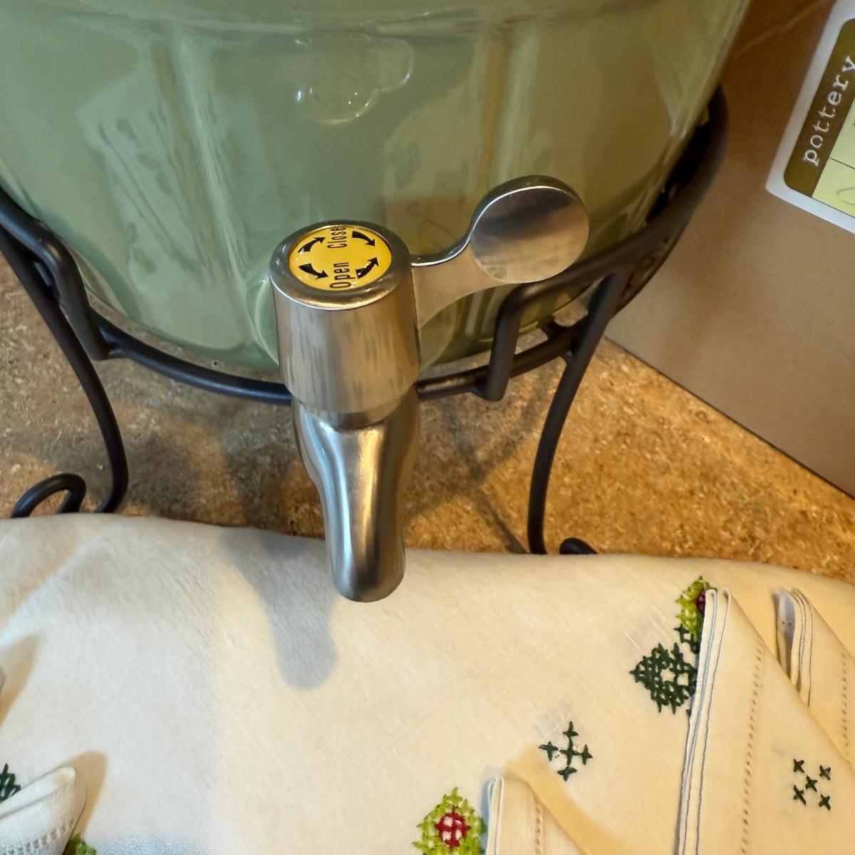 LOT 40: Longaberger Woven Traditions Ceramic Beverage Barrel and Stand with Embroidered Table Linens