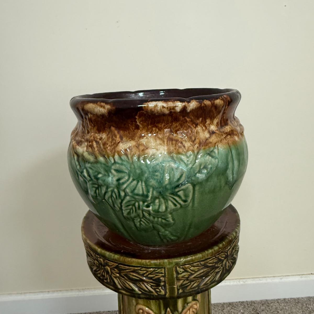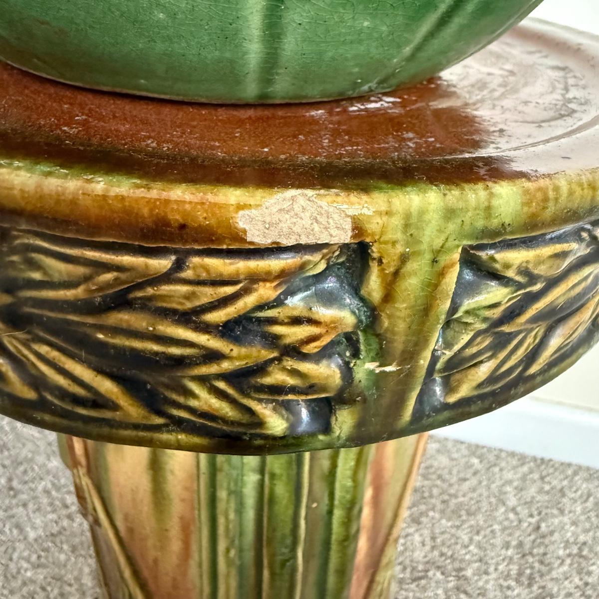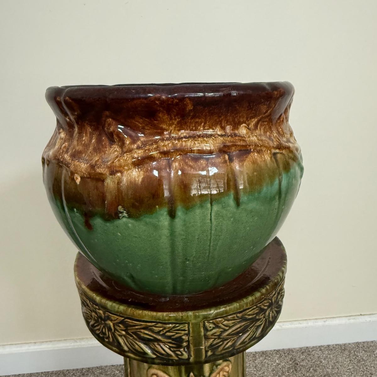 LOT: 42 Vintage Roseville Dogwood Jardiniere/Planter on Ceramic Majolica Pedestal